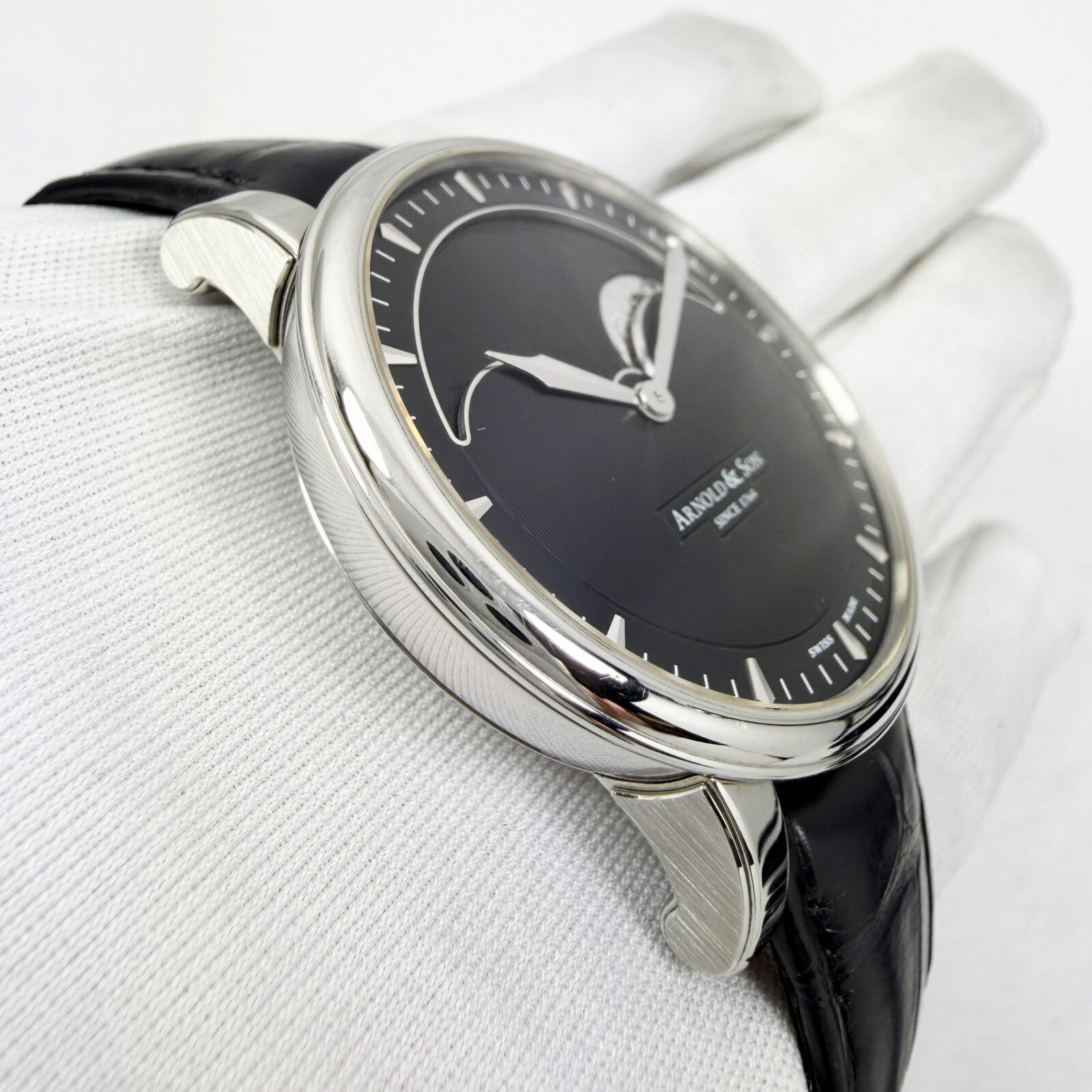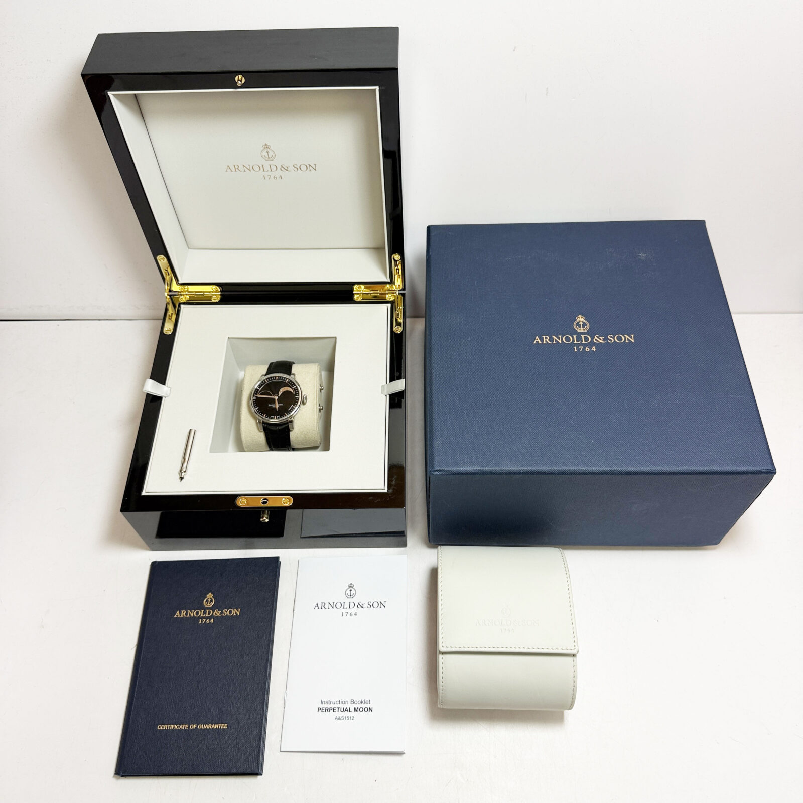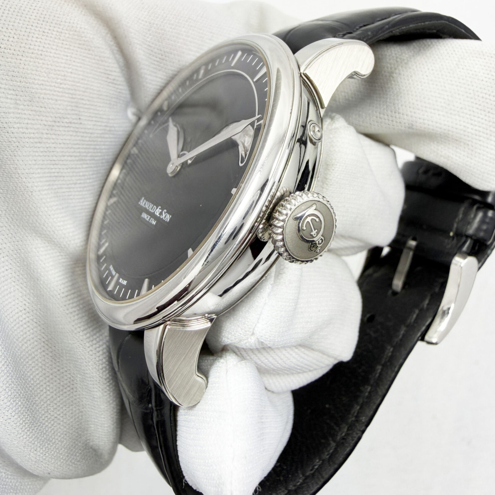 This Arnold & Son watch comes with its box, booklet, pusher tool, and warranty booklet. The photos shown are of the exact watch being sold and accurately represent its condition. This watch is in stock and ready to ship immediately!