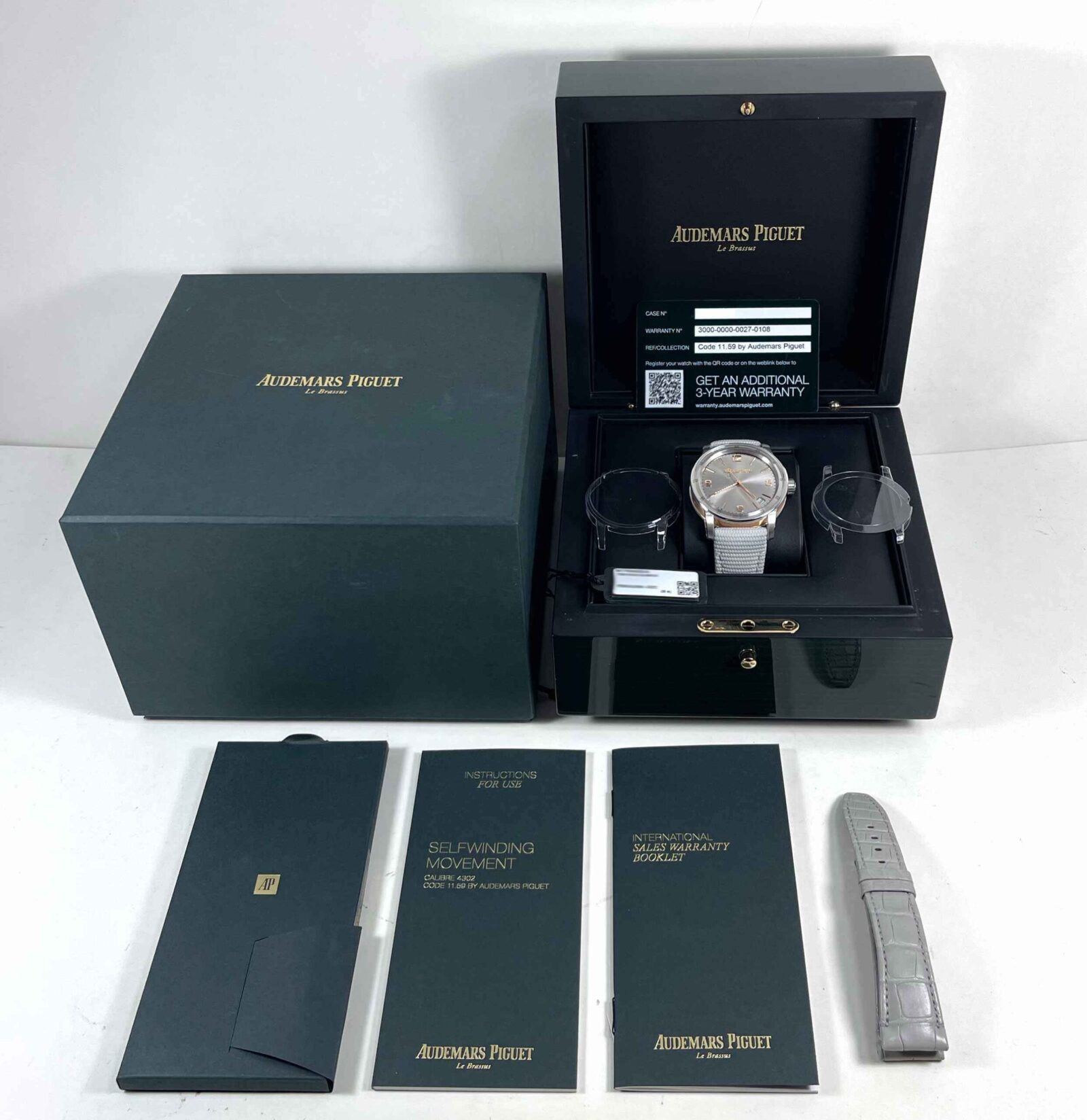 Read Morethis audemars piguet is in excellent condition and comes with its box, papers, hang tag, one additional leather strap, case protector, and warranty card as shown in the photos attached. This watch is in stock and available to ship immediately!