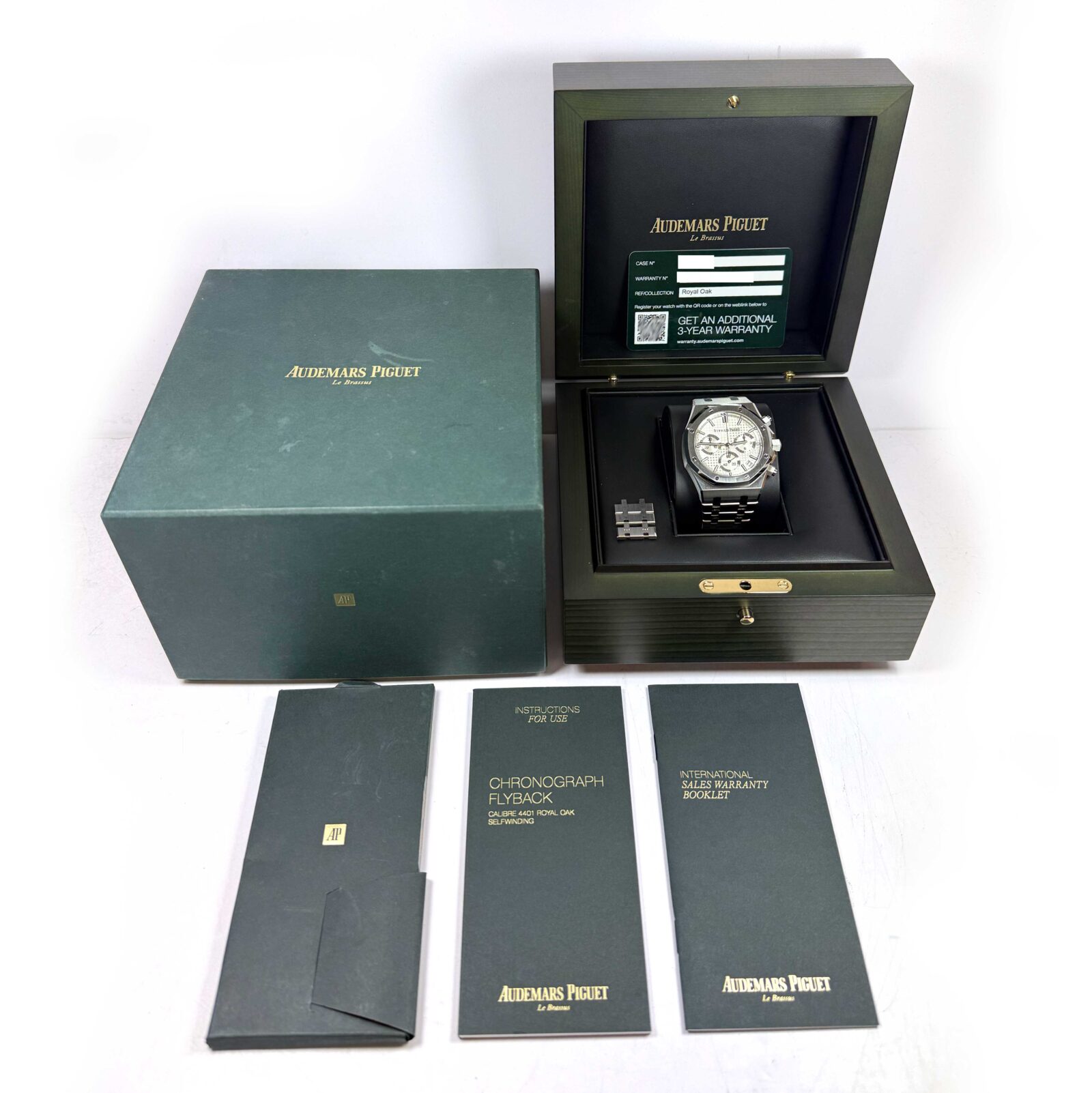 this audemars piguet watch is in like new condition and comes with its box, booklets, spare links, and warranty card as shown in the pictures attached. This watch is in stock and available to ship immediately!