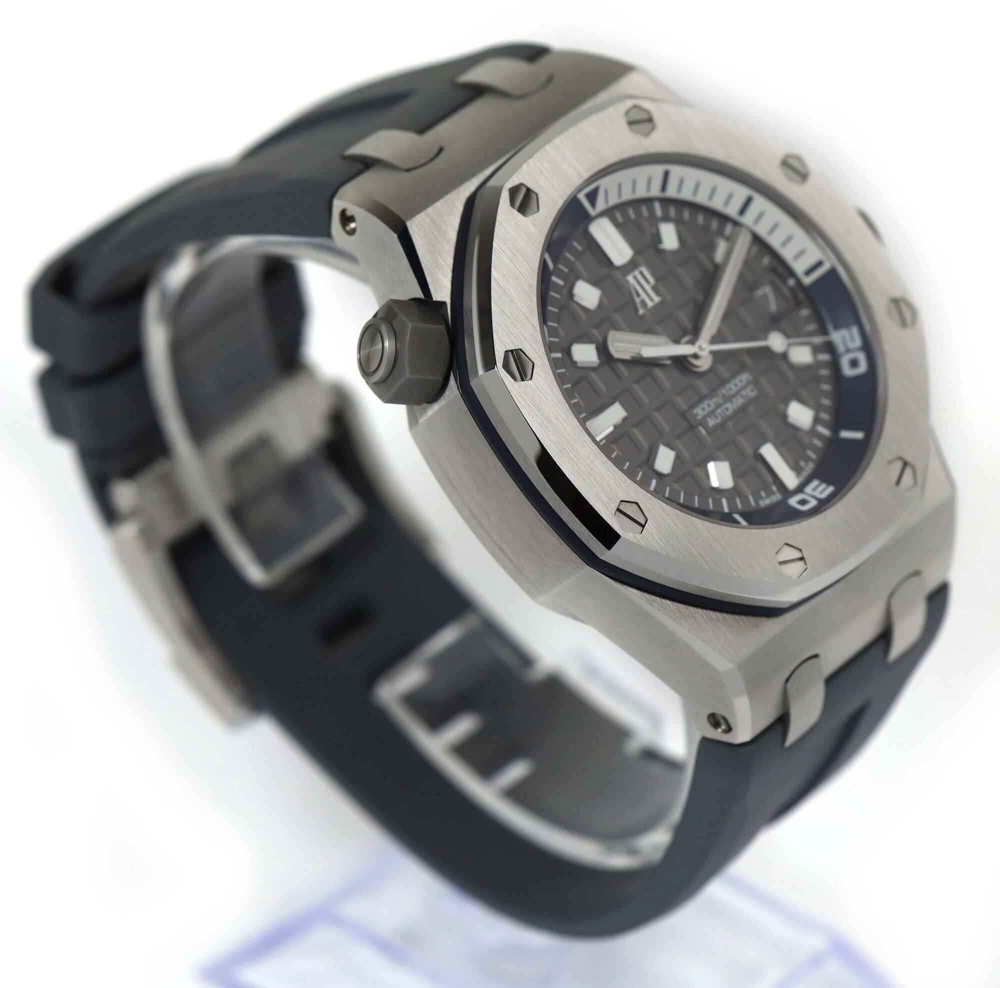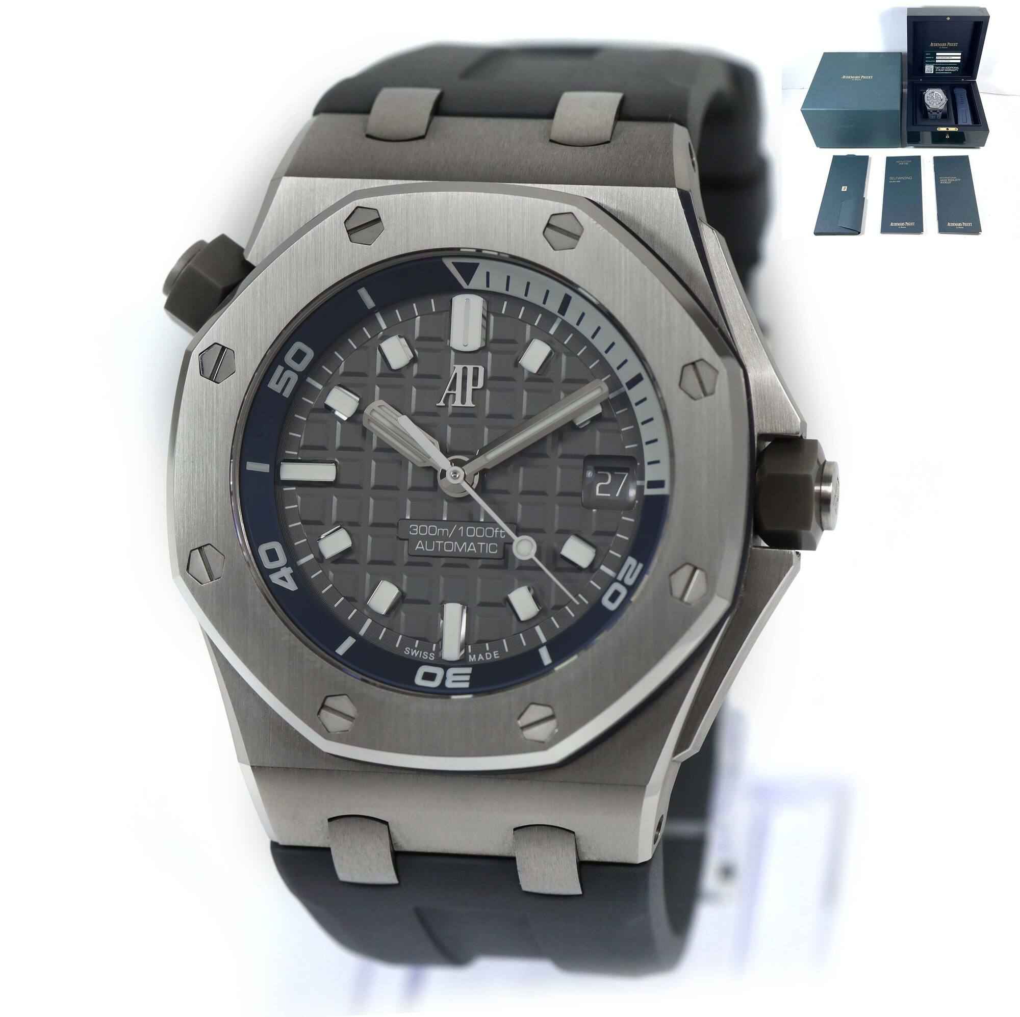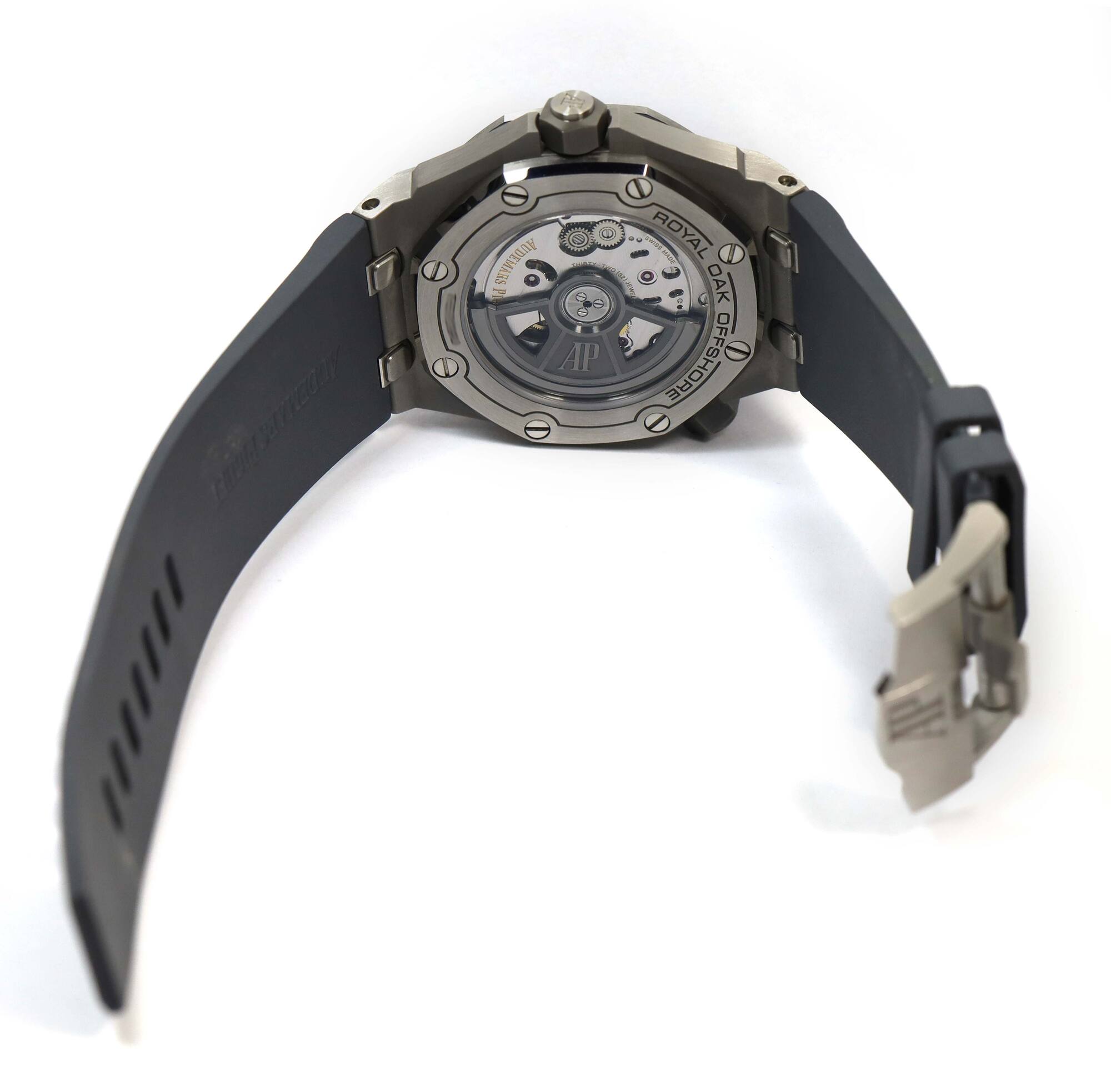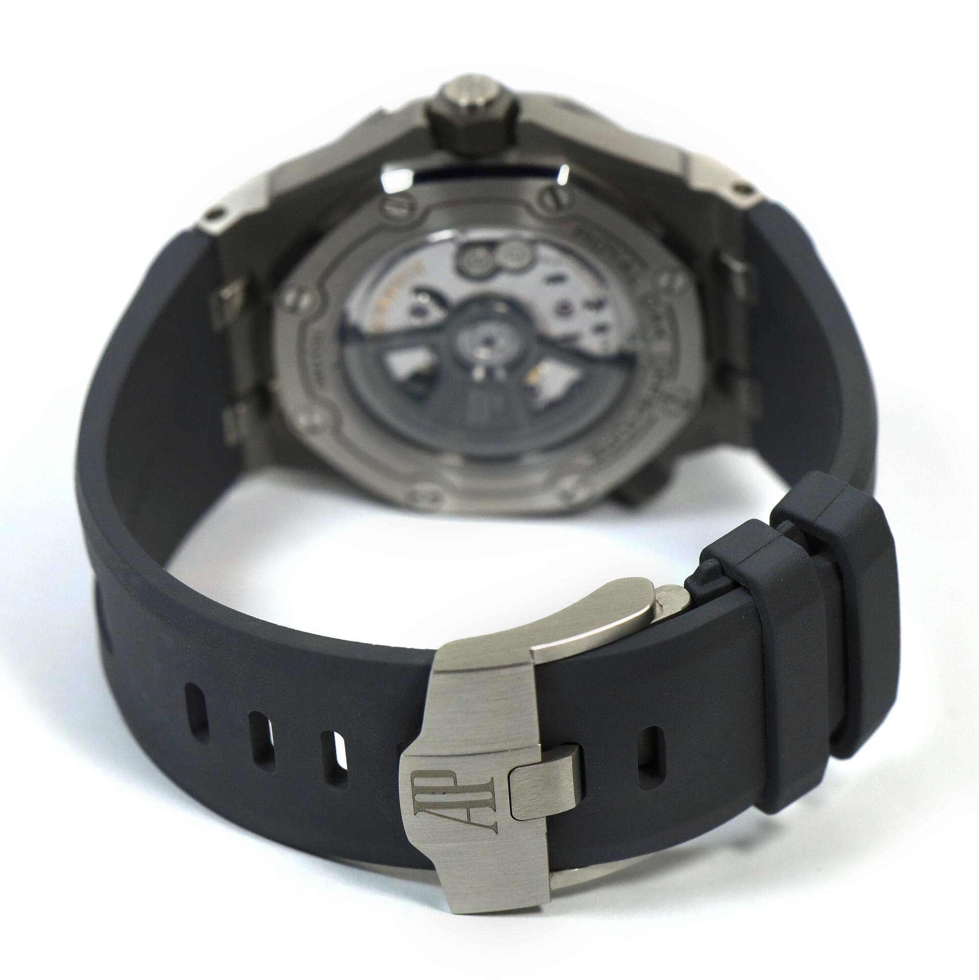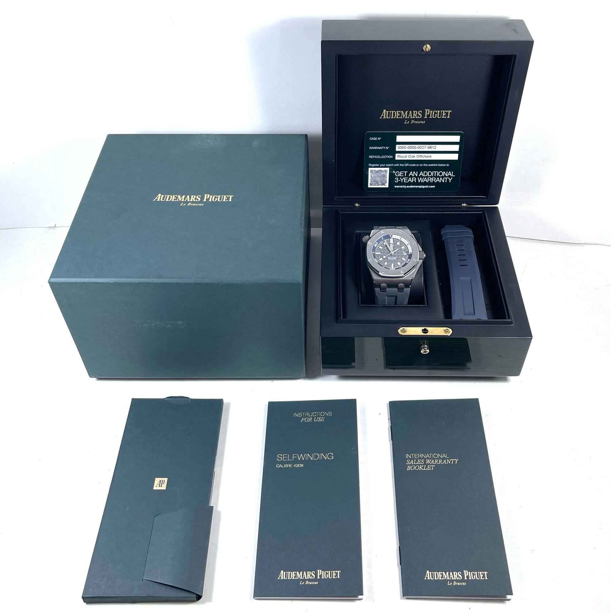 THIS AUDEMARS PIGUET IS IN SUPER CONDITION AND COMES WITH ITS BOX, BOOKLETS, ONE ADDITIONAL BLUE RUBBER STRAP, AND WARRANTY CARD DATED DECEMBER 2021. THIS WATCH FEATURES A 42MM STEEL CASE THAT SURROUNDS A GREY DIAL AND COMES ON A GREY RUBBER STRAP AS SHOWN ...