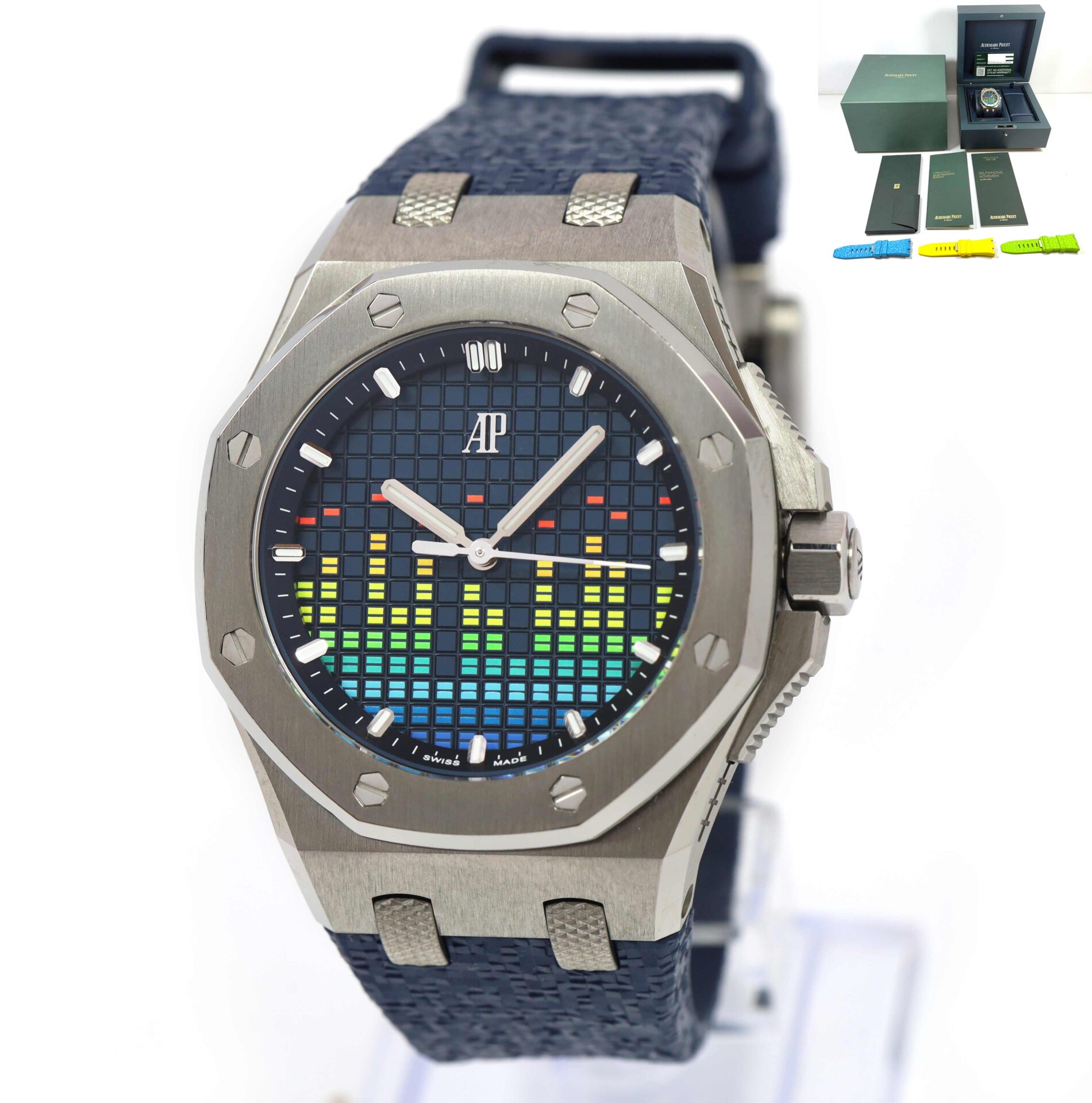 This audemars piguet is in excellent overall condition and comes with its box, booklets, 3 additional ap straps, and warranty card as shown in the pictures attached. This watch is in stock and available to ship immediately!