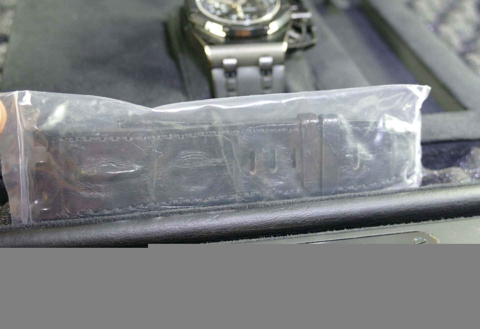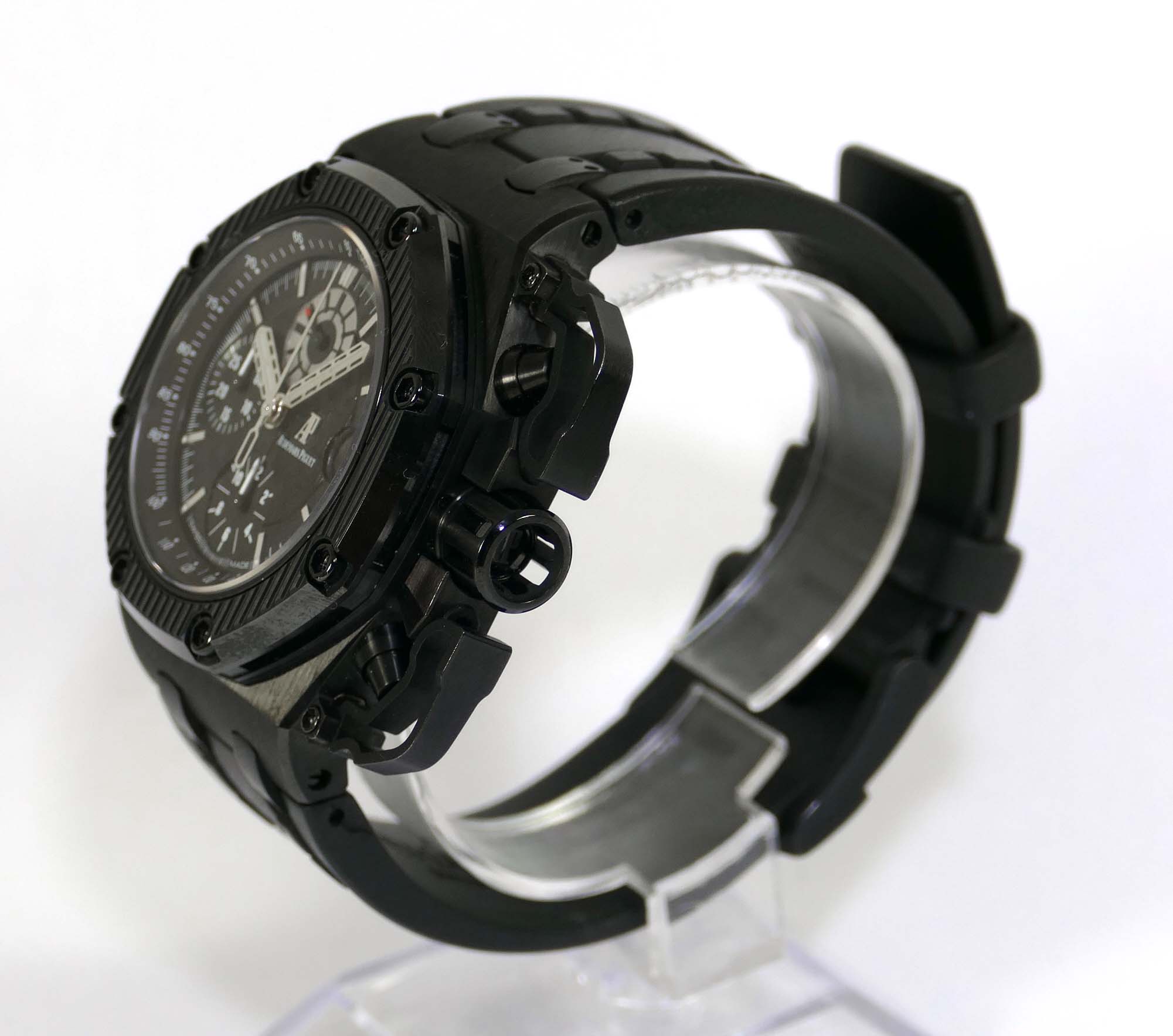 Read Morethis ap is in excellent condition and comes with its original box and papers. this is a limited edition watch, 1000 pieces were made. The booklets must have gotten wet at one point, and show signs of water effect, however all of the pages are legible and none of the writing was tampered. Also included is a brand new, sealed ap black horn strap.