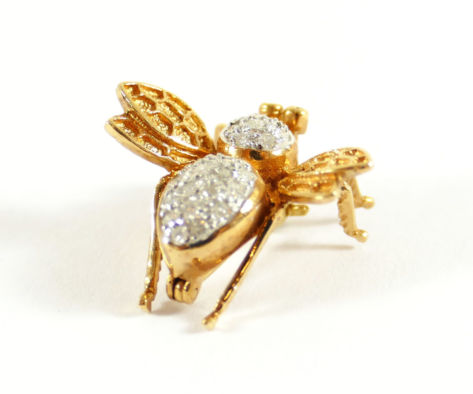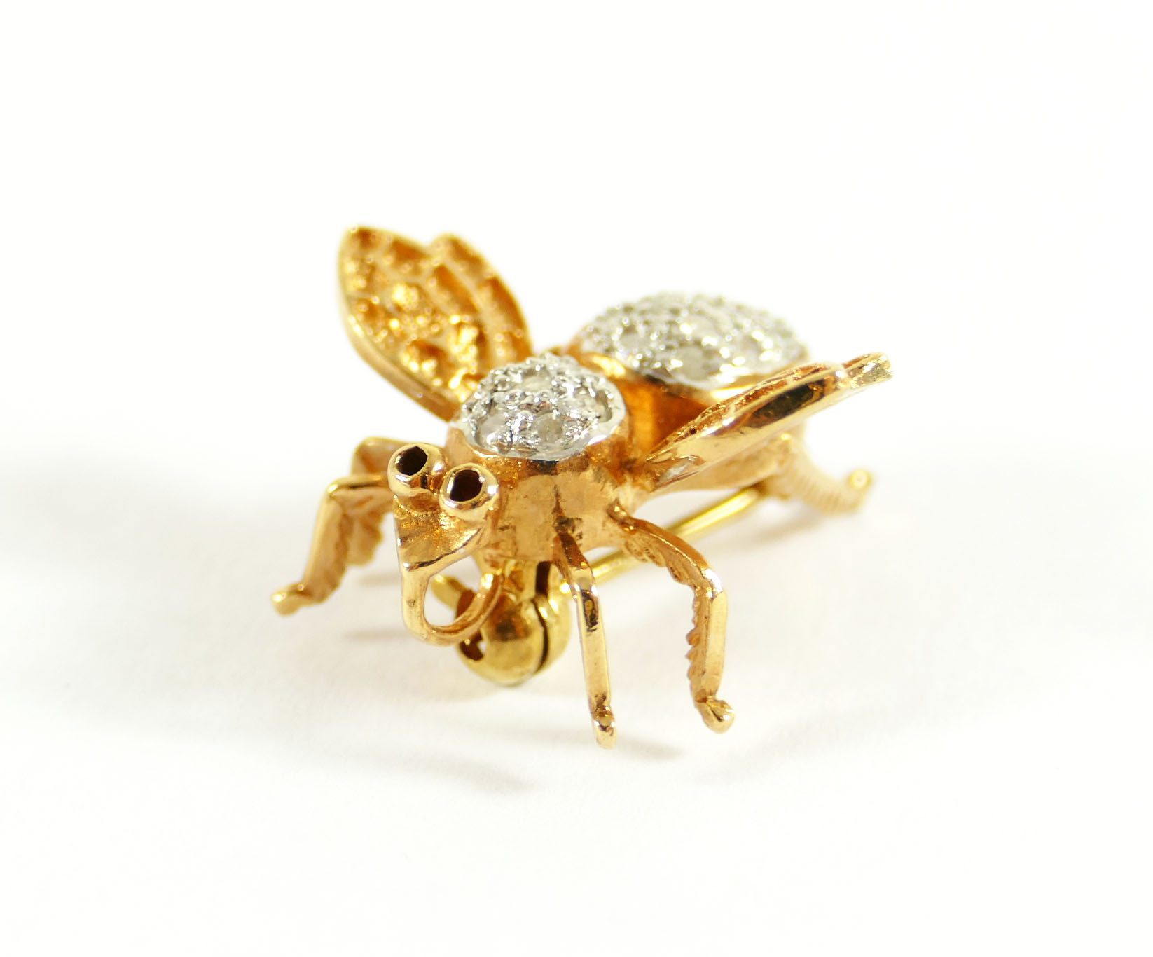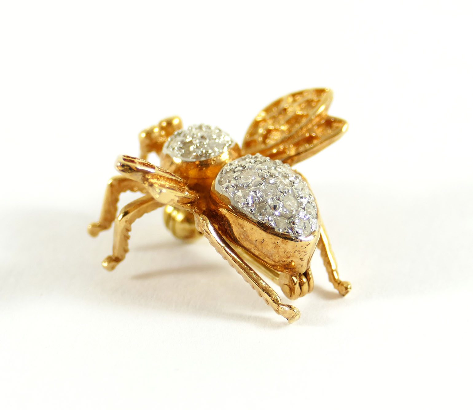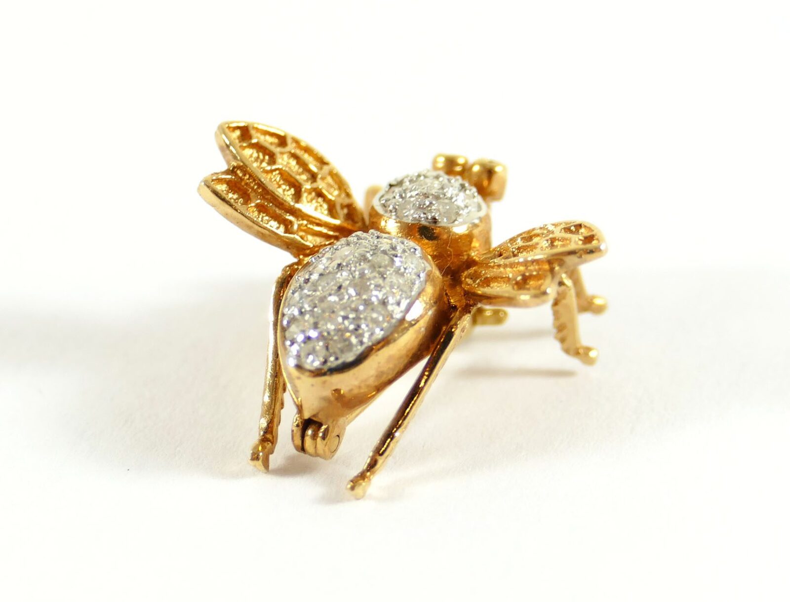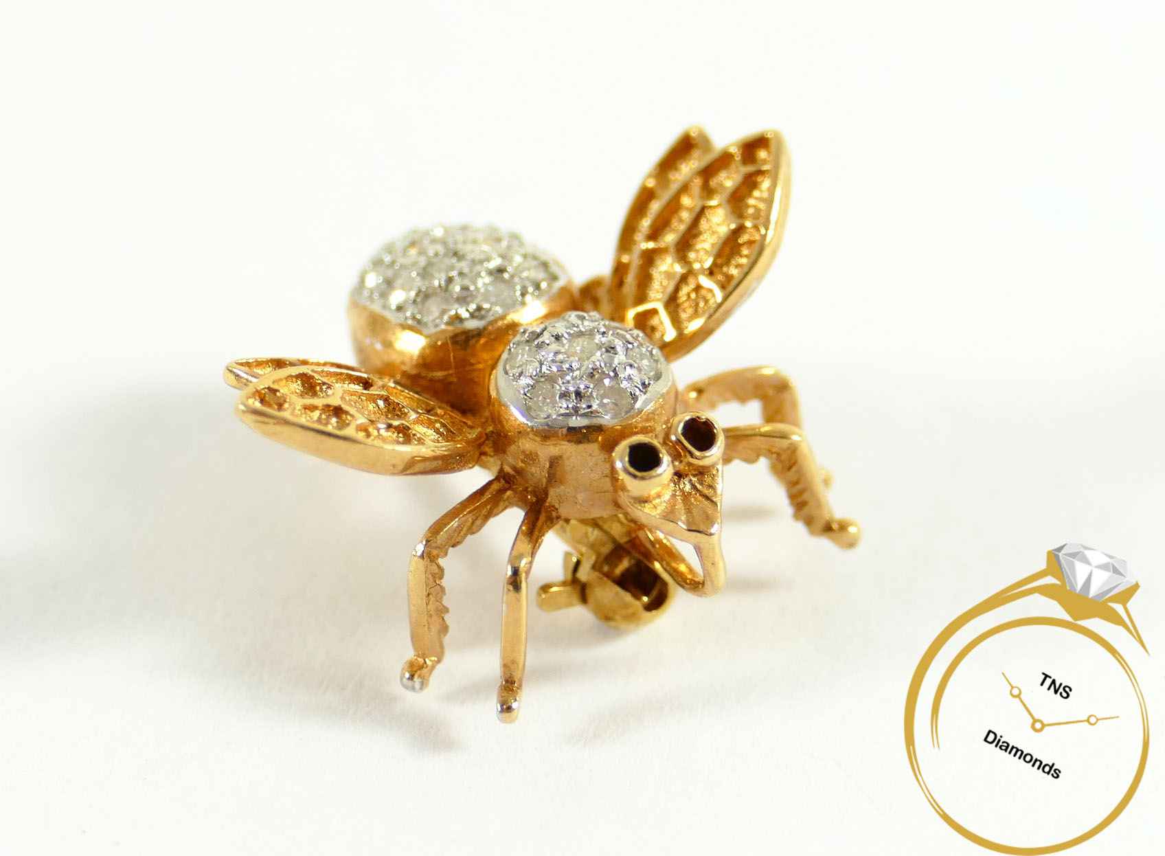 Read Morethis bug pin/pendant is crafted in 14k yellow gold, and is accented in diamonds on the body of the bug. It can be worn as pendant or a pin.