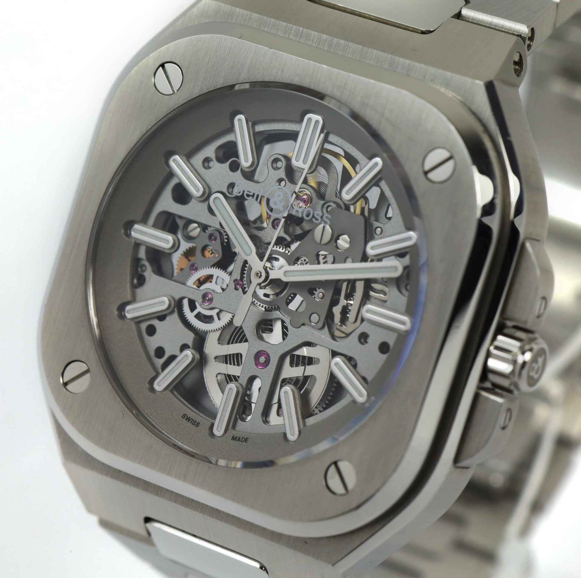 Read Morethis bell & ross is in excellent condition and comes with its box, papers, spare links, and warranty card as shown in the pictures attached. This watch features a 40mm stainless steel case that surrounds a skeleton dial and comes on a steel bracelet. This watch is in stock and available to ship immediately!