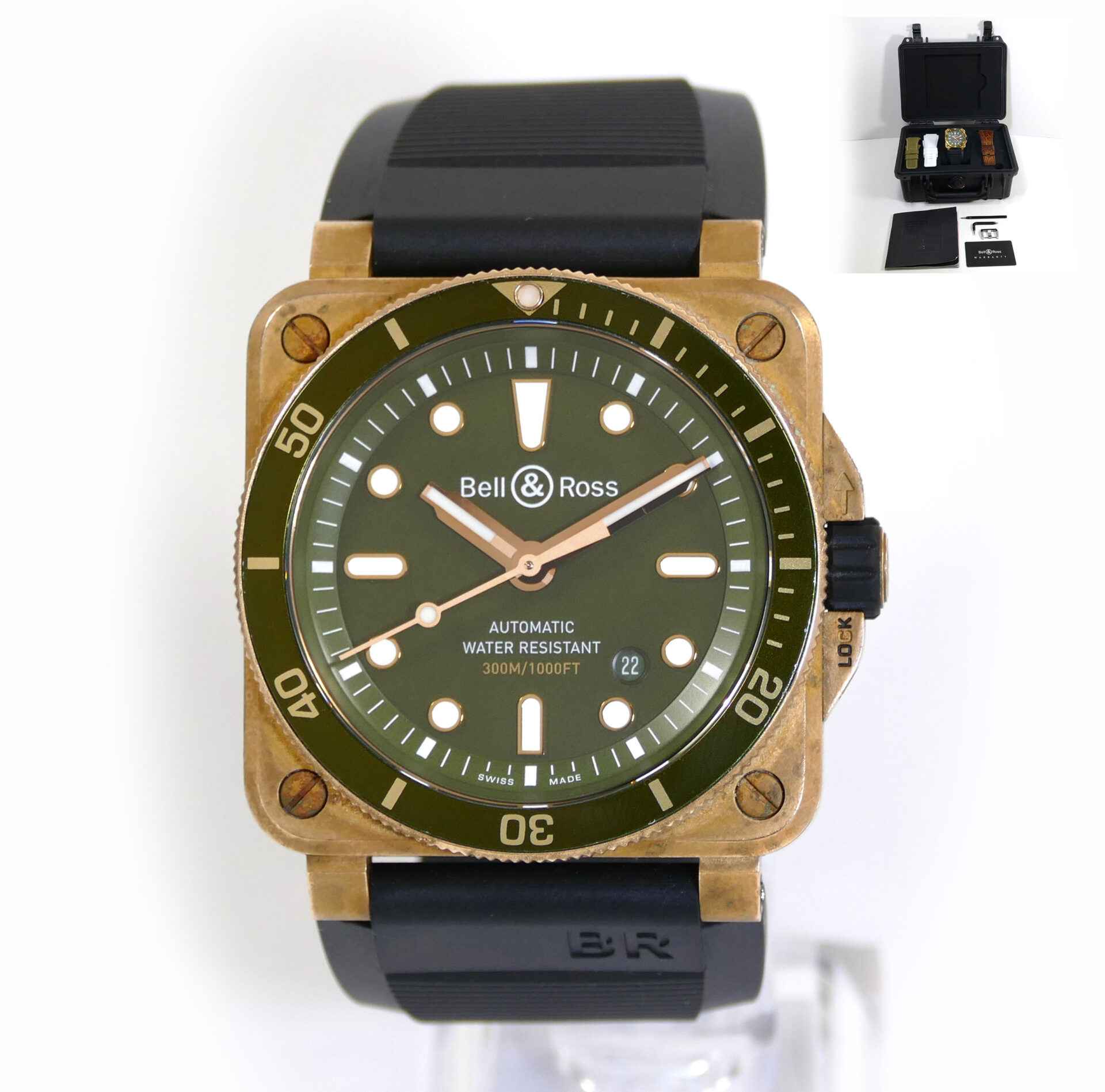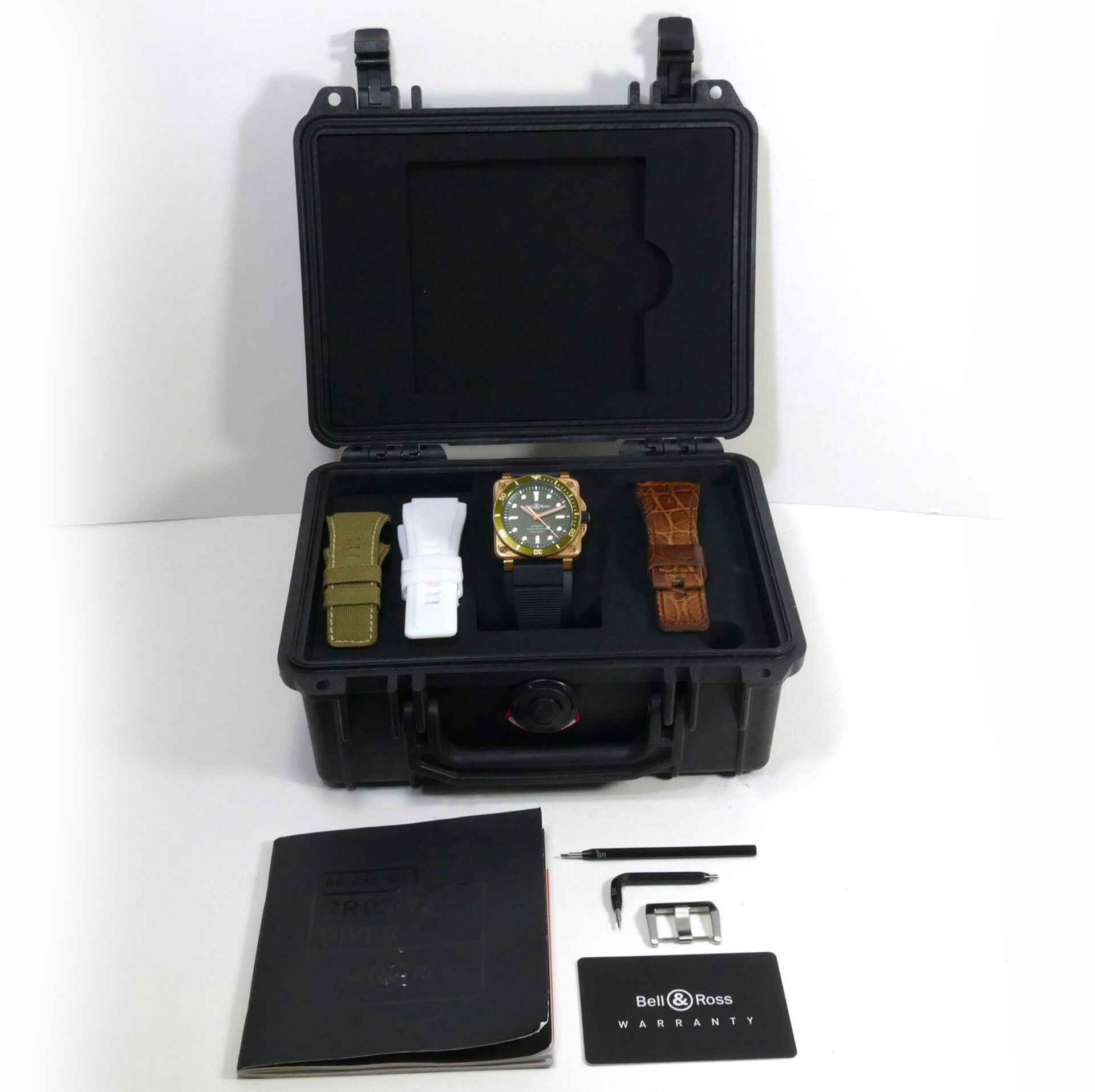 this bell & ross is in good condition and comes with box, papers, bell & ross tools, 3 extra straps, and warranty card dated january 15th, 2020. This watch is in stock and ready to ship immediately!