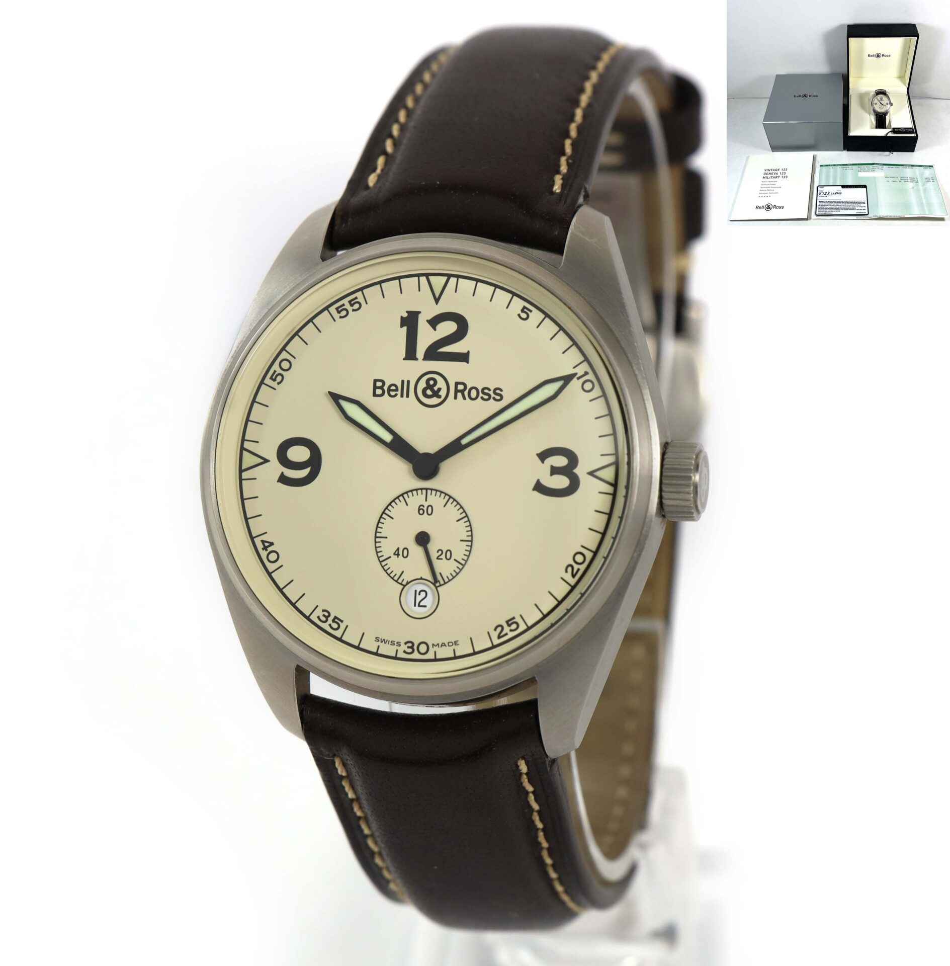 Read Morethis bell & ross is in excellent condition and comes with its box, papers, hang tag, and warranty card as shown in the pictures attached. This watch features a stainless steel case that surrounds a beige dial displaying the hours, minutes, small seconds, and date. This b&r comes on a brown leather strap with a steel deployment clasp. This watch is in stock and available to ship immediately!