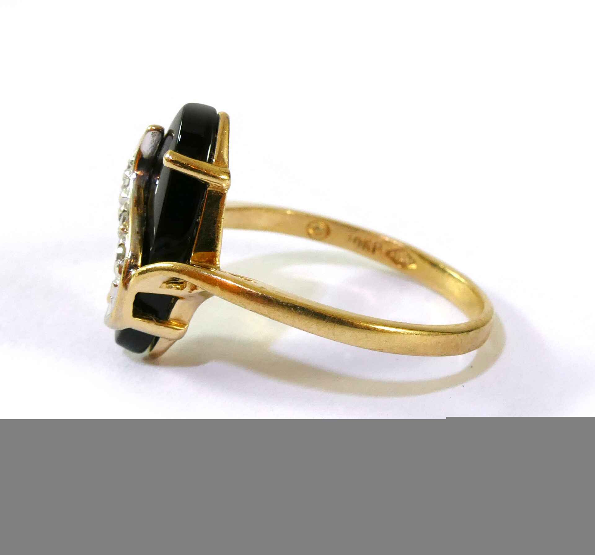 Black Onyx Marquise Diamond 10k Yellow Gold Statement Ring