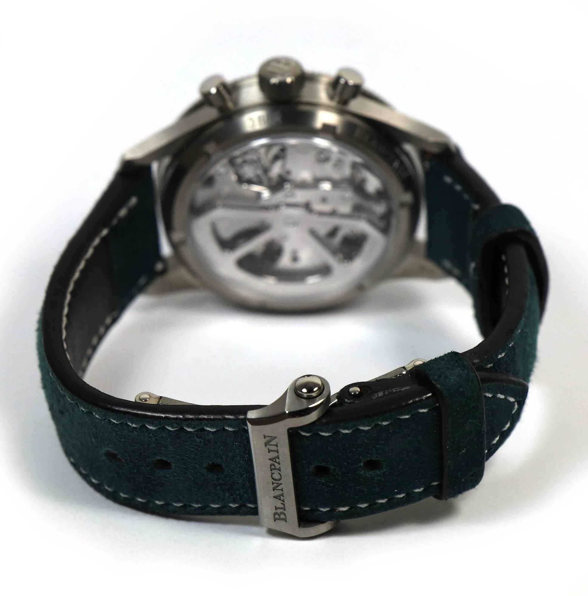 Read Morethis blancpain is in super condition and comes with its booklet, hang tag, travel case, and warranty card dated april, 2023 as shown in the pictures attached. This watch features a 42.5mm titanium case that surrounds a blue dial and comes on a blue strap with a titanium deployant buckle. The watch functions include hours, minutes, small seconds, chronograph and tachymeter. This watch is in stock and available to ship immediately!