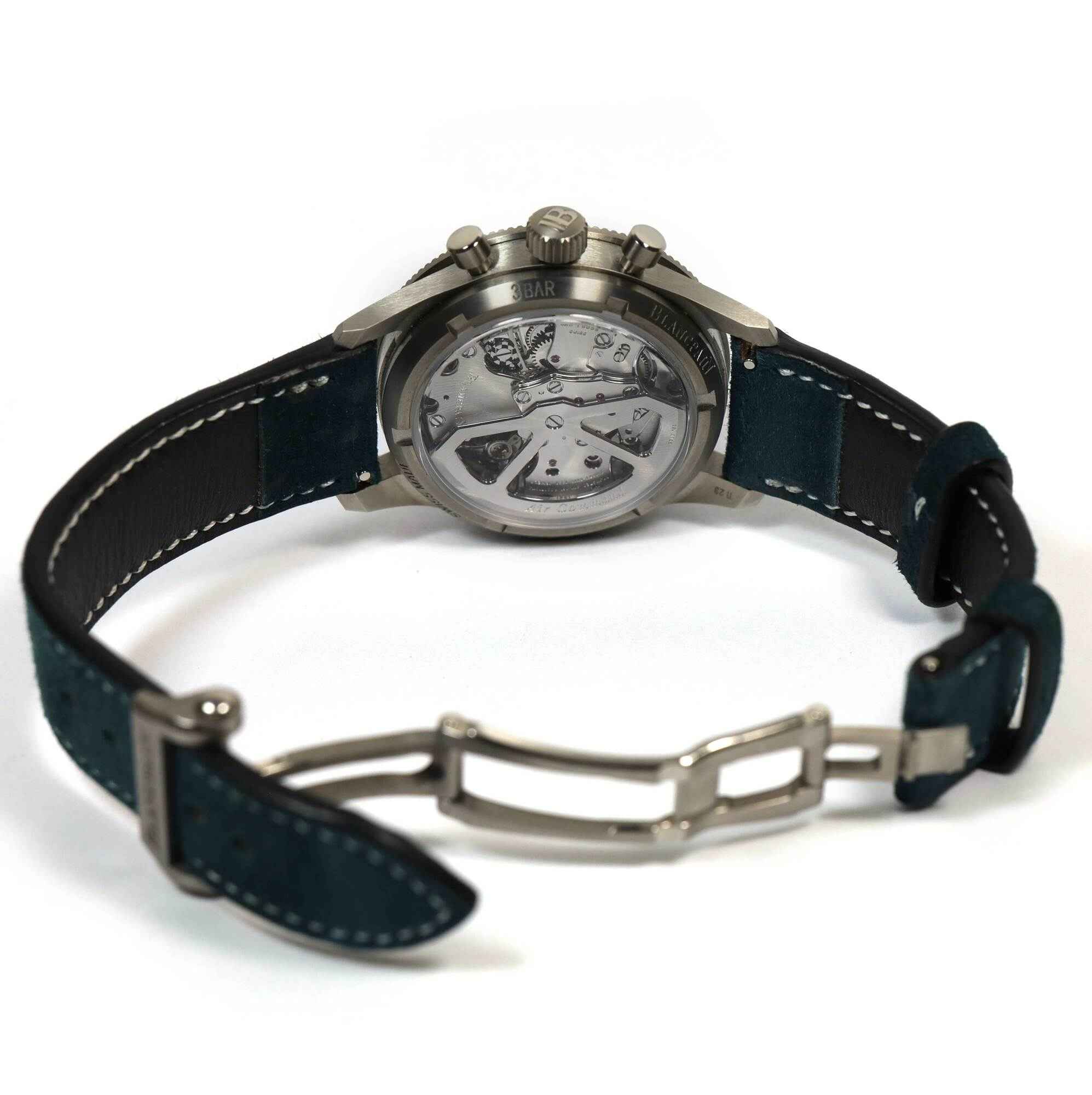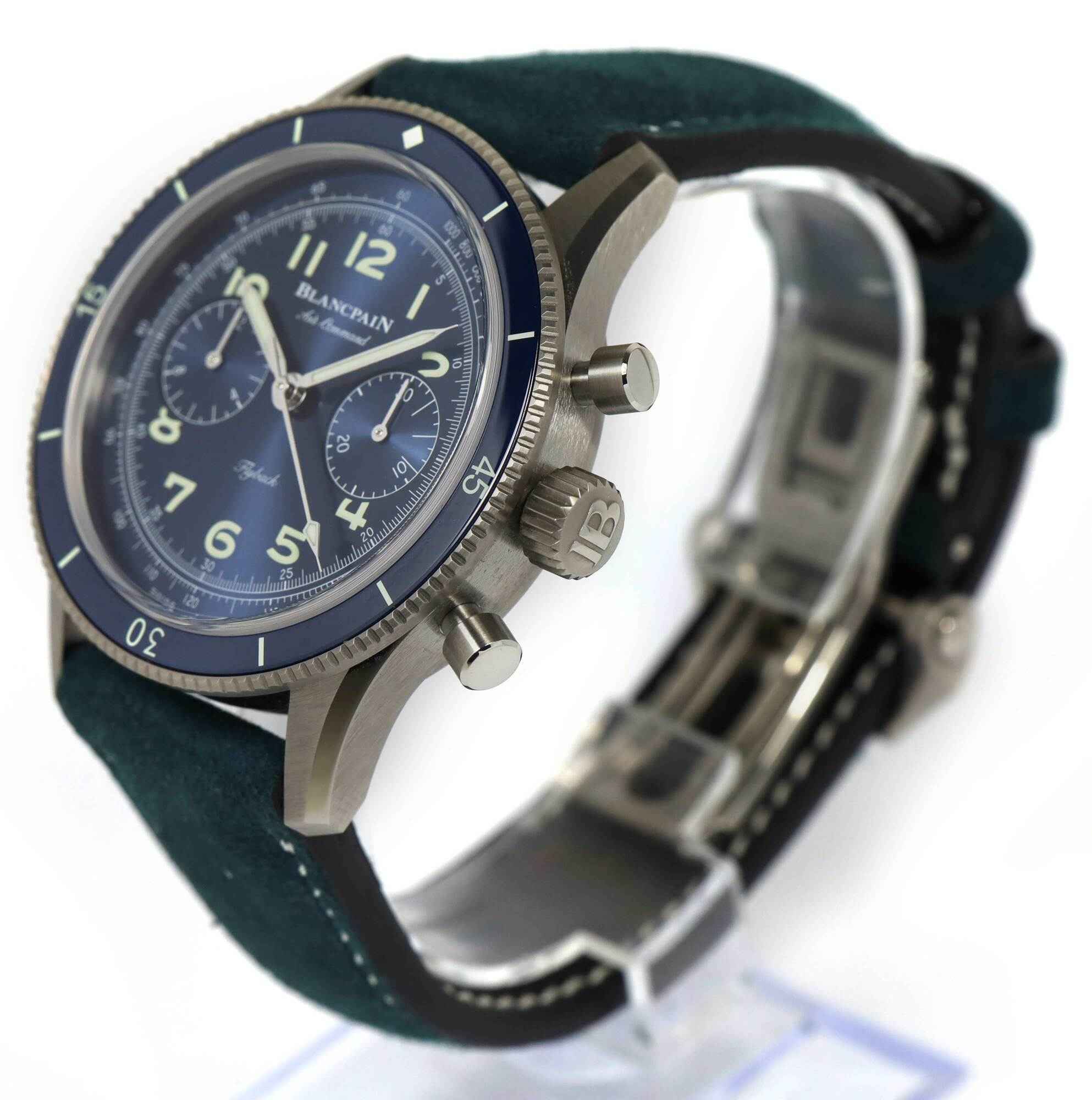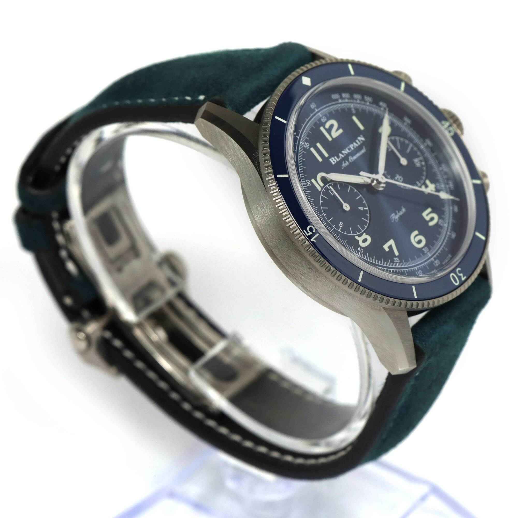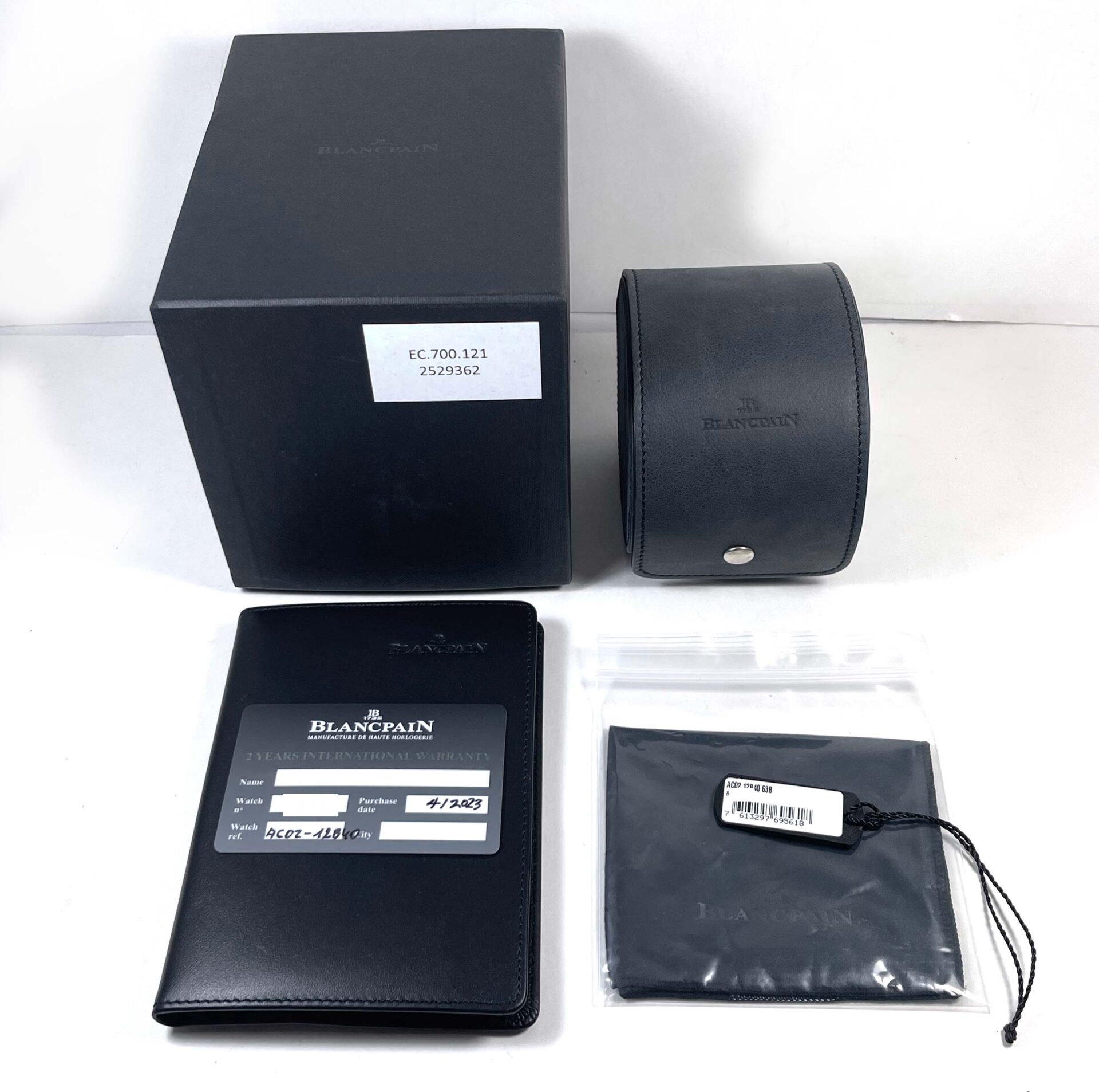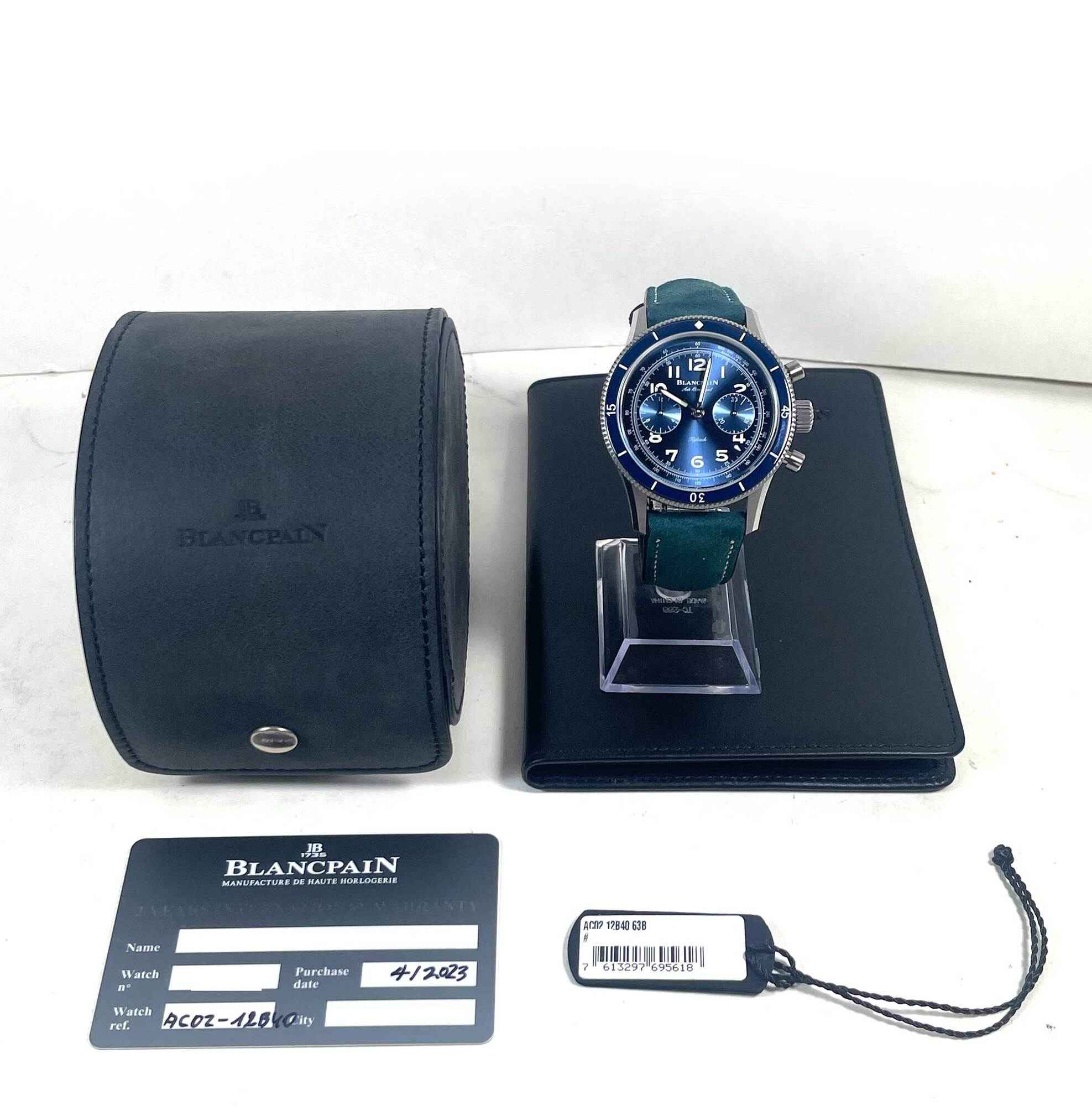 THIS BLANCPAIN IS IN SUPER CONDITION AND COMES WITH ITS BOOKLET, HANG TAG, TRAVEL CASE, AND WARRANTY CARD DATED APRIL, 2023 AS SHOWN IN THE PICTURES ATTACHED. THIS WATCH FEATURES A 42.5MM TITANIUM CASE THAT SURROUNDS A BLUE DIAL AND COMES ON A BLUE STRAP WI...