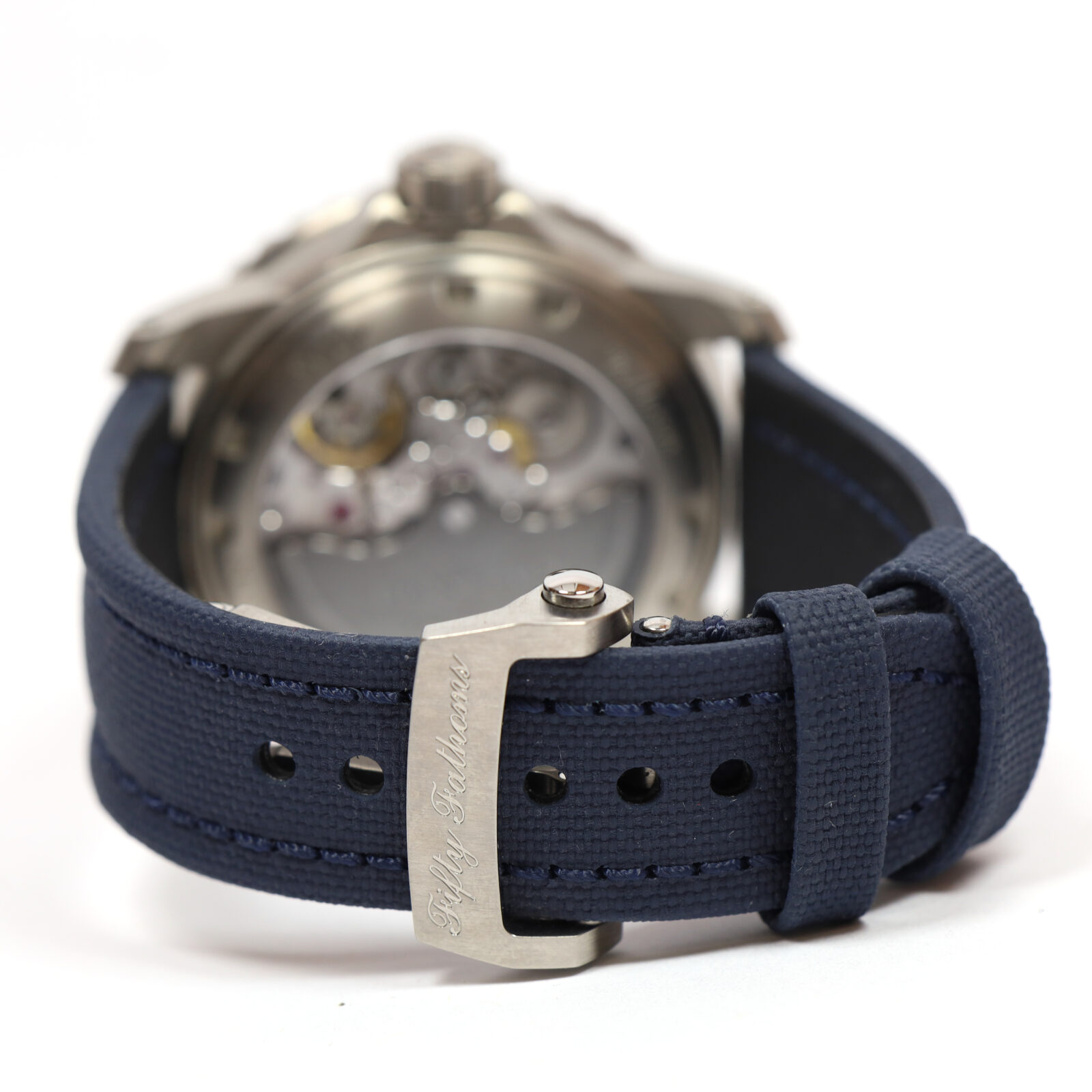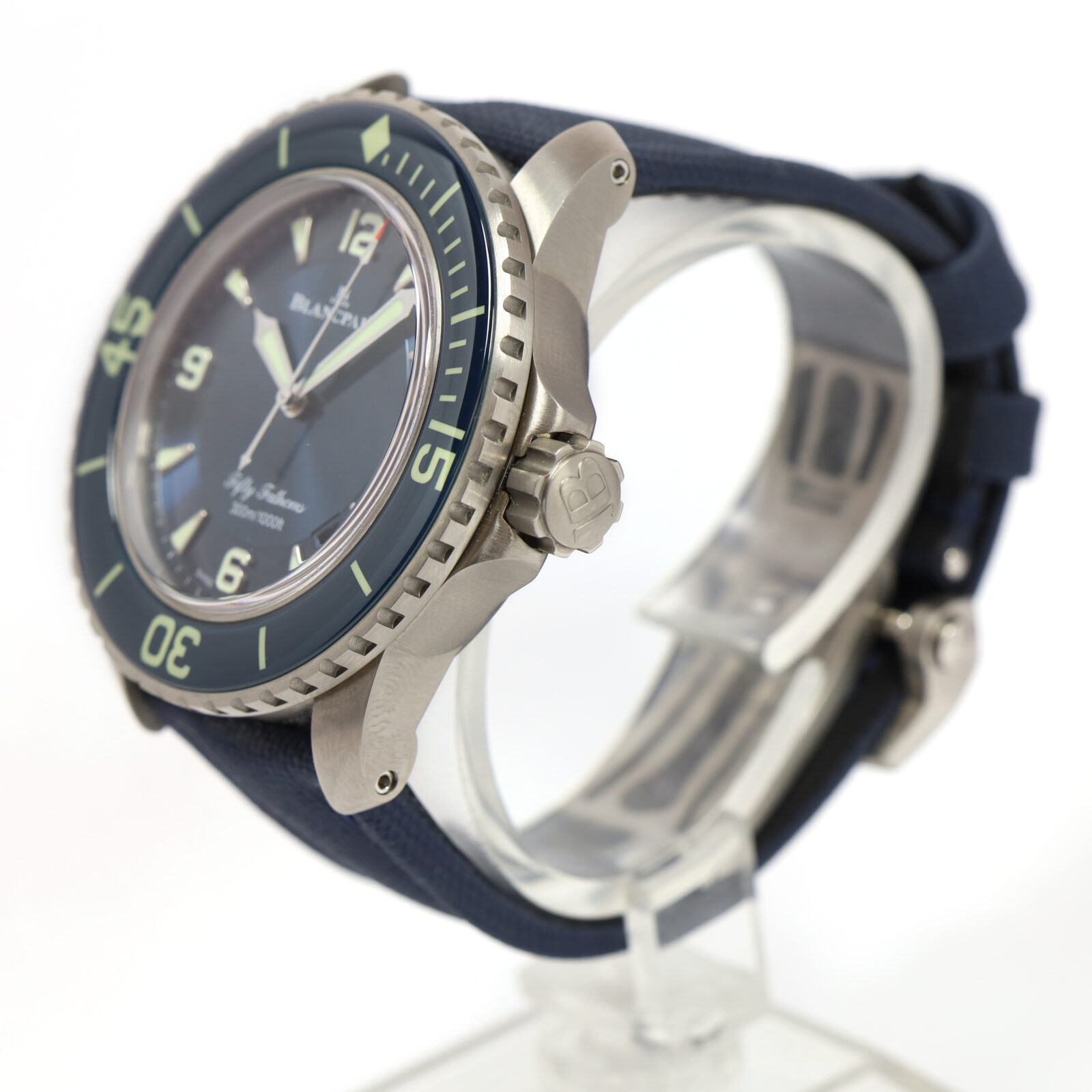 This Blancpain watch is in excellent condition and comes with its box, booklets, one additional blue strap, and warranty card dated June 19th, 2022 as shown in the pictures attached. This watch is in stock and available to ship immediately!