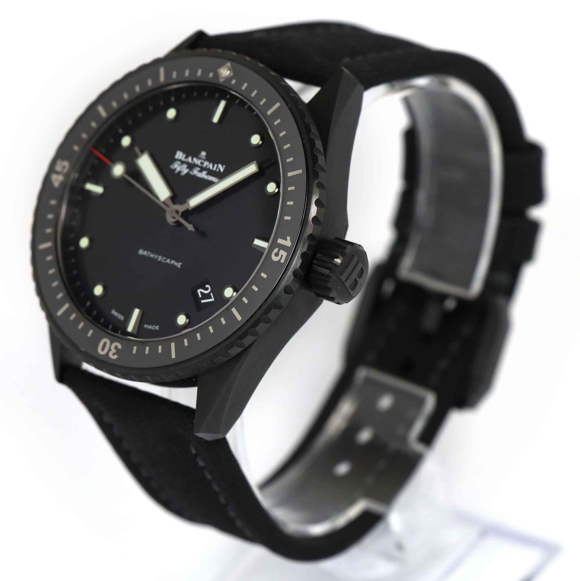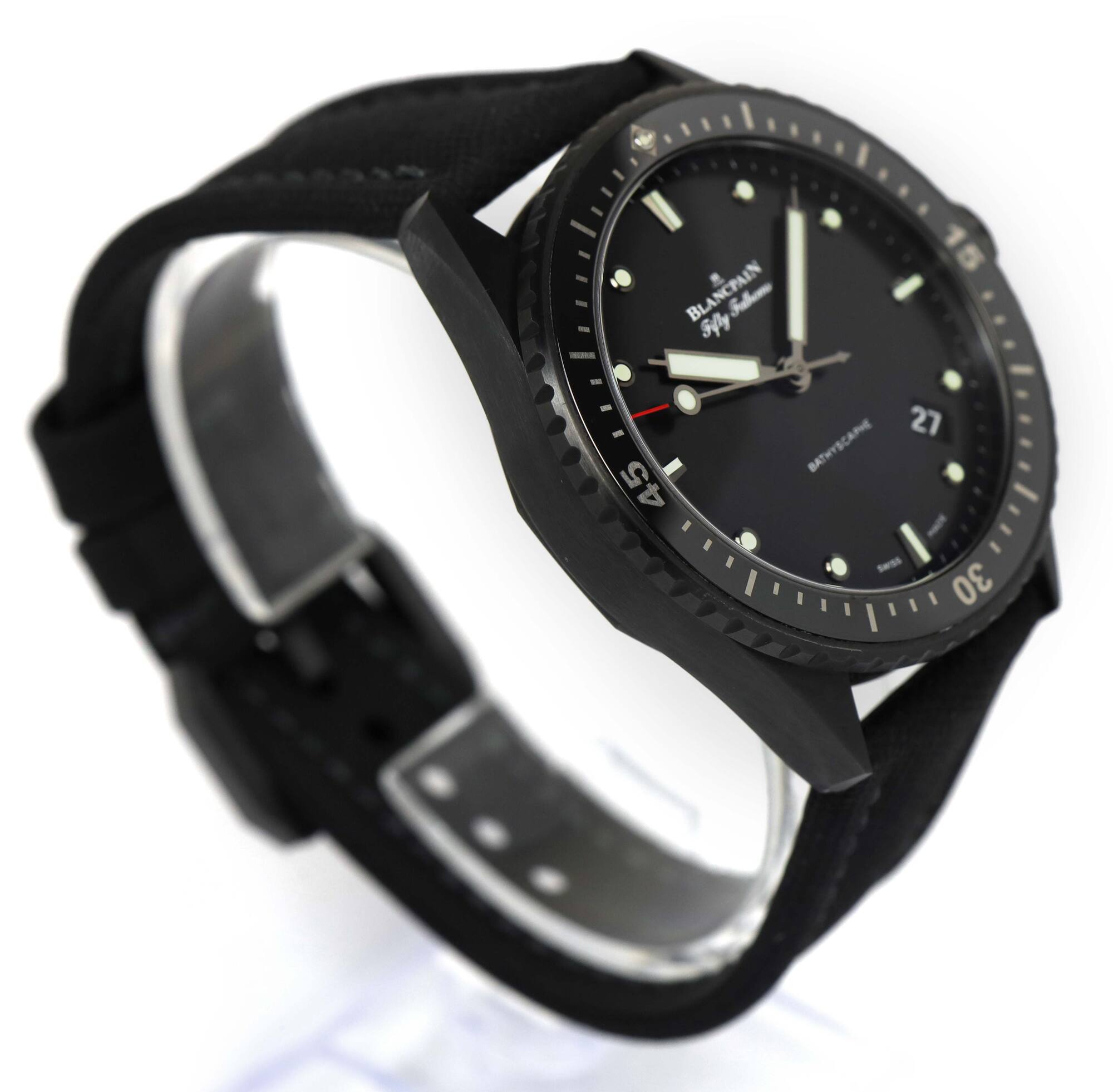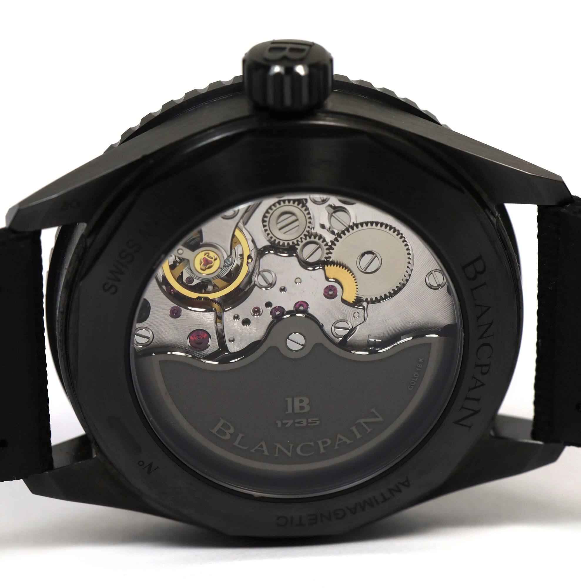 THIS BLANCPAIN IS IN EXCELLENT CONDITION AND COMES AS WATCH ONLY AS SHOWN IN THE PICTURES ATTACHED. THIS WATCH FEATURES A 43MM BLACK CERAMIC CASE SURROUNDING A BLACK DIAL ON A BLACK CANVAS STRAP WITH A BLACK CERAMIC TANG BUCKLE. THE WATCH FUNCTIONS INCLUDE ...