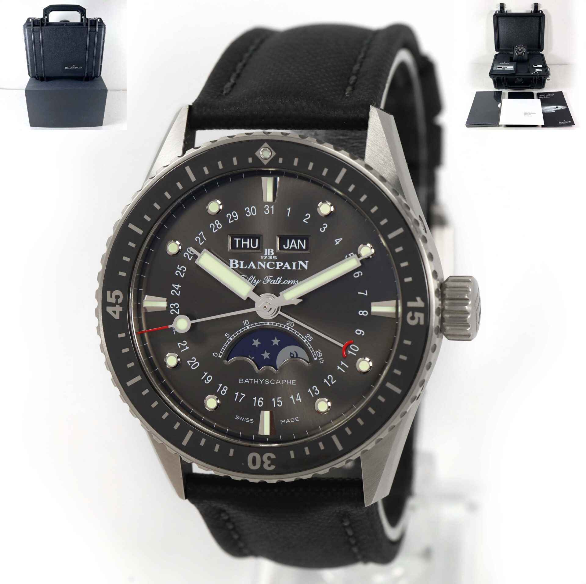 This Blancpain is in excellent condition and comes with its box, papers, hang tags, and warranty card as shown in the photos attached. This watch features a grey dial displaying the day, date, month, hour, minute, second...