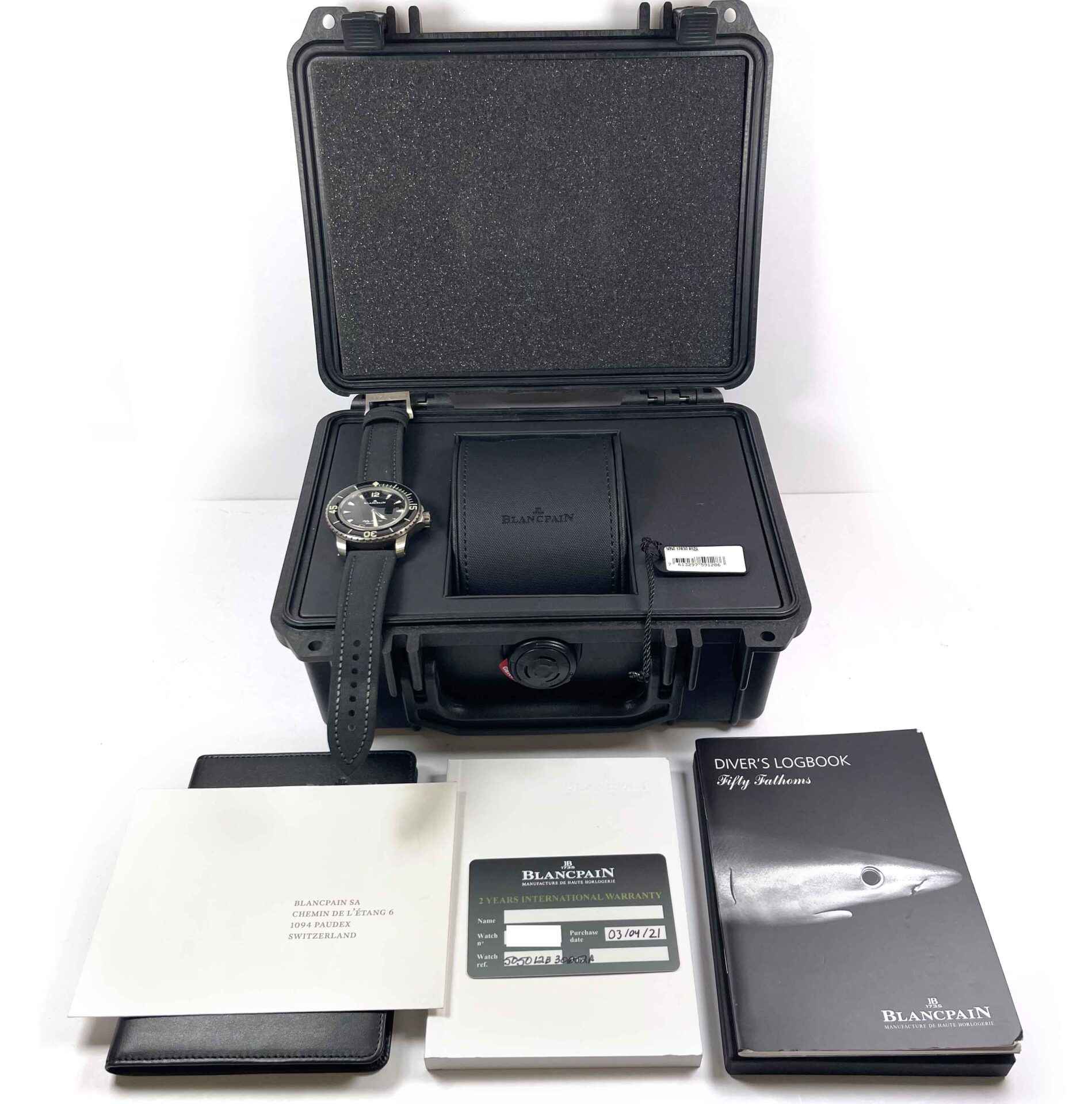 THIS BLANCPAIN WATCH IS IN EXCELLENT CONDITION AND COMES WITH ITS BOX, BOOKLETS, HANG TAG, AND WARRANTY CARD DATED MARCH 4TH, 2021 AS SHOWN IN THE PICTURES ATTACHED. THIS WATCH IS IN STOCK AND AVAILABLE TO SHIP IMMEDIATELY!