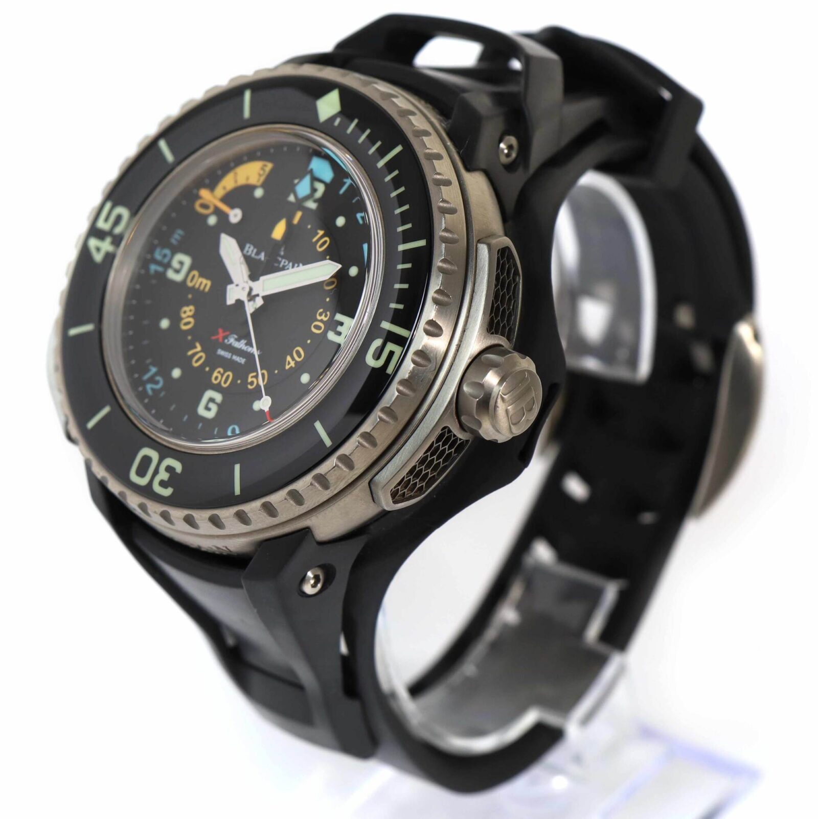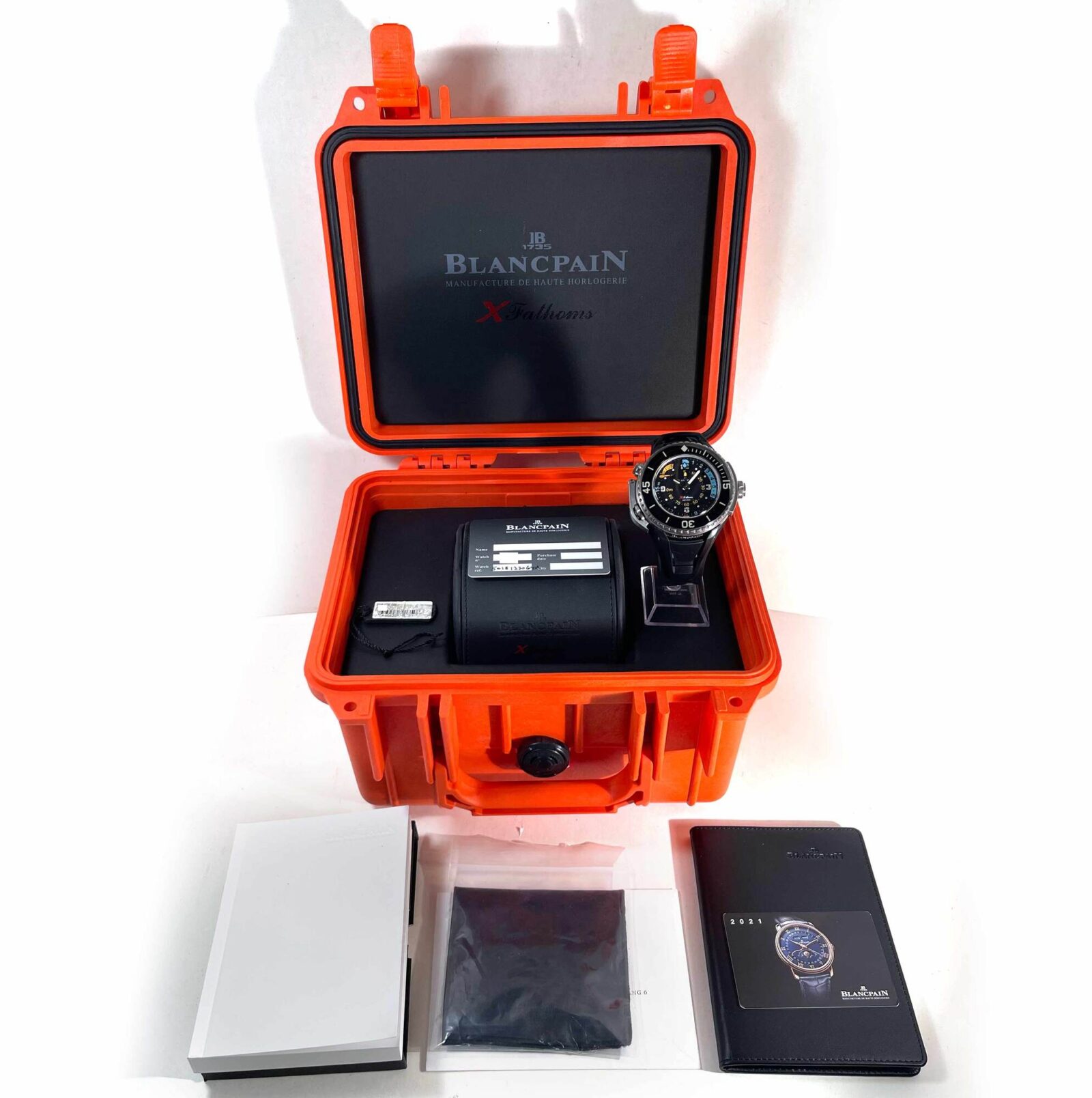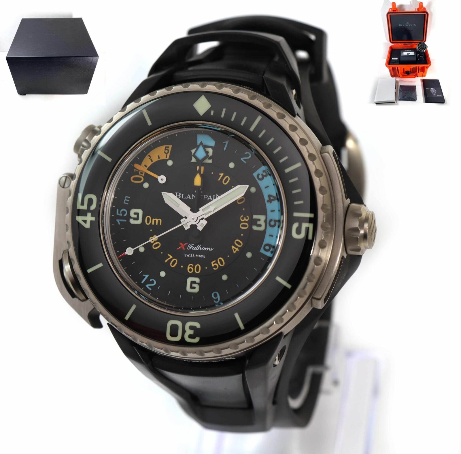Read Morethis blancpain watch is in excellent condition and comes with its box, booklets, microfiber cloth, hang tag, travel case, and warranty card as shown in the pictures attached. This watch features a 55mm titanium case that surrounds a black dial and comes on a black rubber strap. This watch is in stock and available to ship immediately!