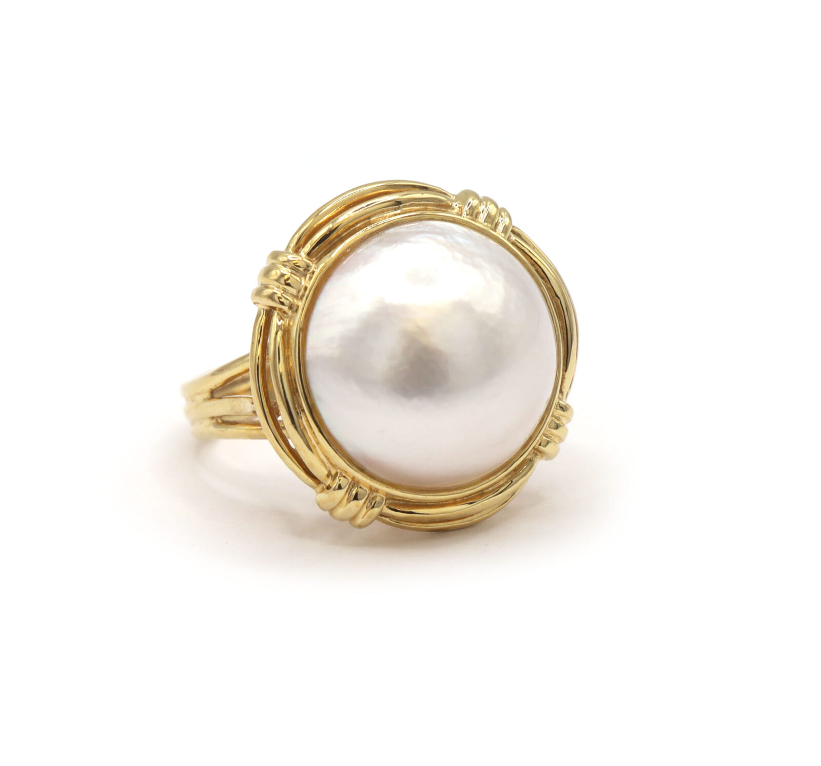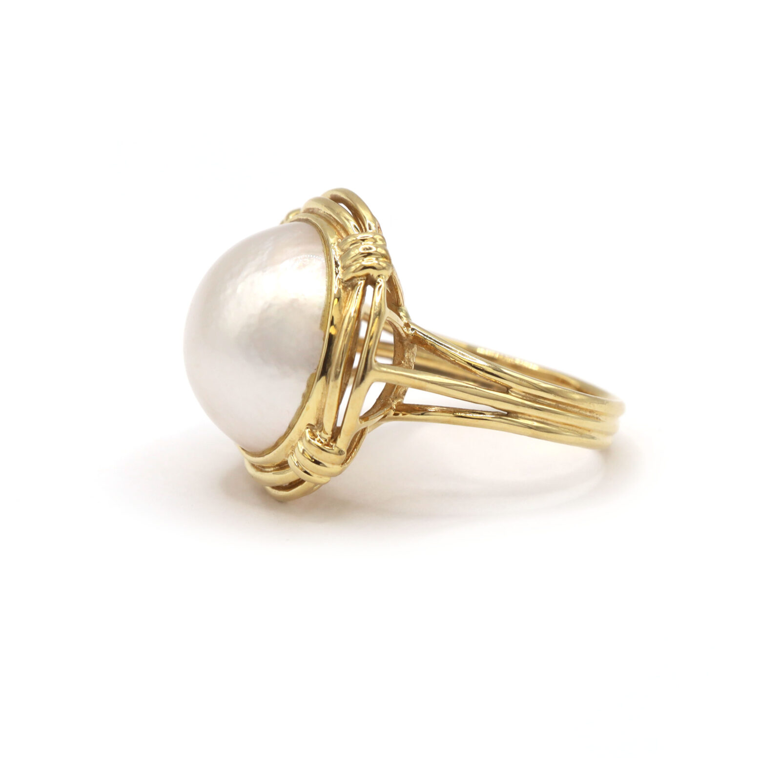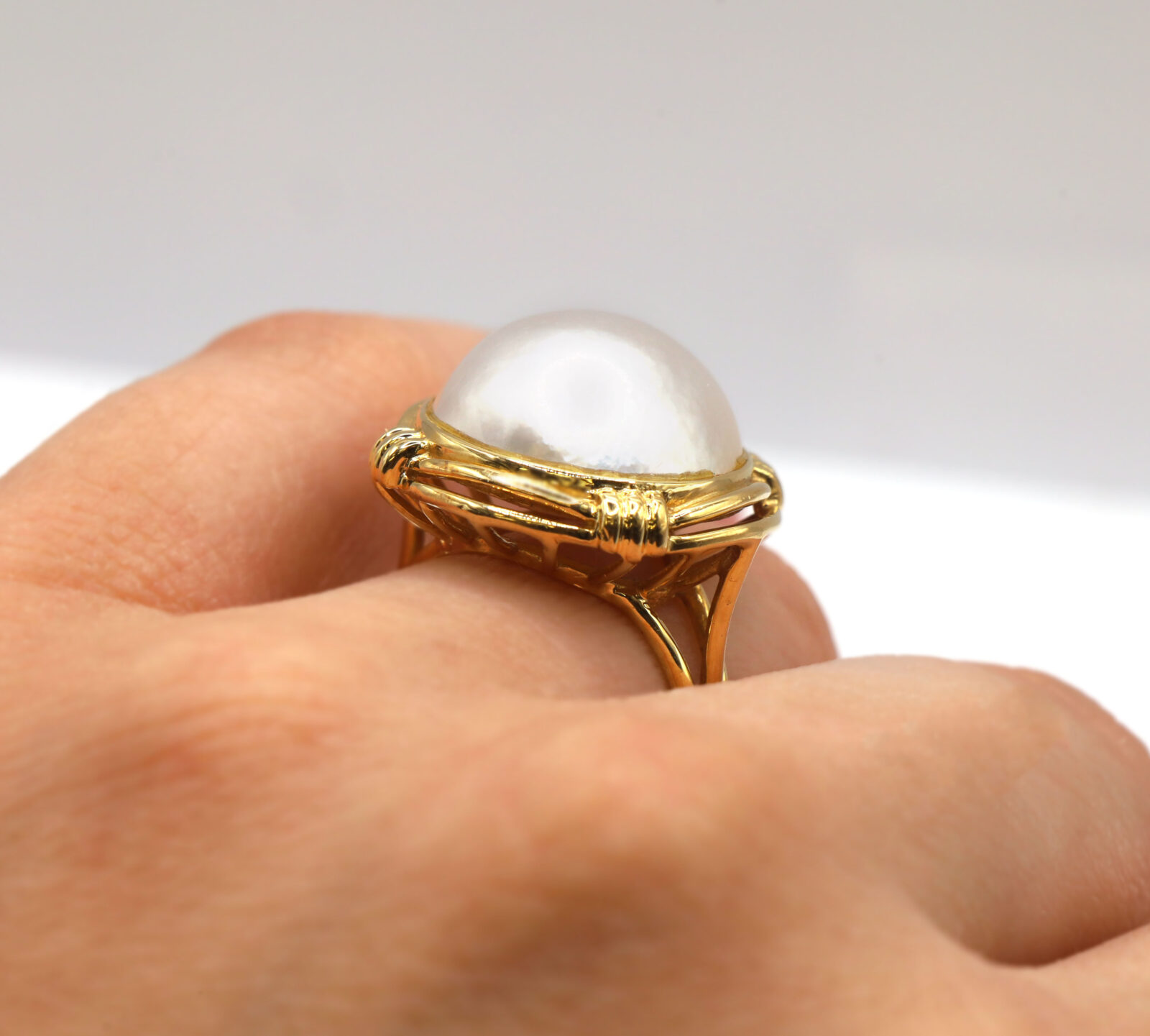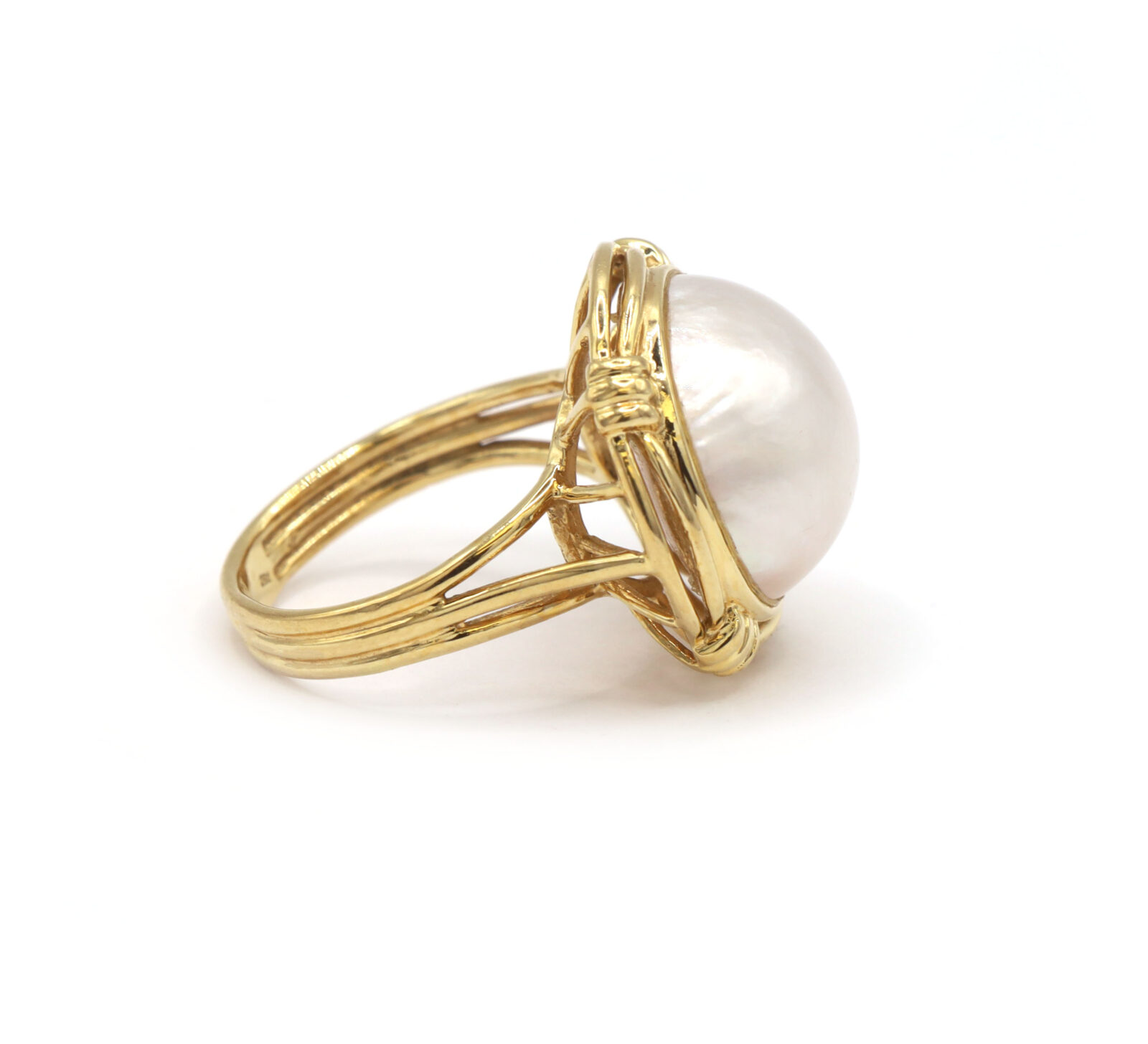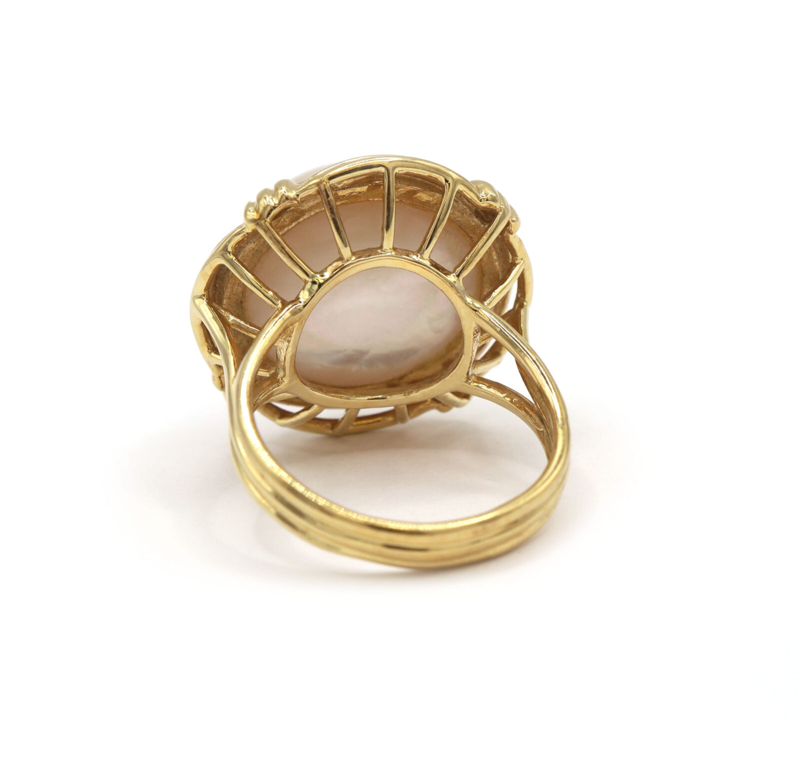 Blister Pearl Big Chunky Bezel Set 18K Yellow Gold Cocktail Women’s Ring