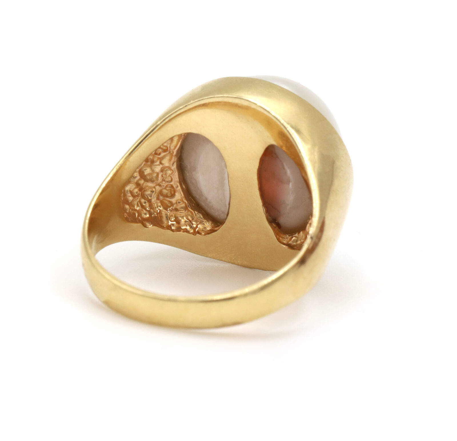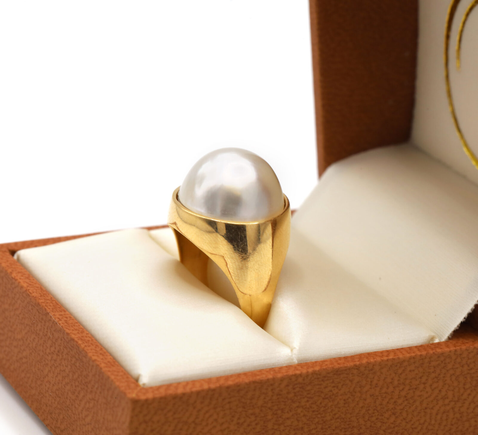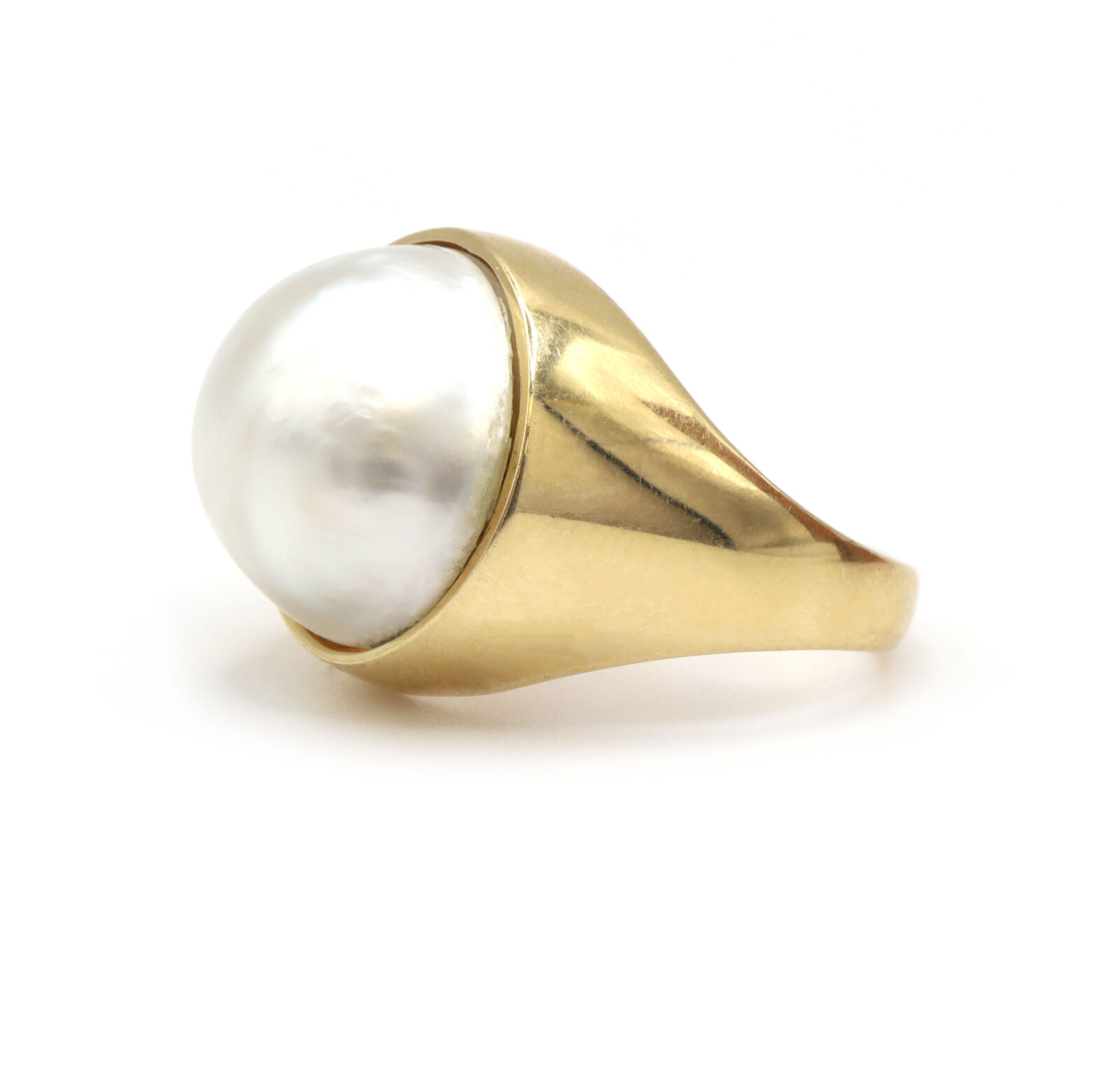 Size: 5.5 Gemstone: South Sea Blister Pearl Pearl Measurements: 13.8 x 13.8 mm Band Measurements: 3mm Material: 14k Yellow Gold Weight: 8 Grams