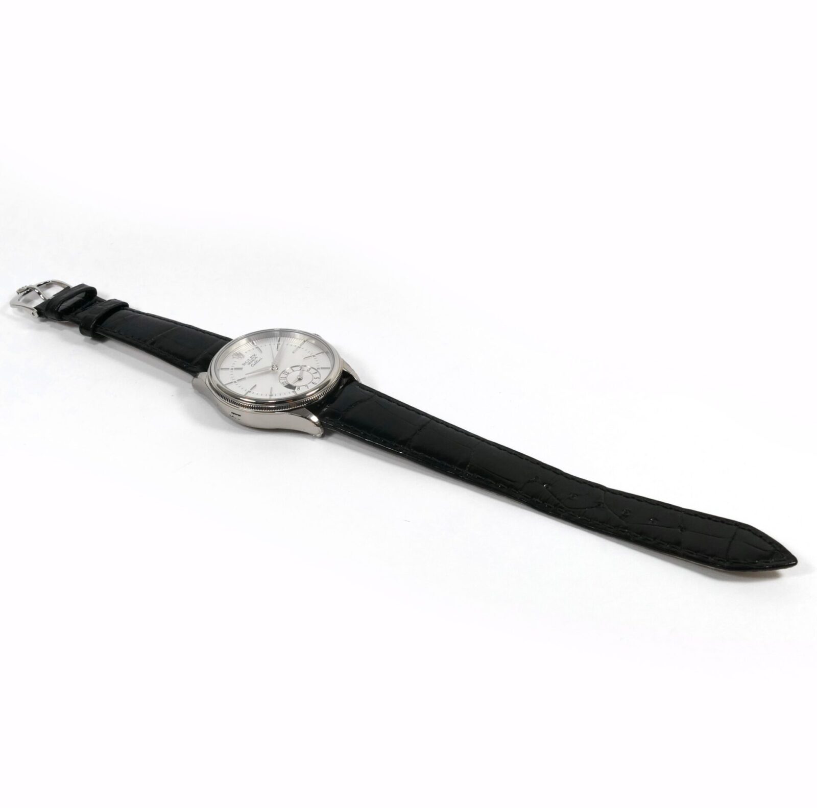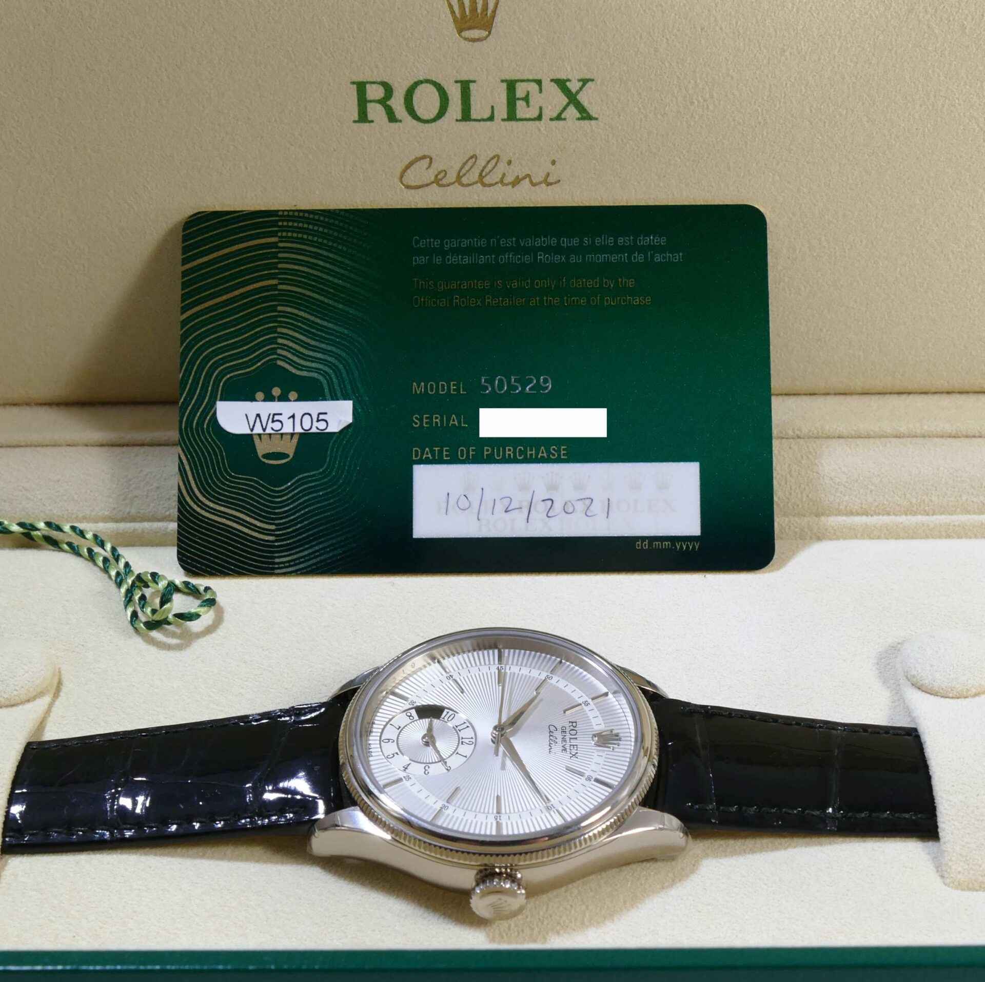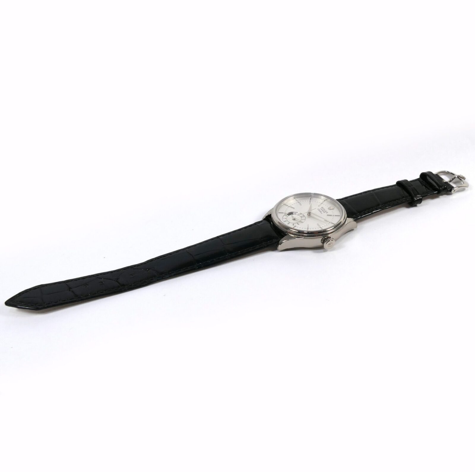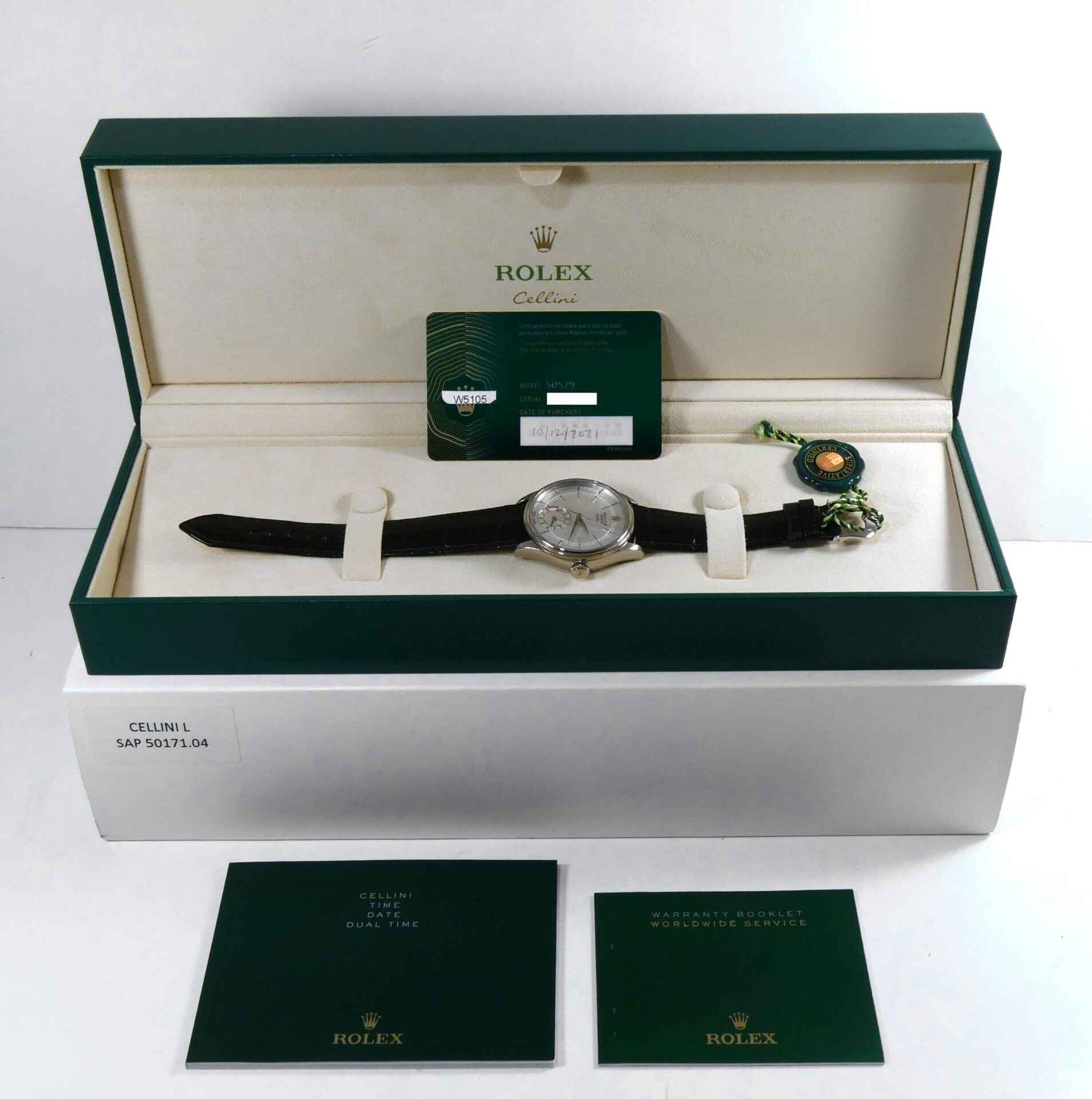 Read Morethis rolex cellini is new and comes with its box, papers, hang tag, and warranty card dated october 12th, 2021. This watch comes on its original crocodile strap, features an 18k white gold case, a silver dial, display of second time zone on the sub-dial with a day/night indicator and also has full stickers as shown in the photos attached.