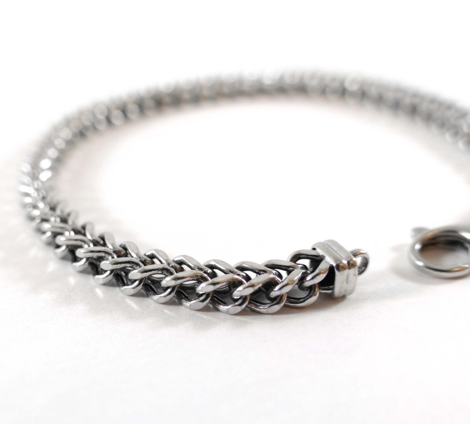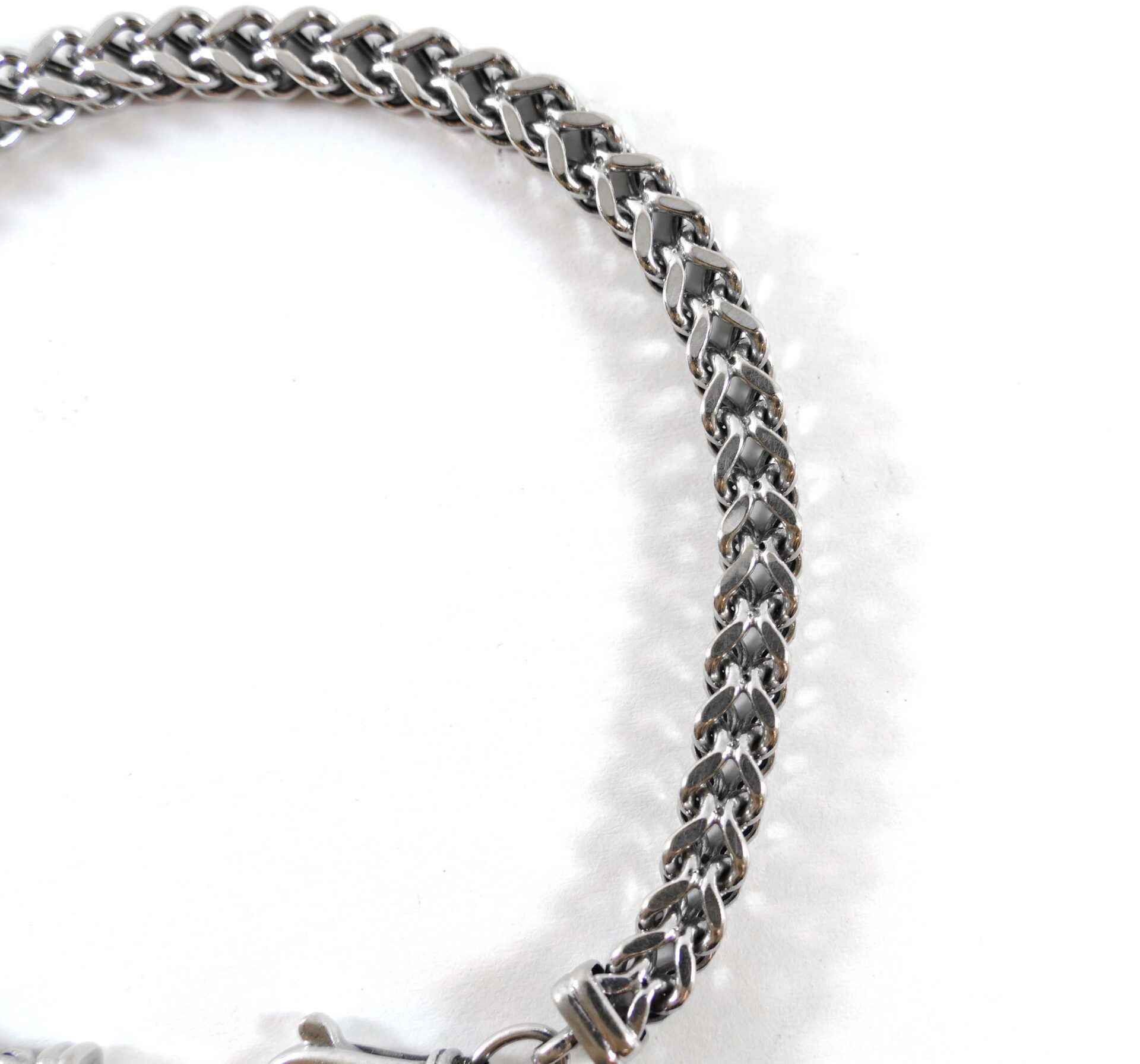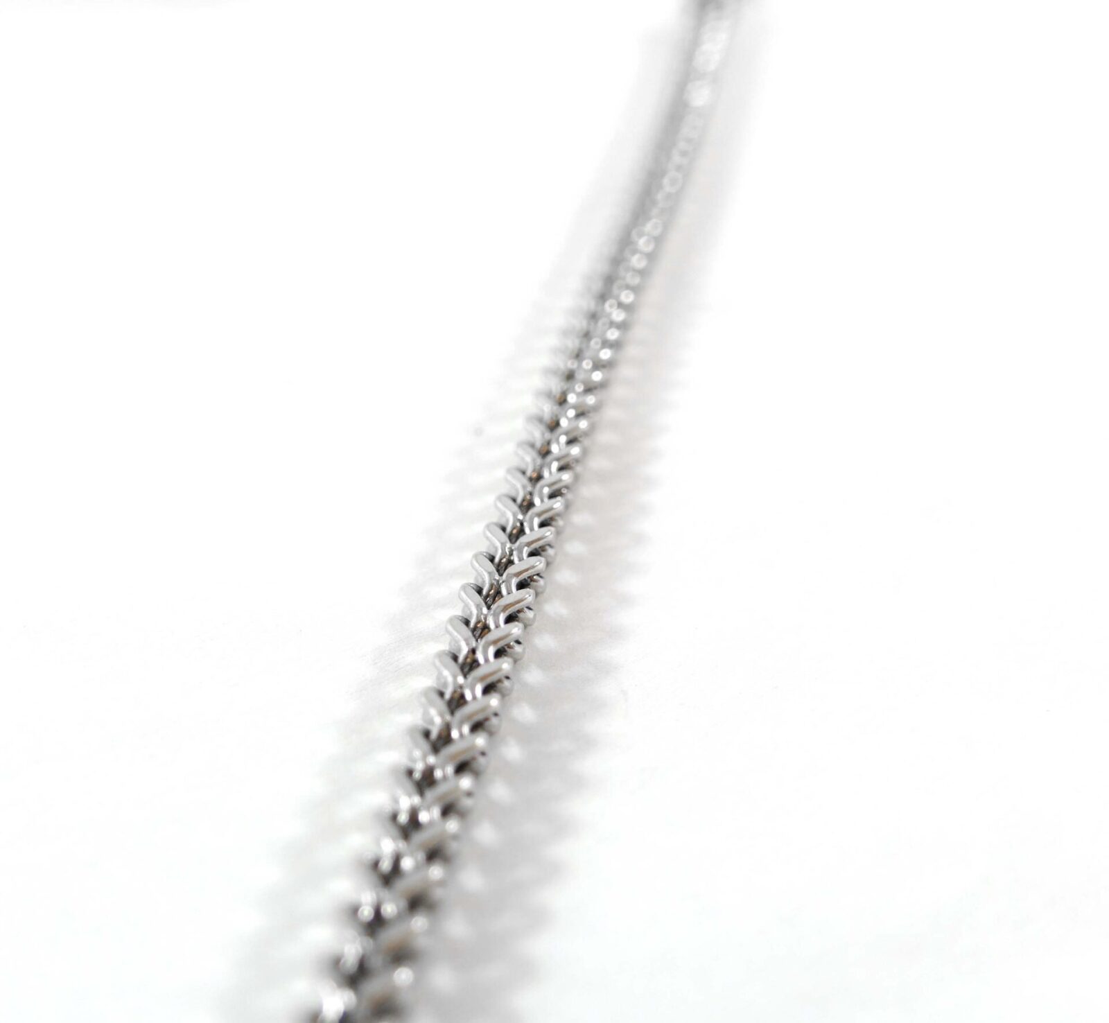 Description: This box Franco link chain bracelet is 14k white gold, and 8.75 inches long. Material: Read More
