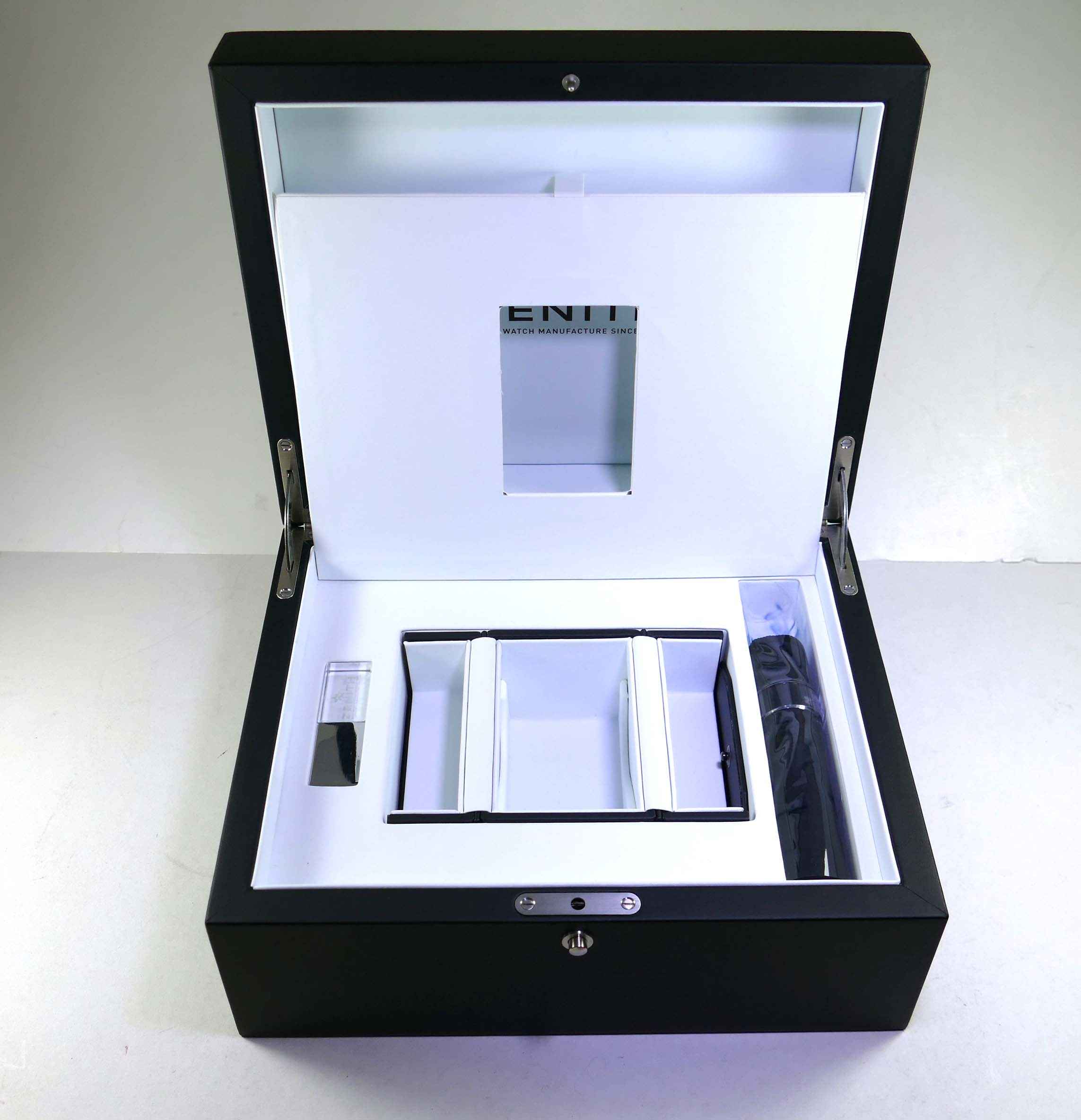 This watch is brand new and comes with all of  its original box and papers. The chronograph feature is amazing to witness in person, the second hand spins once per second which allows you to time down to the millisecon...