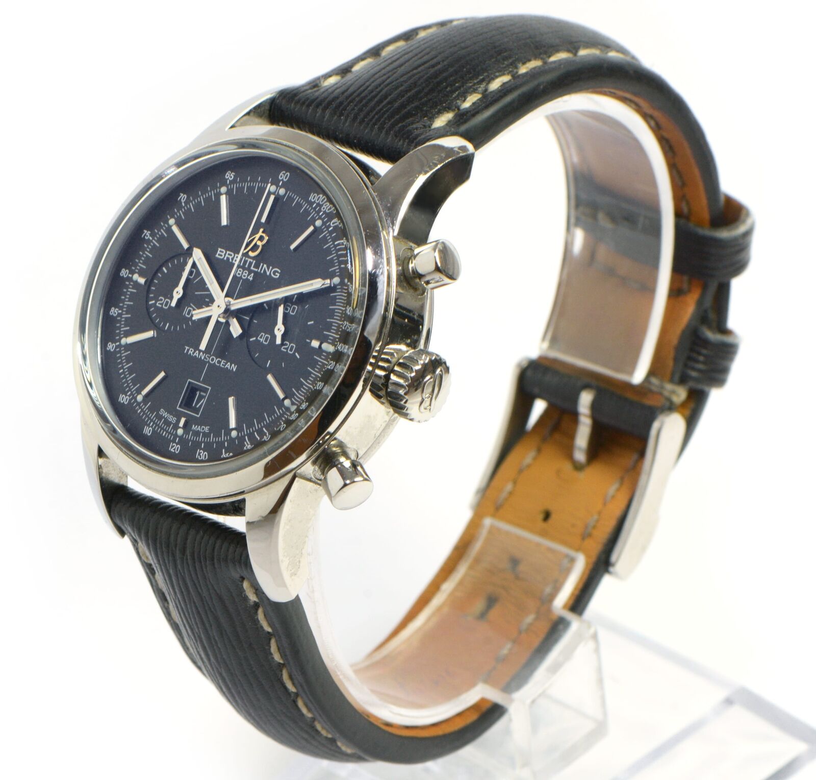 this breitling transocean chronograph is in excellent condition and keeping accurate time. It comes with its original box and paperwork.