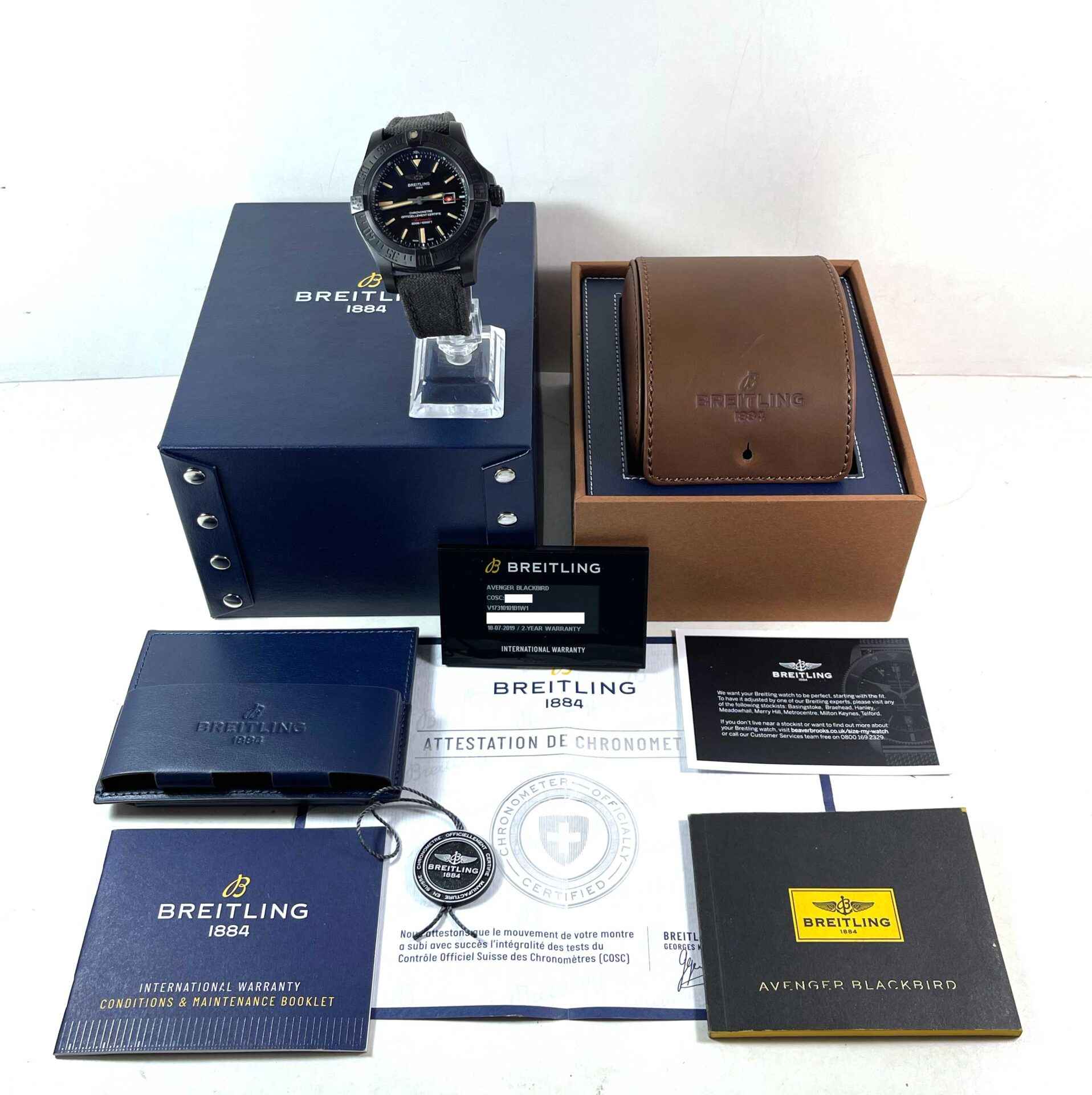 this breitling is in good condition and comes with its box, booklets, hang tag, and warranty card dated july 18th, 2019. This watch is in stock and available to ship immediately!