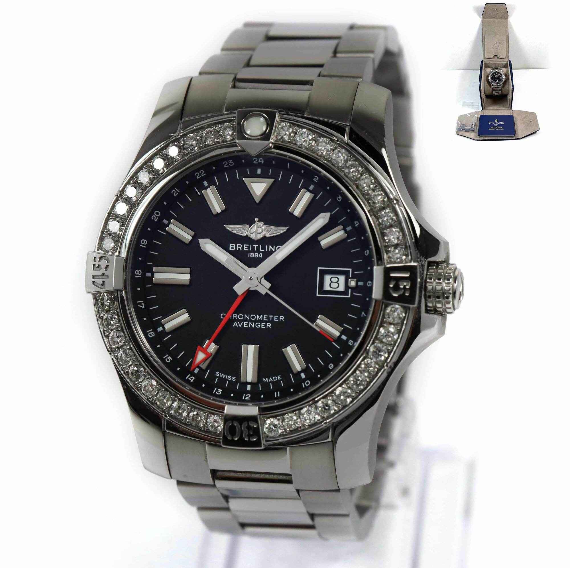 Breitling Avenger GMT A32397 43MM Black Dial Diamond Bezel Box Booklets