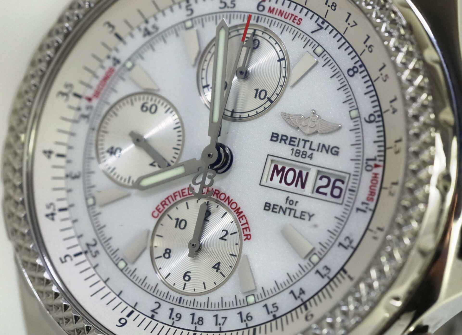 Read Morethis breitling watch is in excellent condition showing minor signs of wear consistent with regular use. This watch will fit approximately a 7-inch wrist as is. this watch is in stock and available to ship immediately!