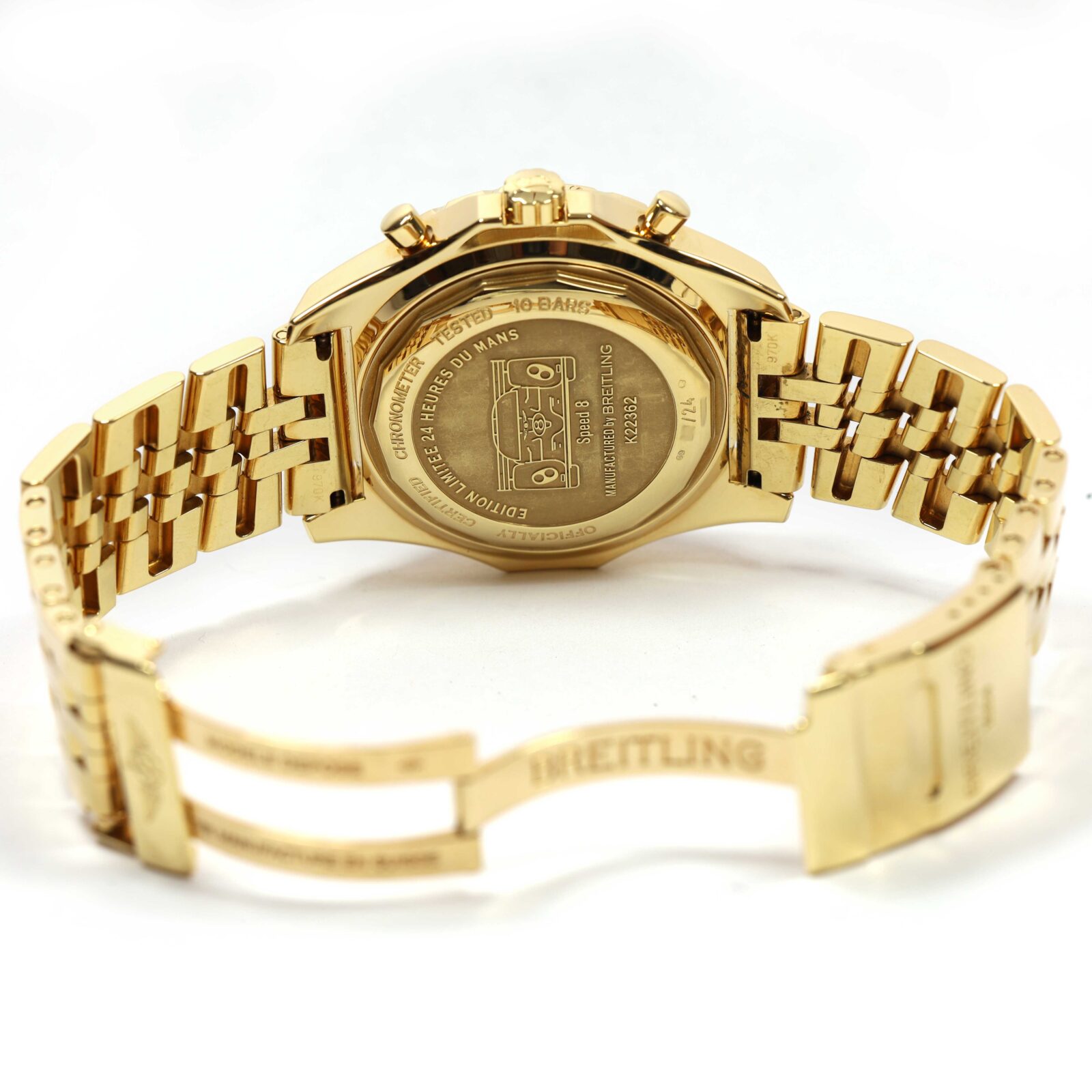 this breitling watch is in excellent overall condition showing some signs of surface wear consistent with preowned watches. The watch weighs 310.2 grams, and is nearly worth our asking price in gold alone! this watch is part of a very limited edition with only 24 total pieces produced in this model. This comes as watch only and is in stock and available to ship immediately!
