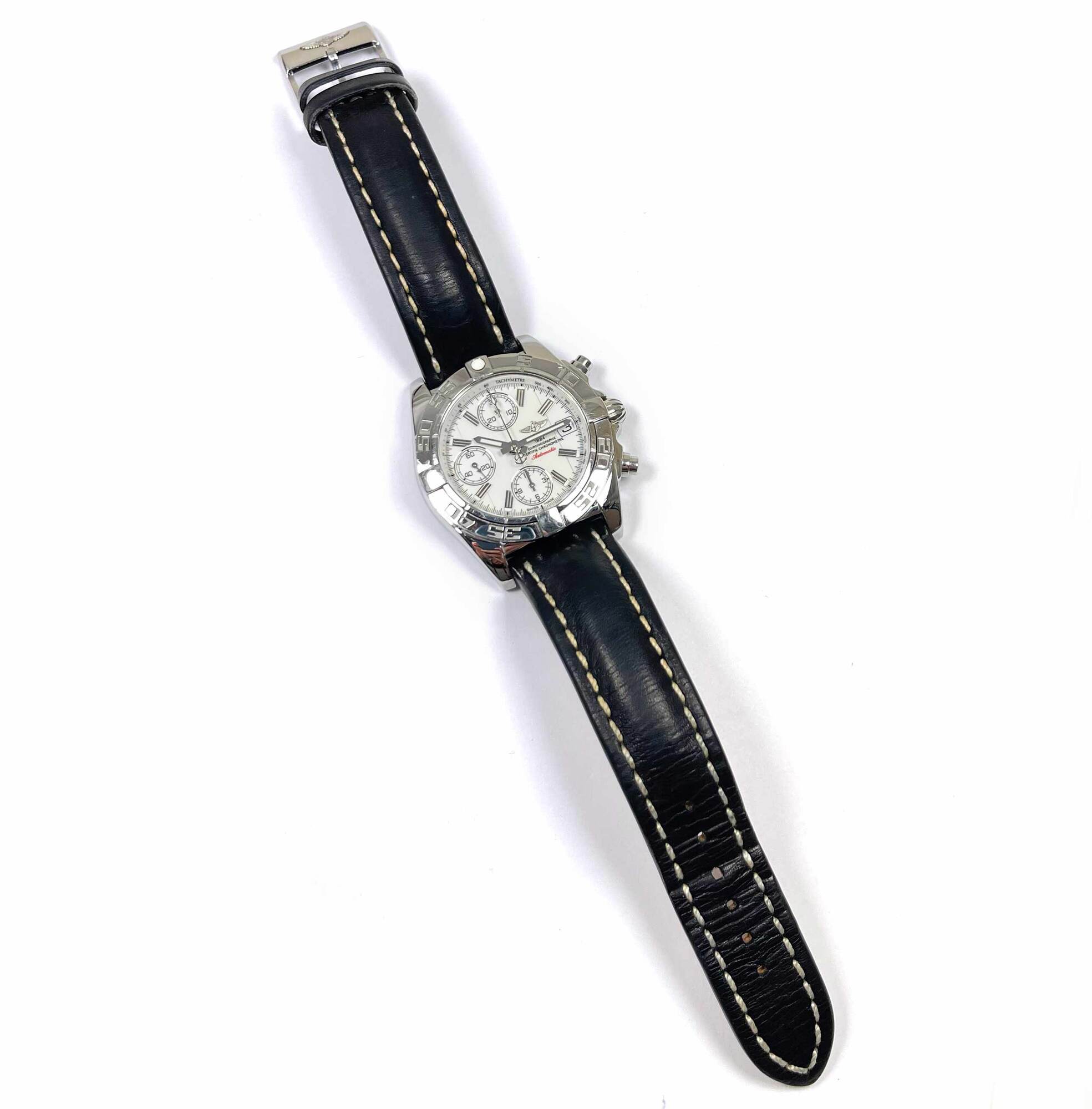 THIS BREITLING IS IN GOOD OVERALL CONDITION SHOWING SOME SIGNS OF WEAR ON THE CASE, BEZEL, AND STRAP CONSISTENT WITH PREOWNED WATCHES. THIS COMES AS WATCH ONLY AND IS IN STOCK AND AVAILABLE TO SHIP IMMEDIATELY!