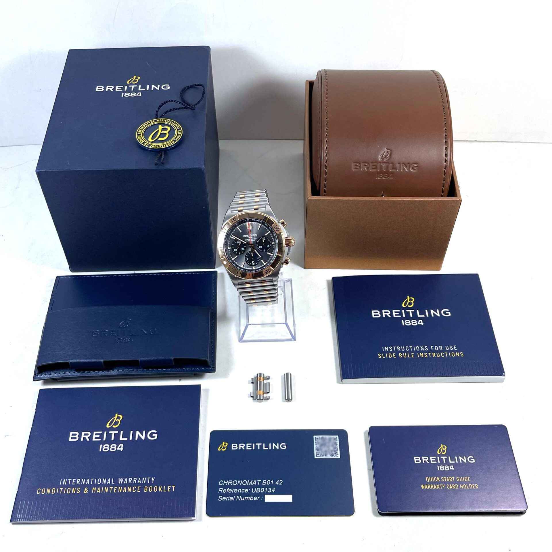 Read Morethis breitling is in excellent condition and comes with its box, booklets, hang tag, spare links, and warranty card as shown in the pictures attached. This watch features a 42mm steel case that surrounds a grey dial with a rose gold bezel and comes on a two-tone rose gold/steel bracelet. This watch is in stock and available to ship immediately!
