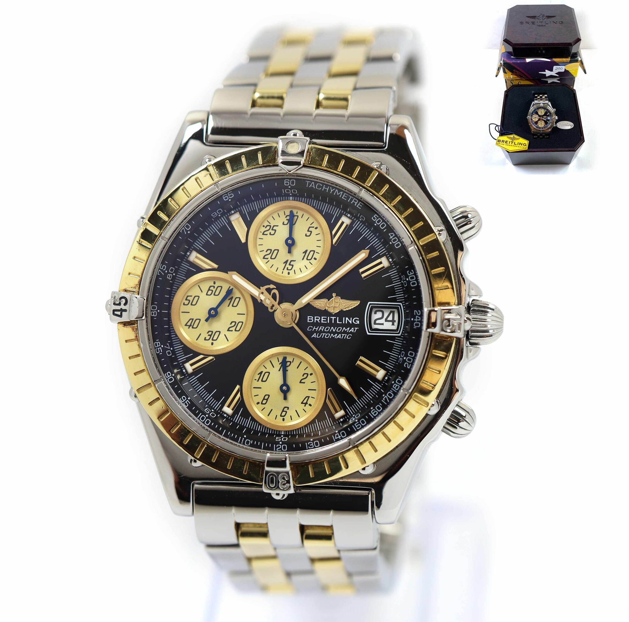 Breitling Chronomat D13050.1 39MM Black Dial 18K Yellow Gold Two Tone Box