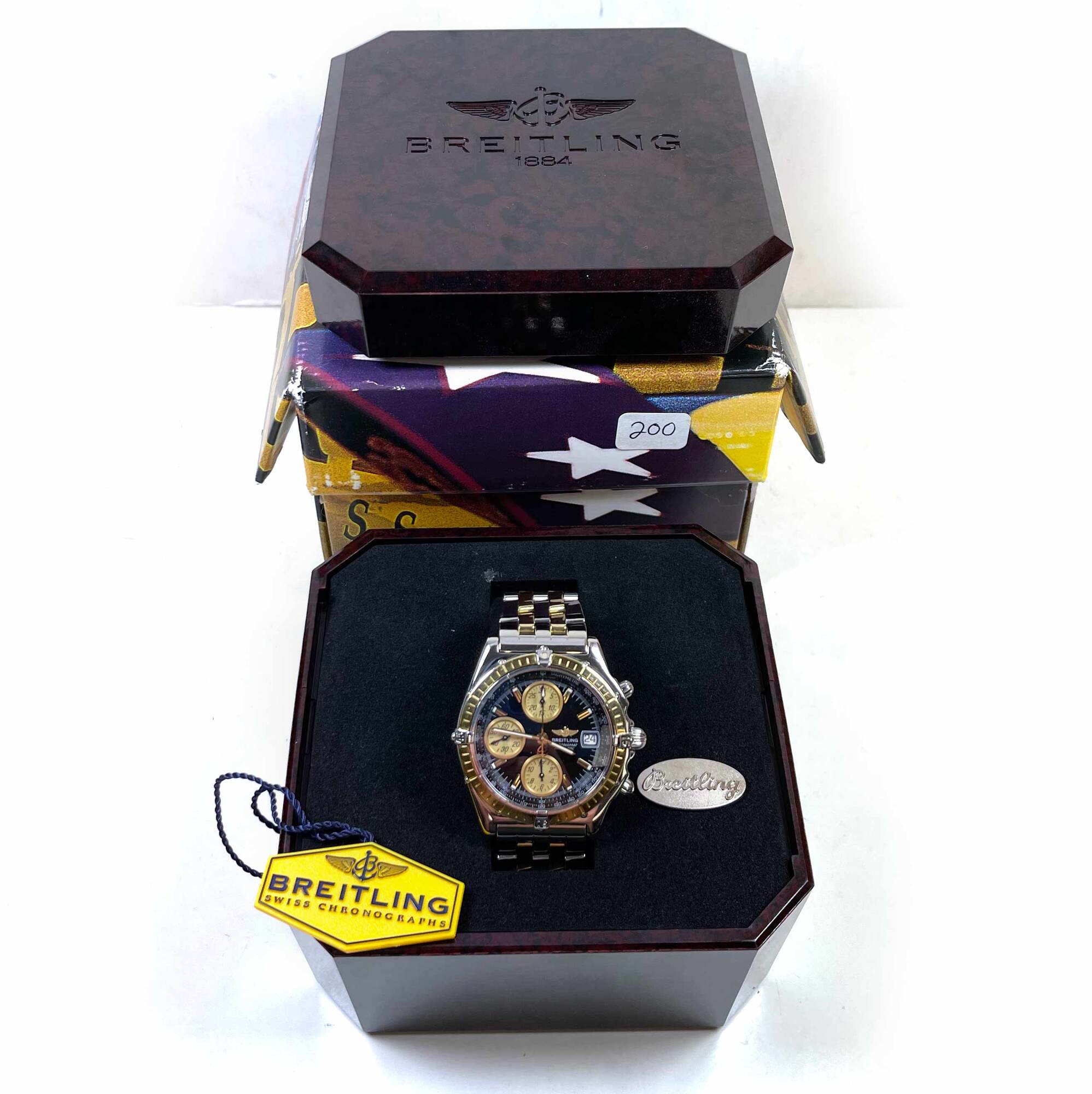 THIS BREITLING IS IN GOOD OVERALL CONDITION SHOWING SIGNS OF WEAR ON THE CASE, BEZEL, AND BRACELET CONSISTENT WITH PREOWNED WATCHES. THIS WATCH WAS SERVICED BY OUR EXPERT WATCHMAKER IN OCTOBER, 2024. THIS COMES WITH ITS BOX AND HANG TAG ONLY AS SHOWN IN THE...