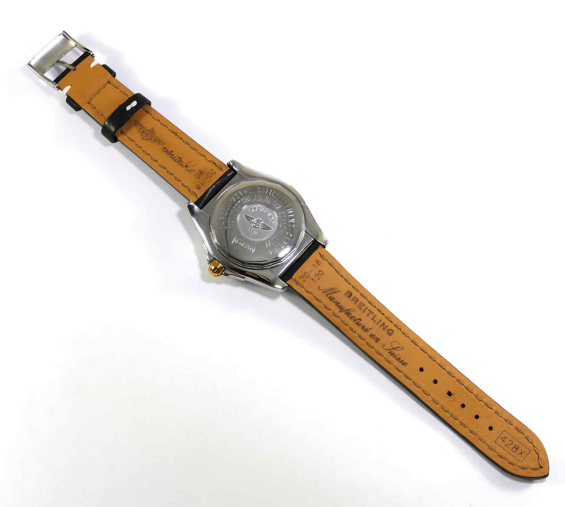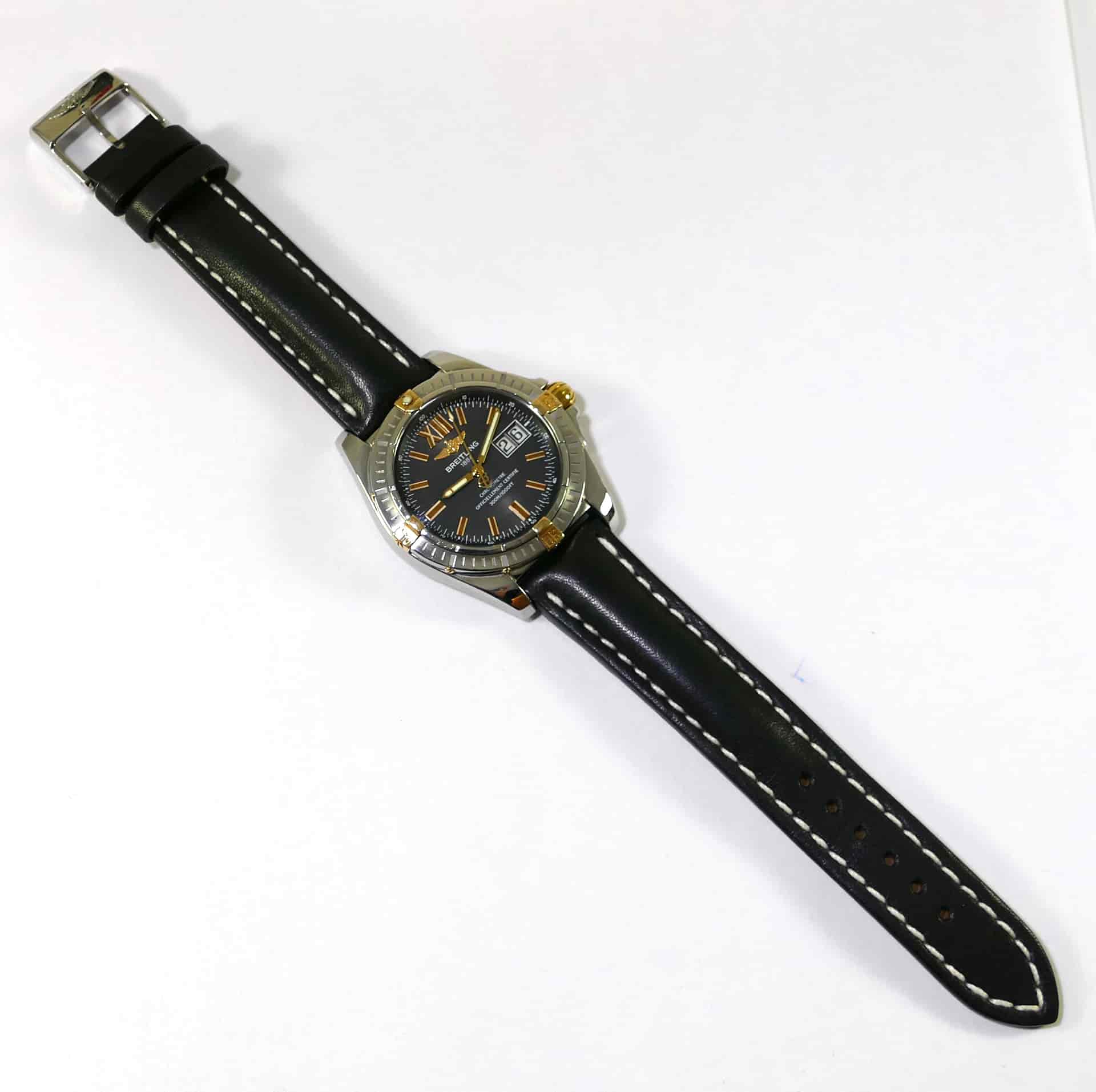 this breitling watch is in nice overall shape, and is functioning properly. It comes on a brand new original breitling leather strap and buckle.