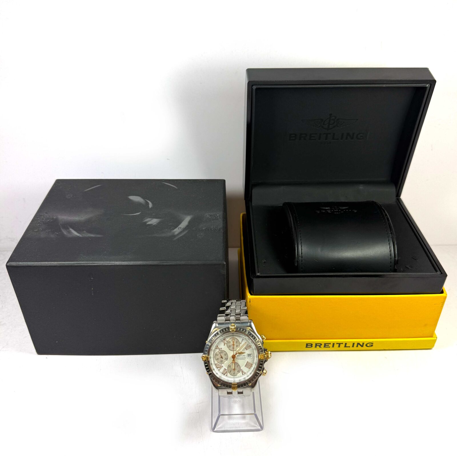 this breitling is in great overall condition showing some signs of surface wear consistent with preowned watches. This comes with its box only and is in stock and available to ship immediately!