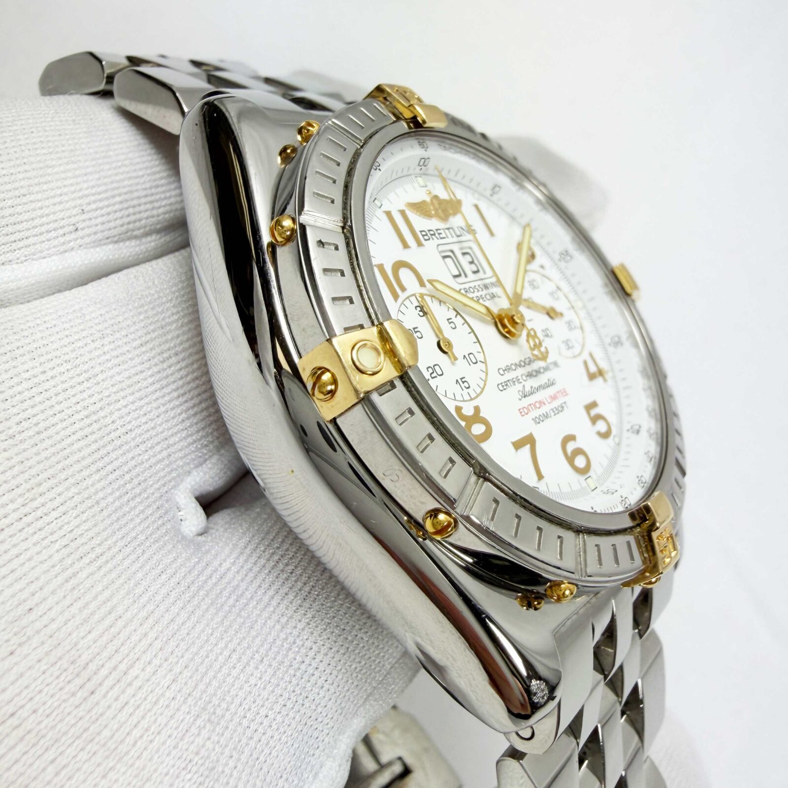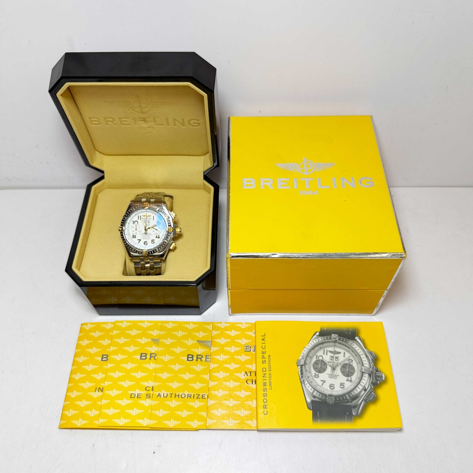 this breitling watch comes with its box, booklets, and warranty paper. This watch is part of a limited edition with only 1000 pieces produced in this model. The photos shown are of the exact watch being sold and accurately represent its condition. This watch is in stock and ready to ship immediately!