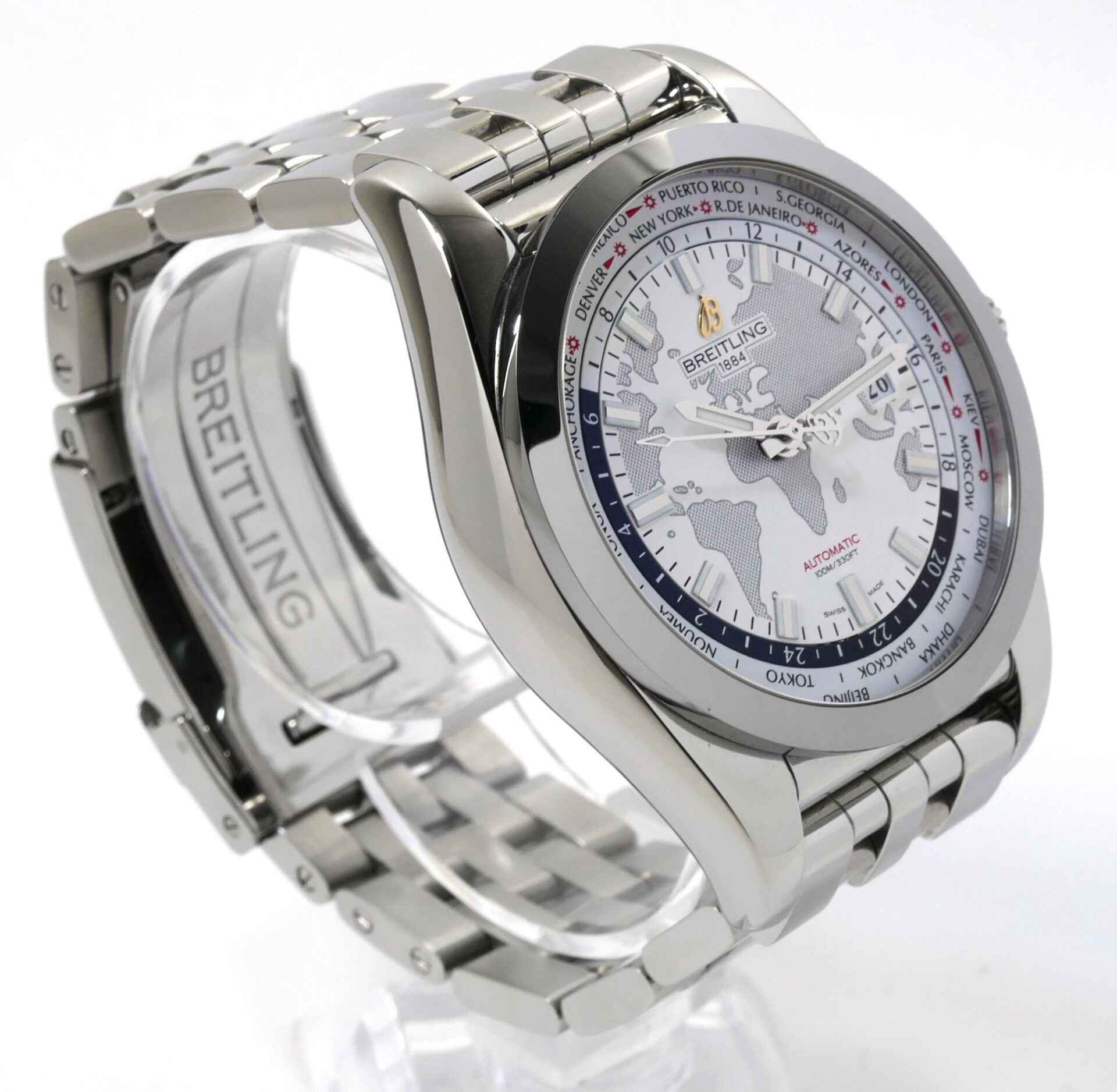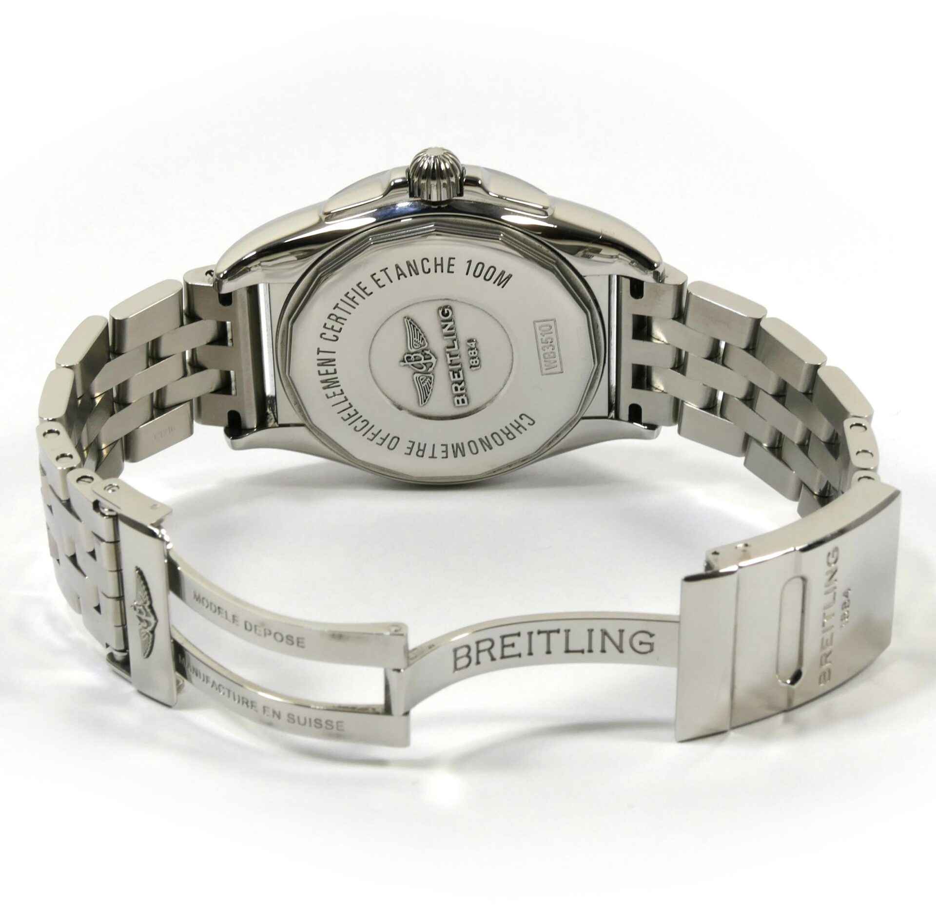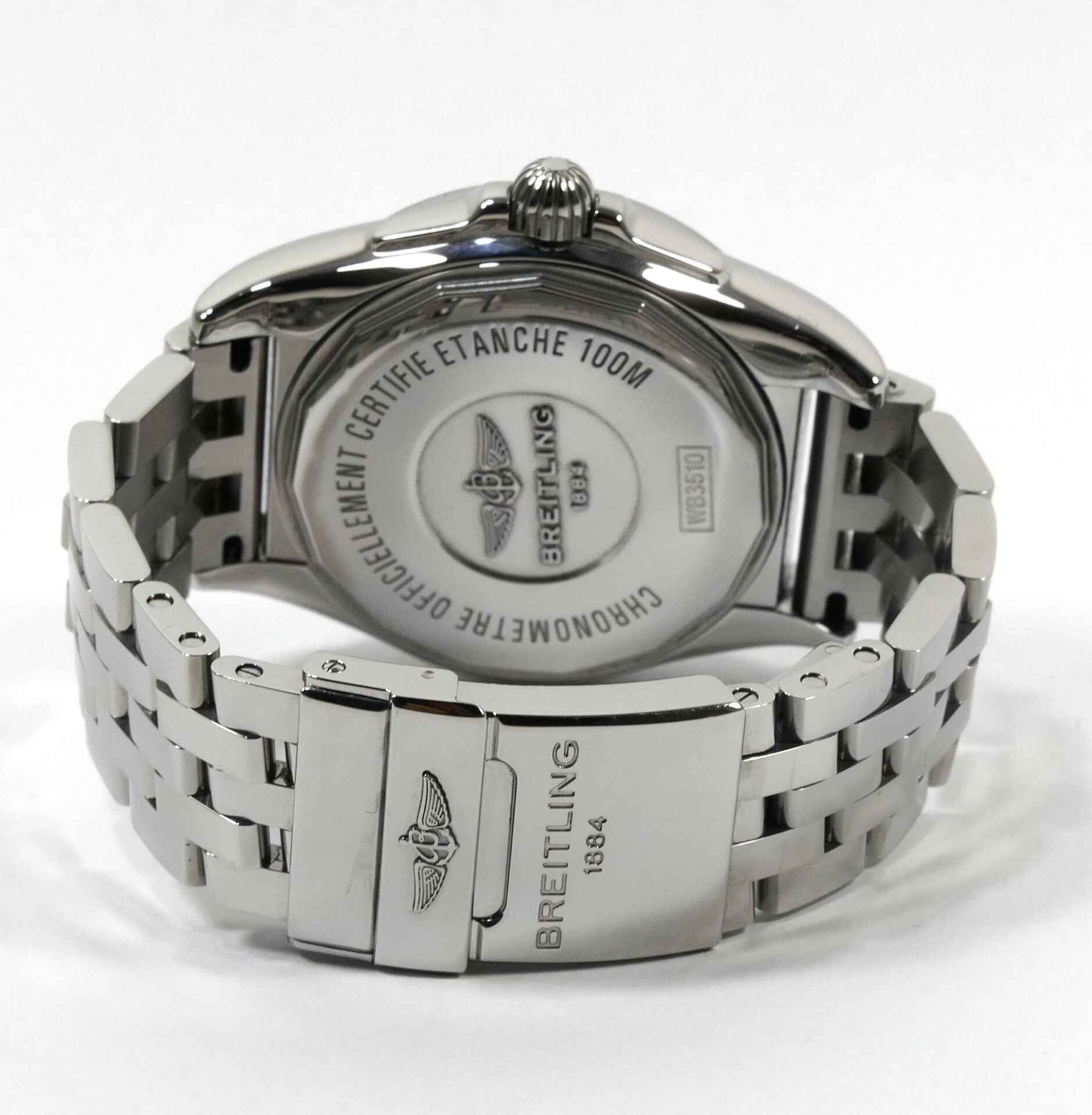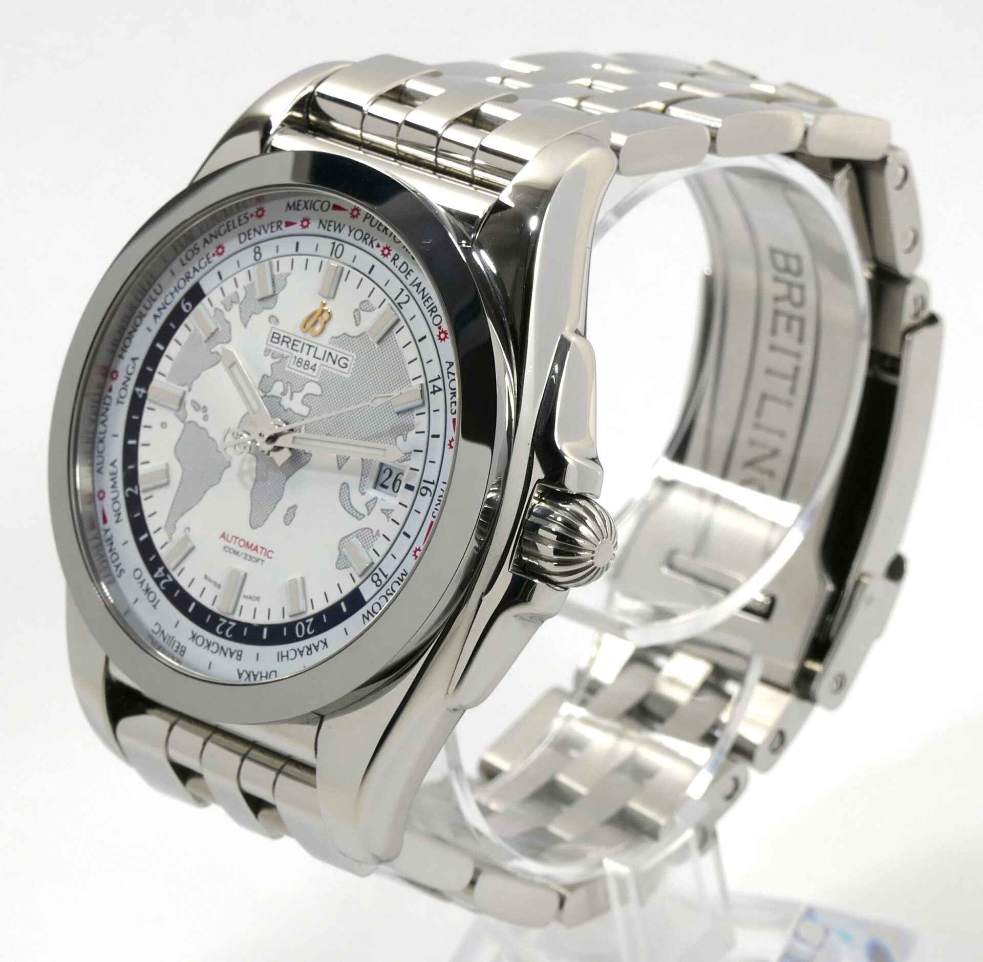 This Breitling watch is in excellent condition and comes with box, papers, spare links, and bezel protector. This watch is in stock and available to ship immediately!