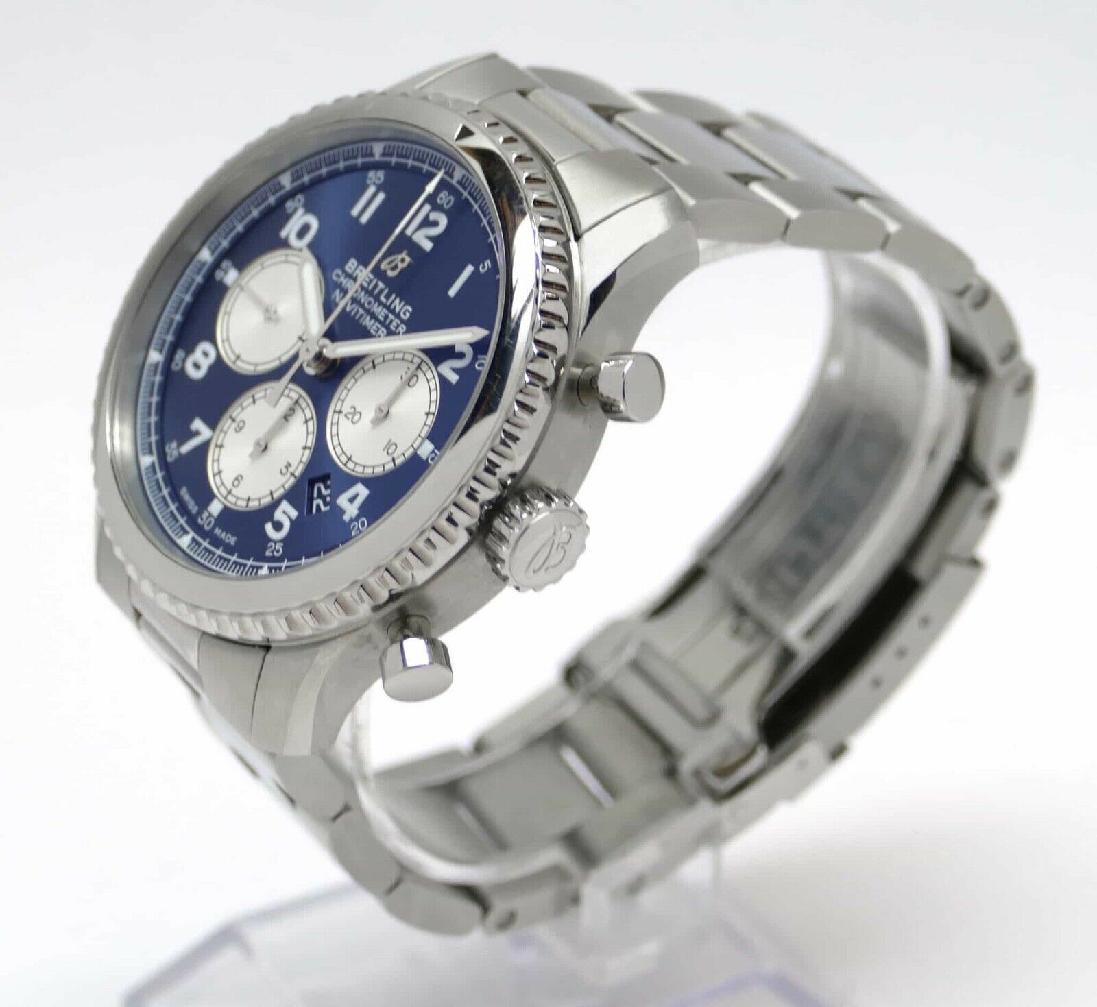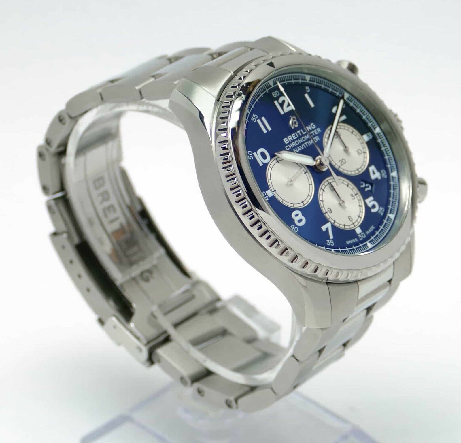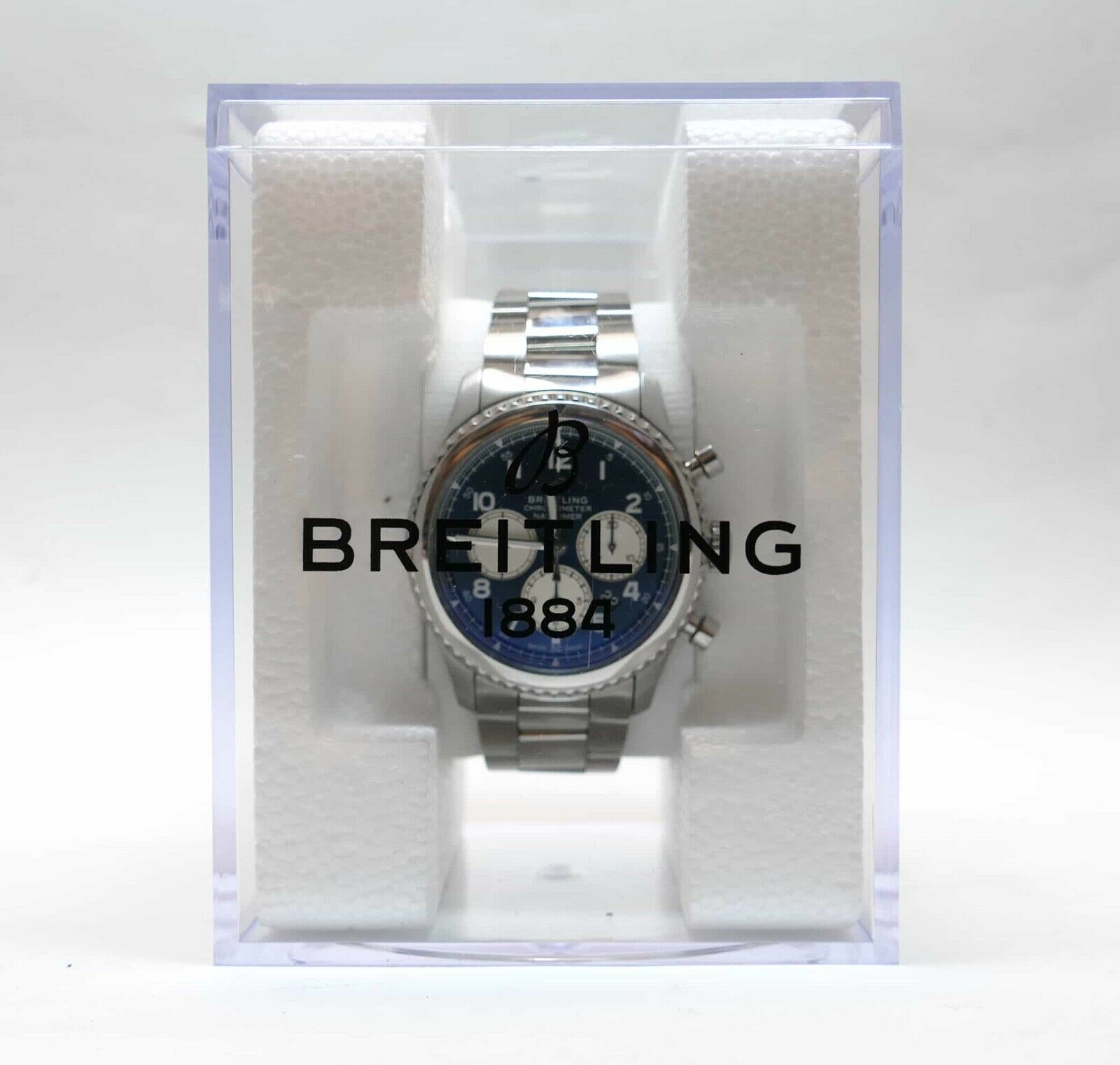 Read Morethis breitling watch is in excellent condition, and the bracelet will fit up to an 8.5 inch wrist. It does not include its original box and papers, however it will be shipped in the breitling hard shipping box as shown in the photos.