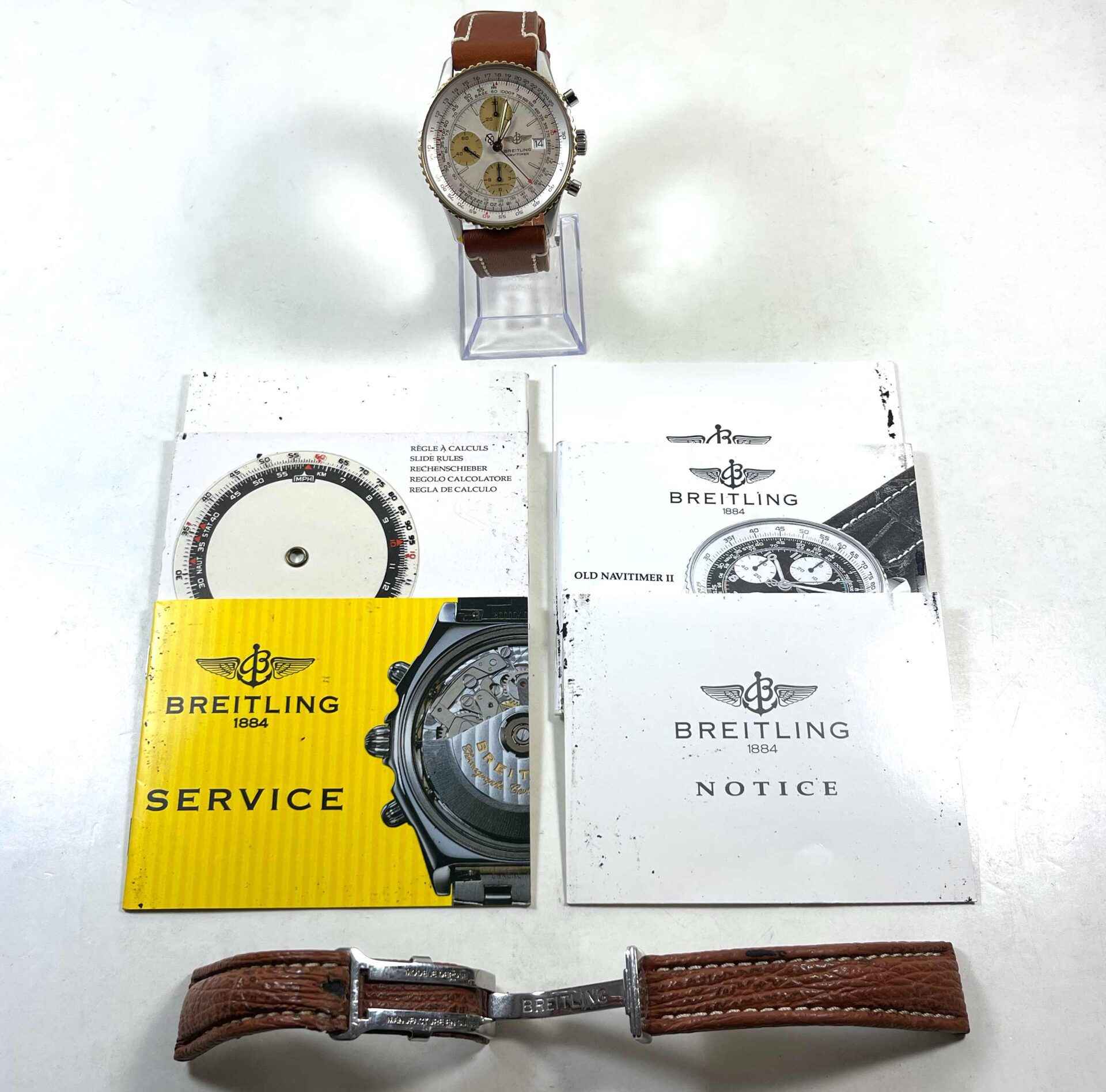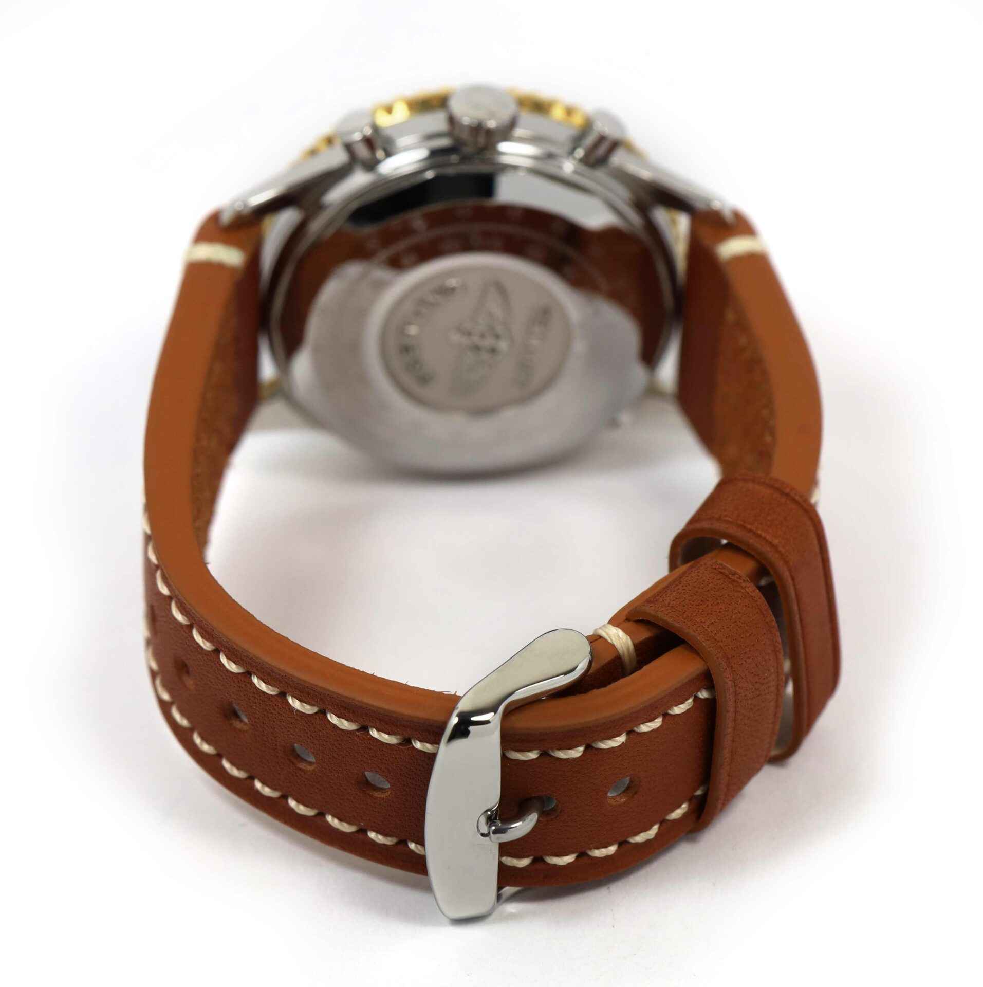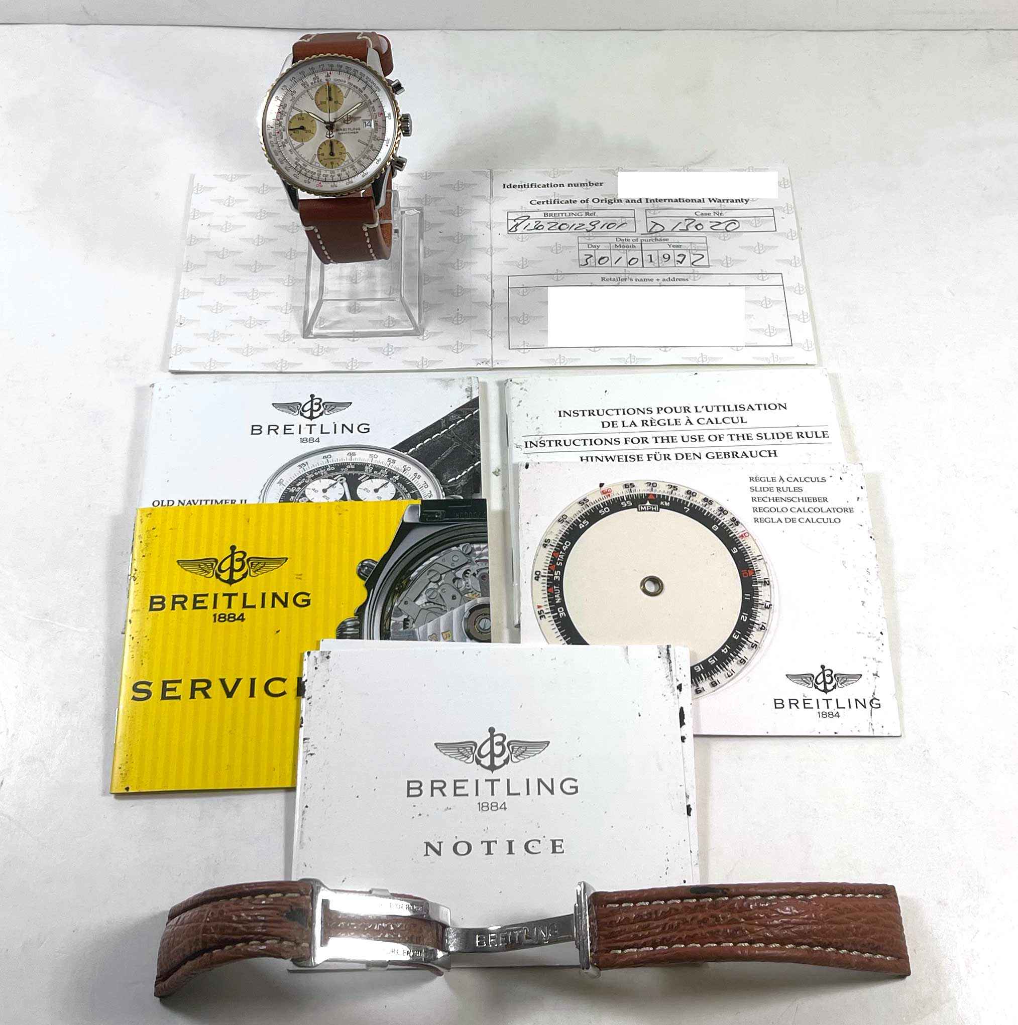 This Breitling is in excellent condition and comes with its booklets and original watch band only as shown in the pictures attached. The brown leather band currently on this watch is an aftermarket leather band. The orig...