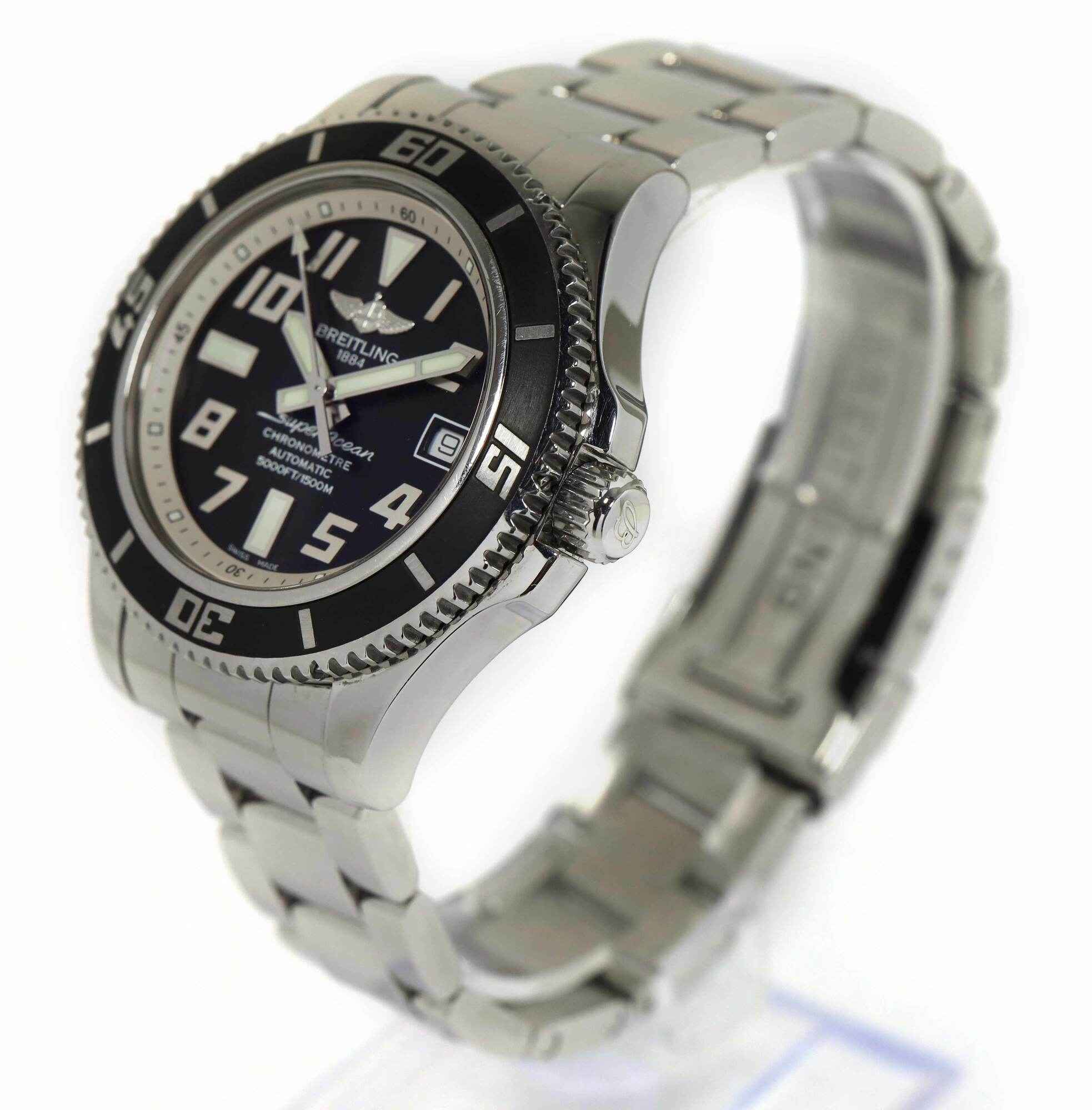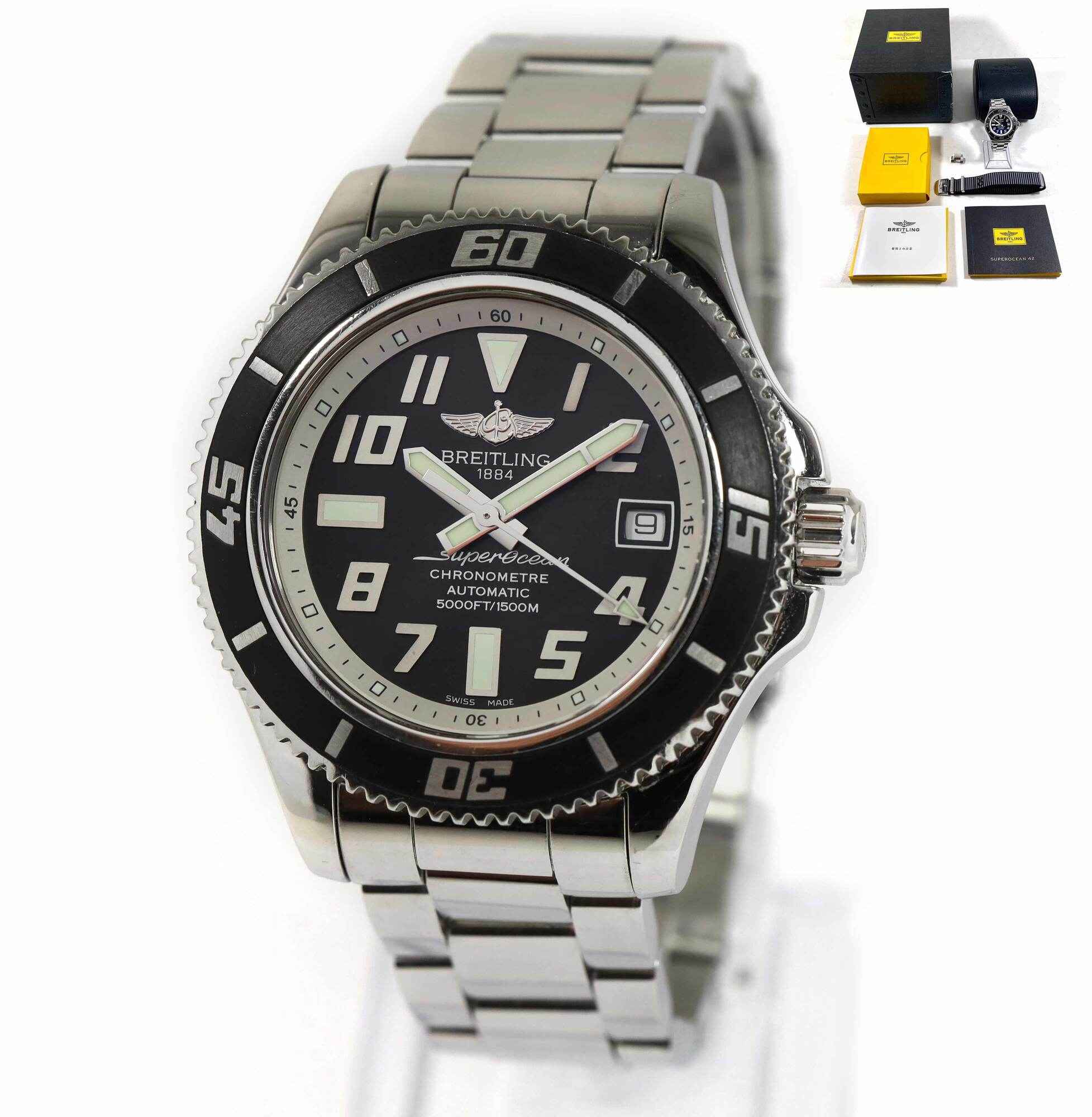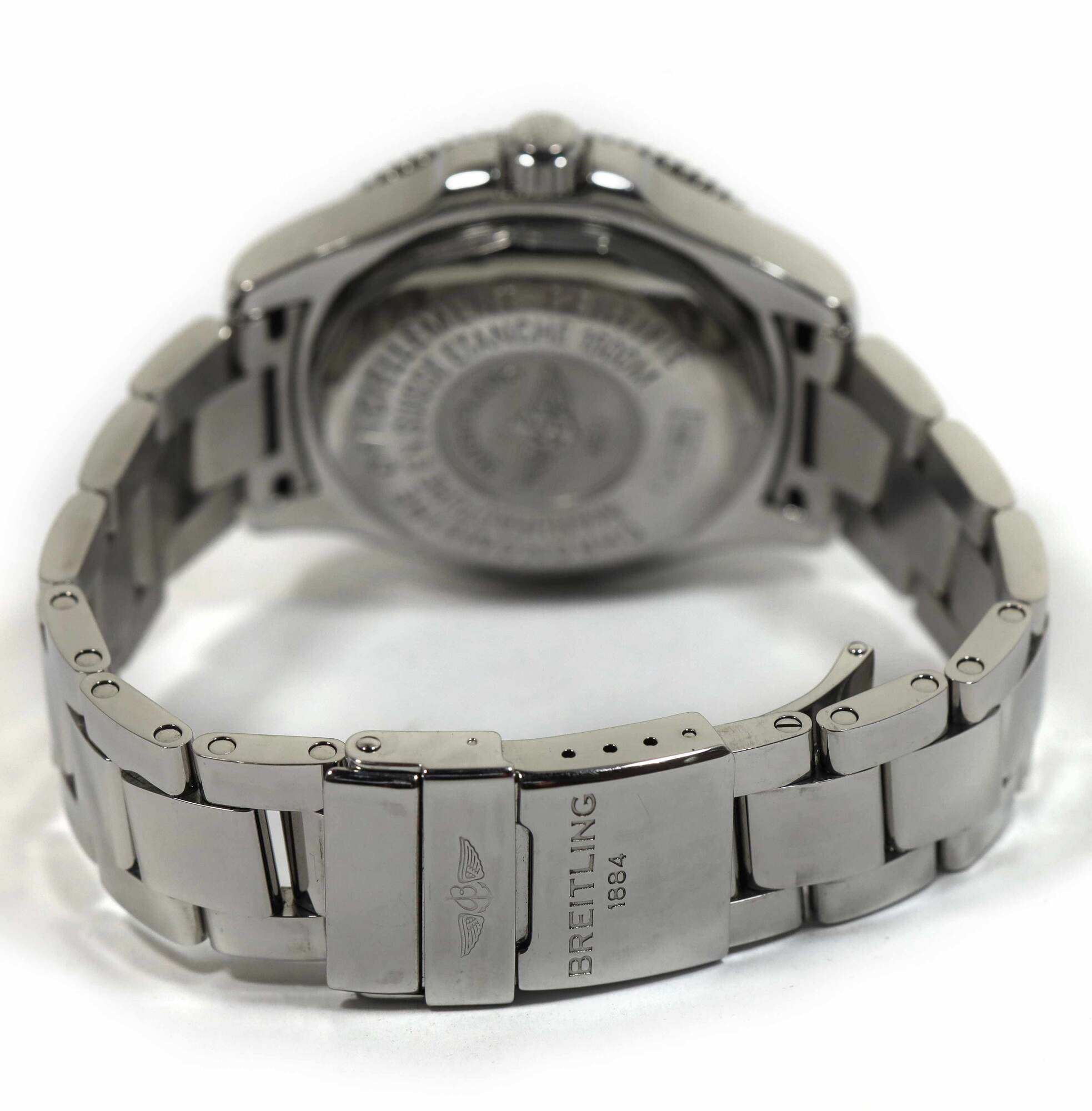 THIS BREITLING IS IN EXCELLENT CONDITION AND COMES WITH ITS BOX, BOOKLETS, ONE SPARE LINK, AND ONE ADDITIONAL BREITLING STRAP AS SHOWN IN THE PICTURES ATTACHED. THIS WATCH IS IN STOCK AND AVAILABLE TO SHIP IMMEDIATELY!
