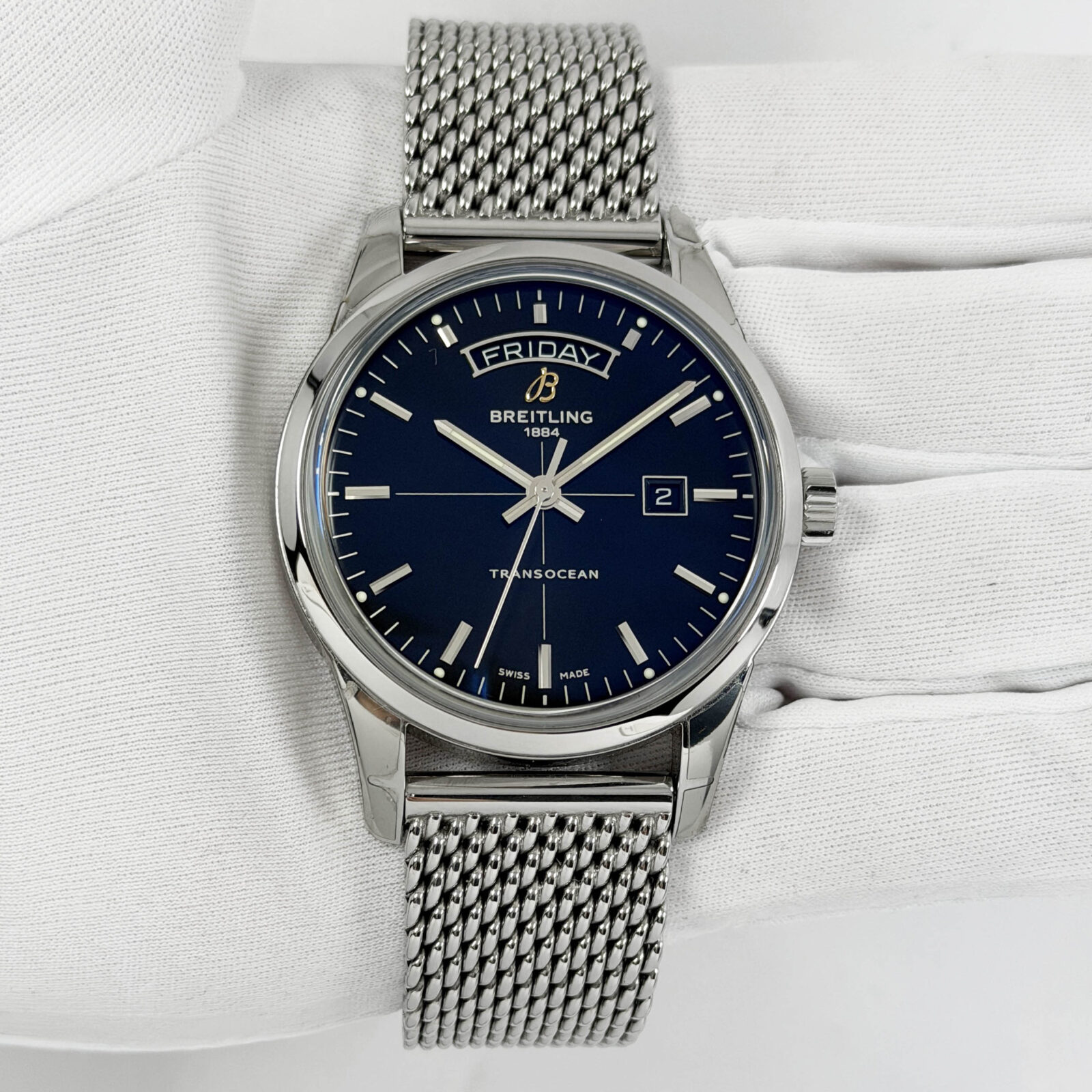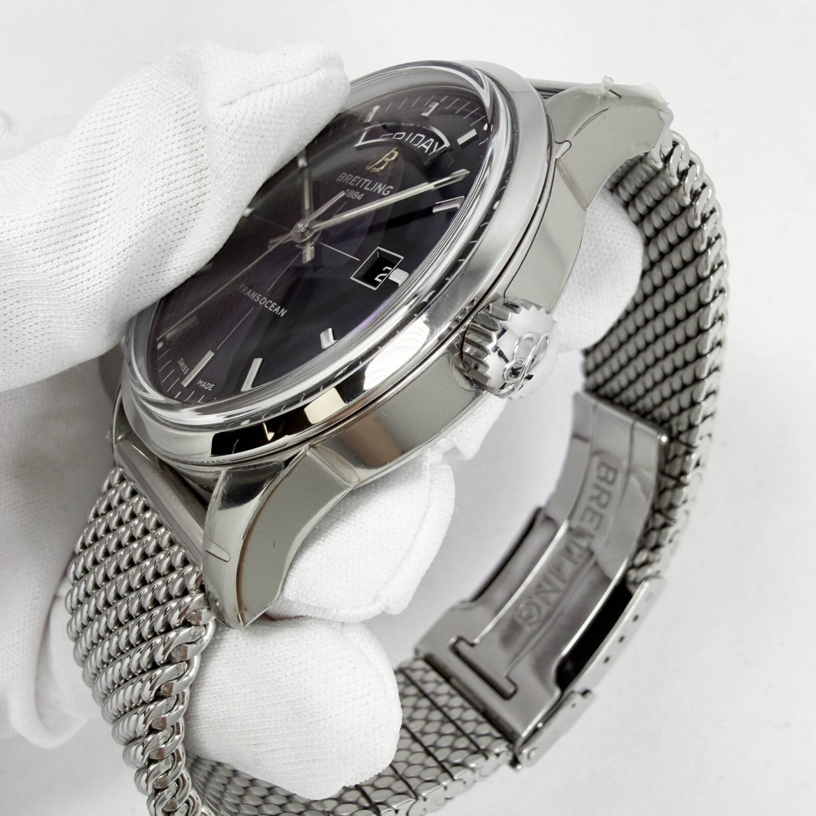 this breitling transocean day & date watch comes with its box, booklets, extra links, and warranty card dated december 10th, 2014. The photos shown are of the exact watch being sold and accurately represent its condition. This watch is in stock and ready to ship immediately!