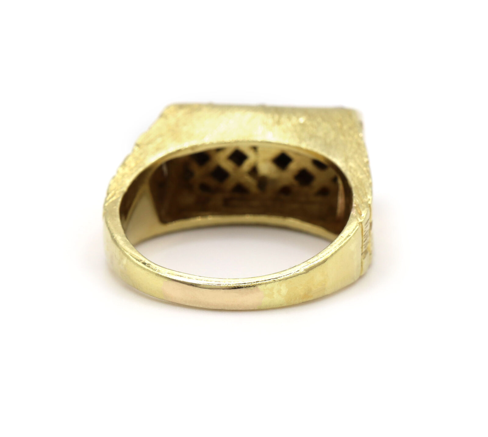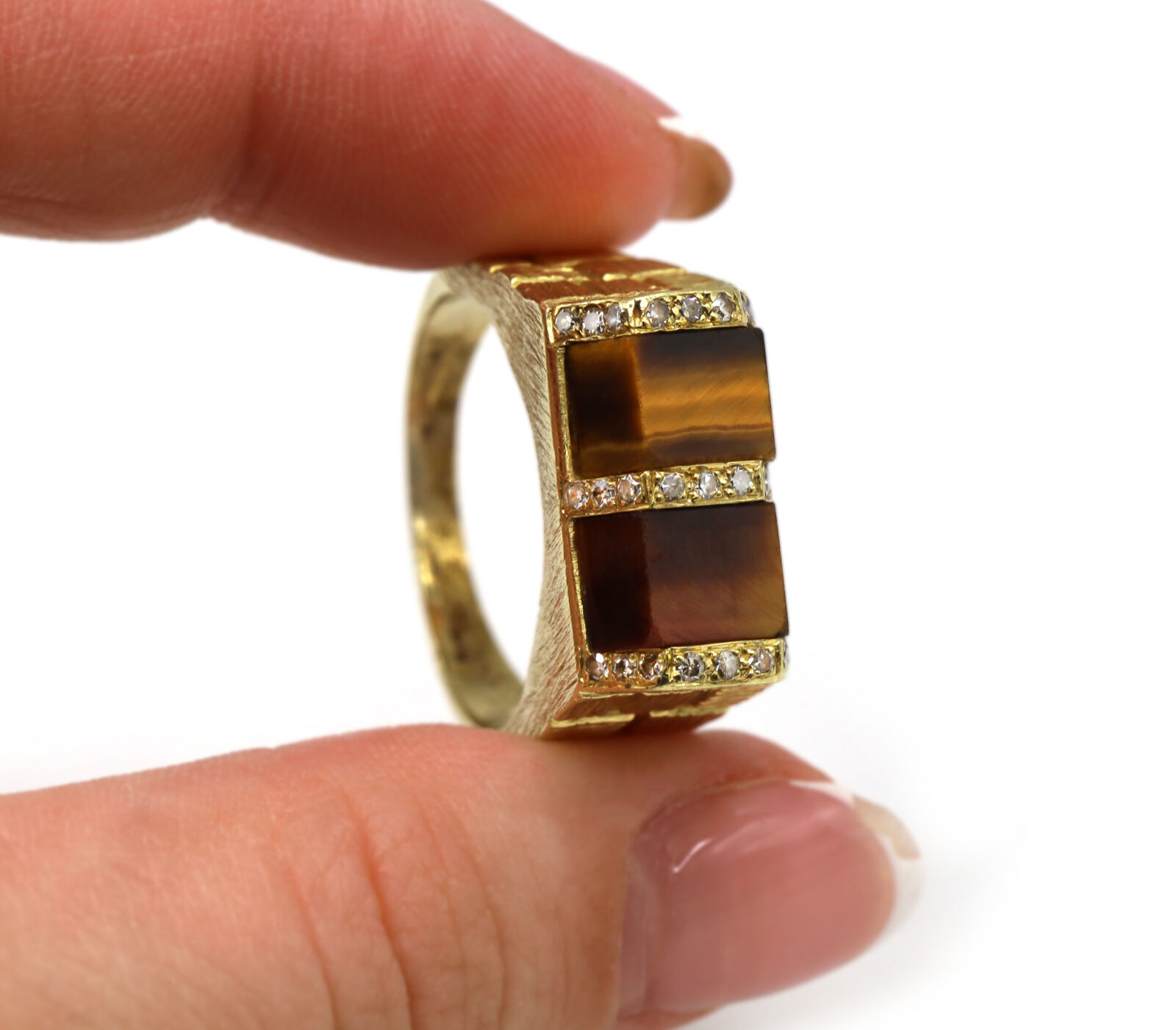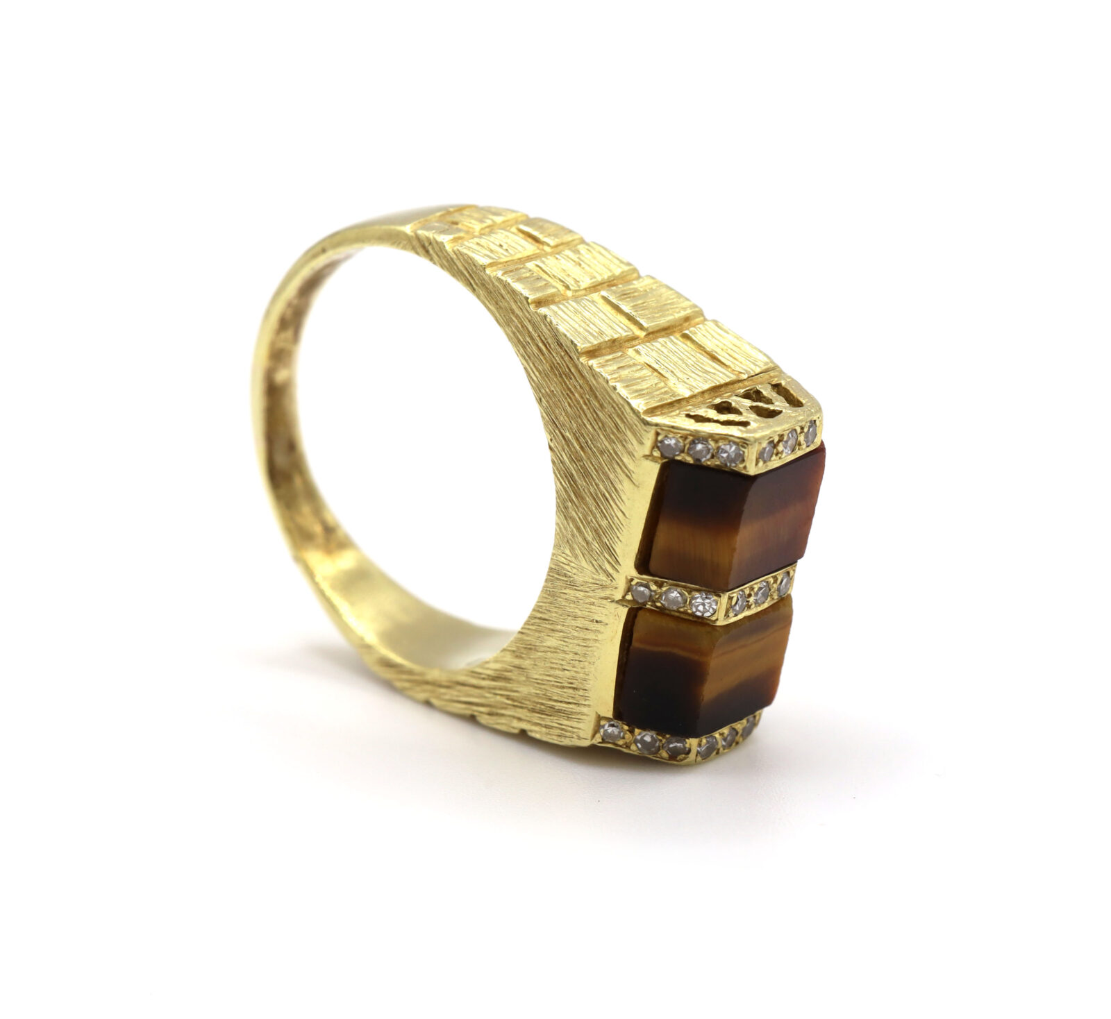 Brown Tigers Eye Diamond Brick 18K Yellow Gold Men’s Statement Ring