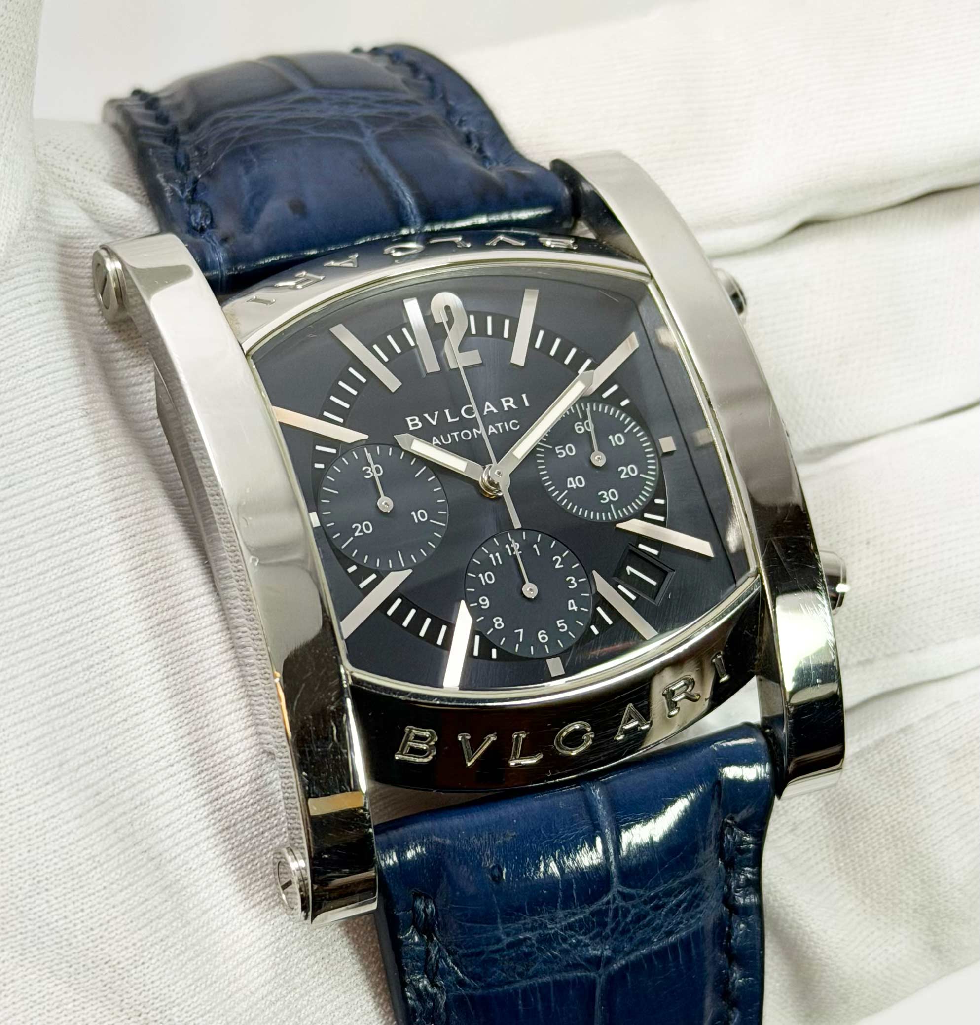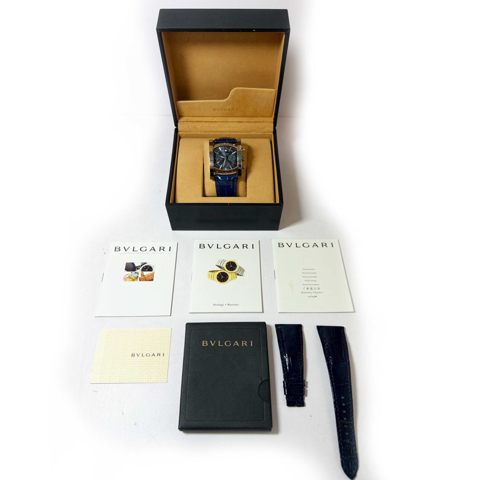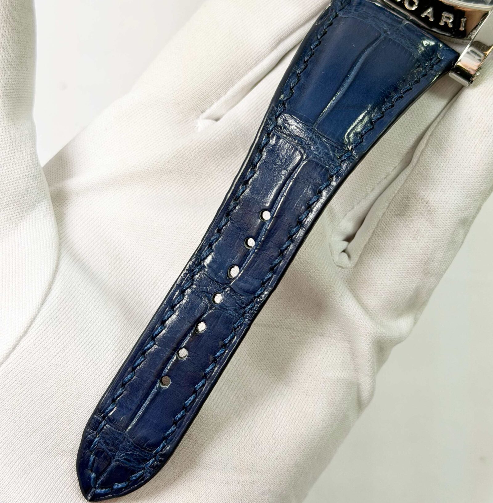 This Bulgari Assionma is in excellent condition showing light signs of surface wear consistent with preowned watches. This watch comes with its box, booklets, and one additional blue leather strap as shown in the pictures attached. This watch is in stock an...