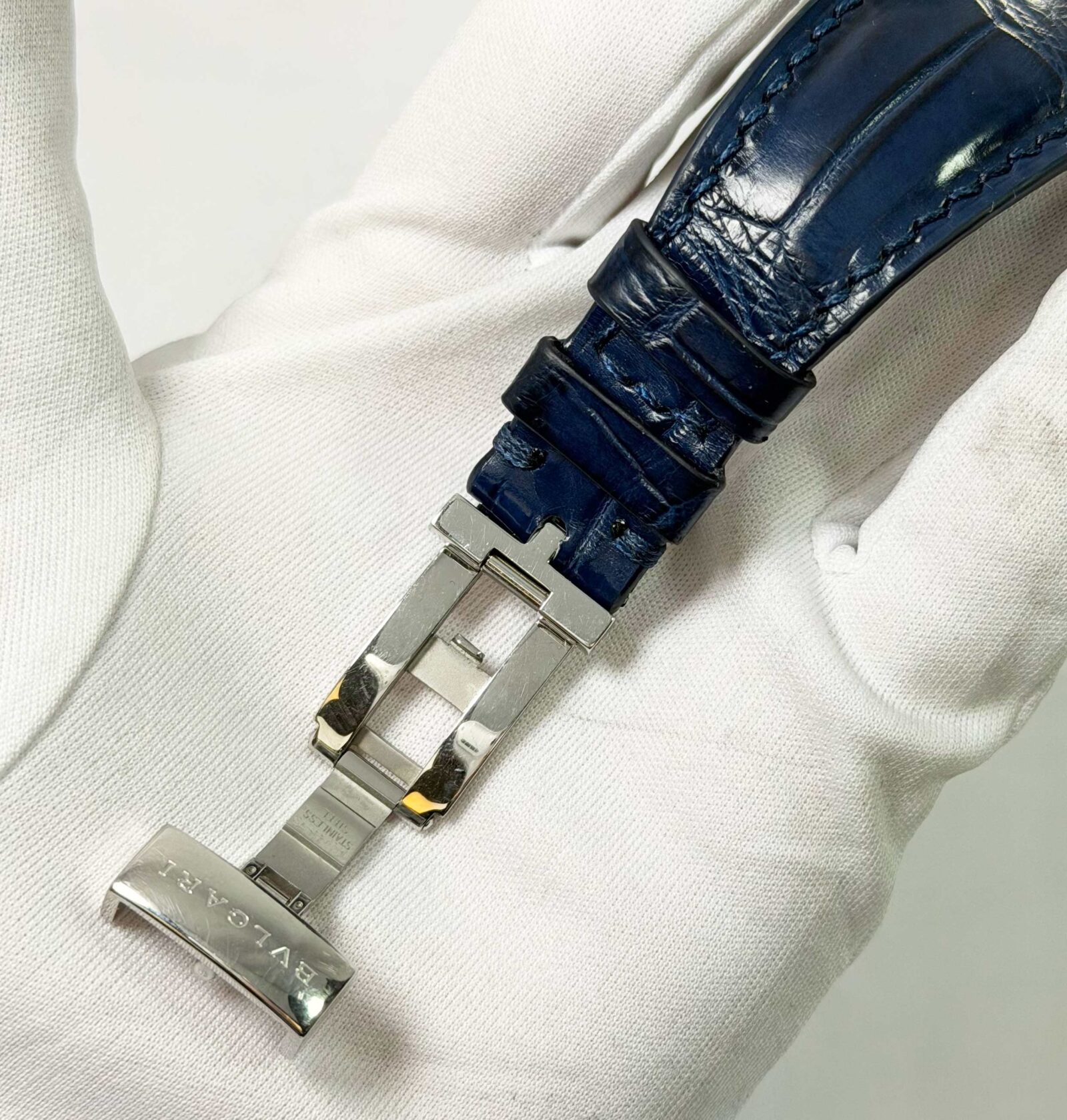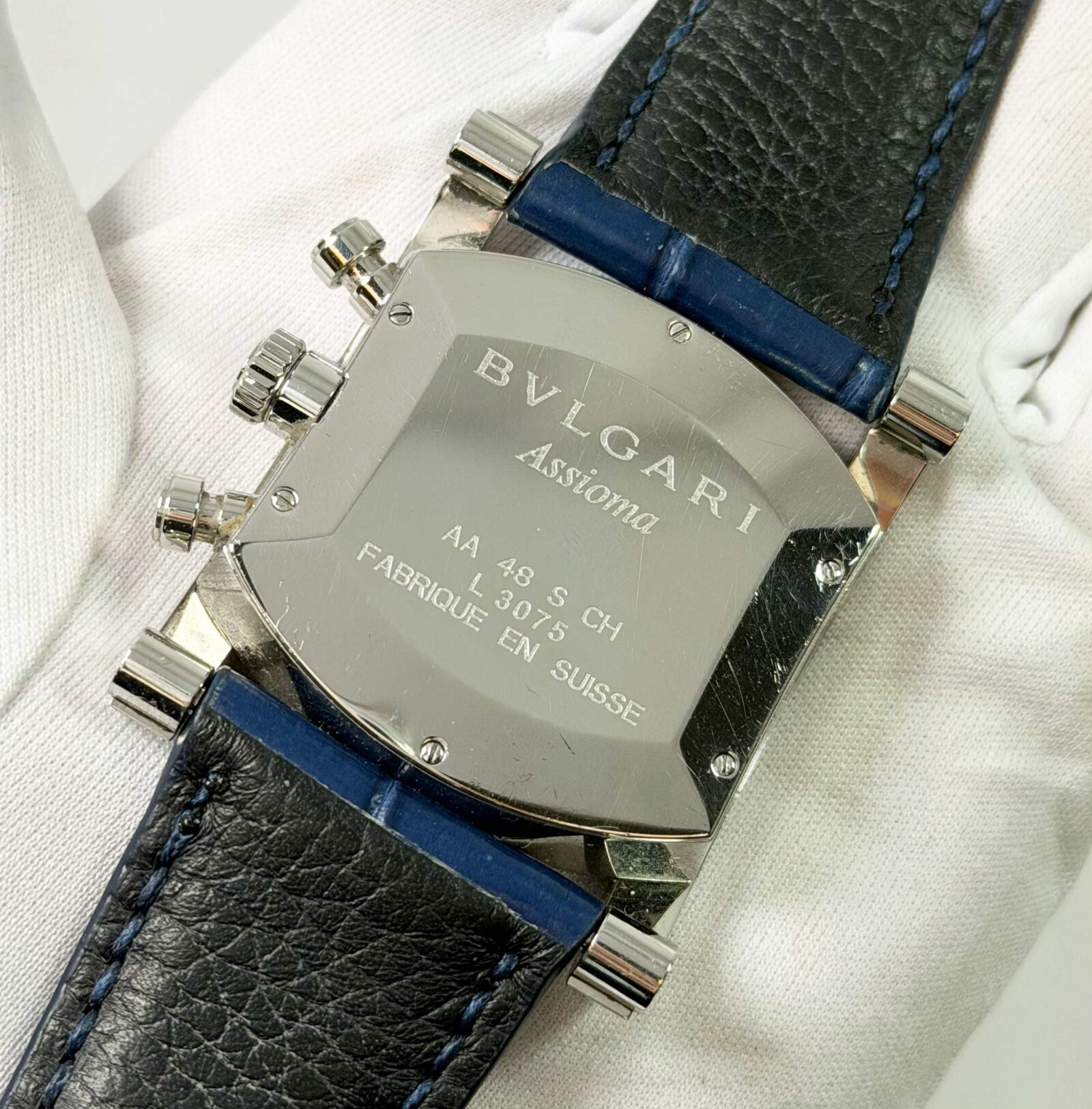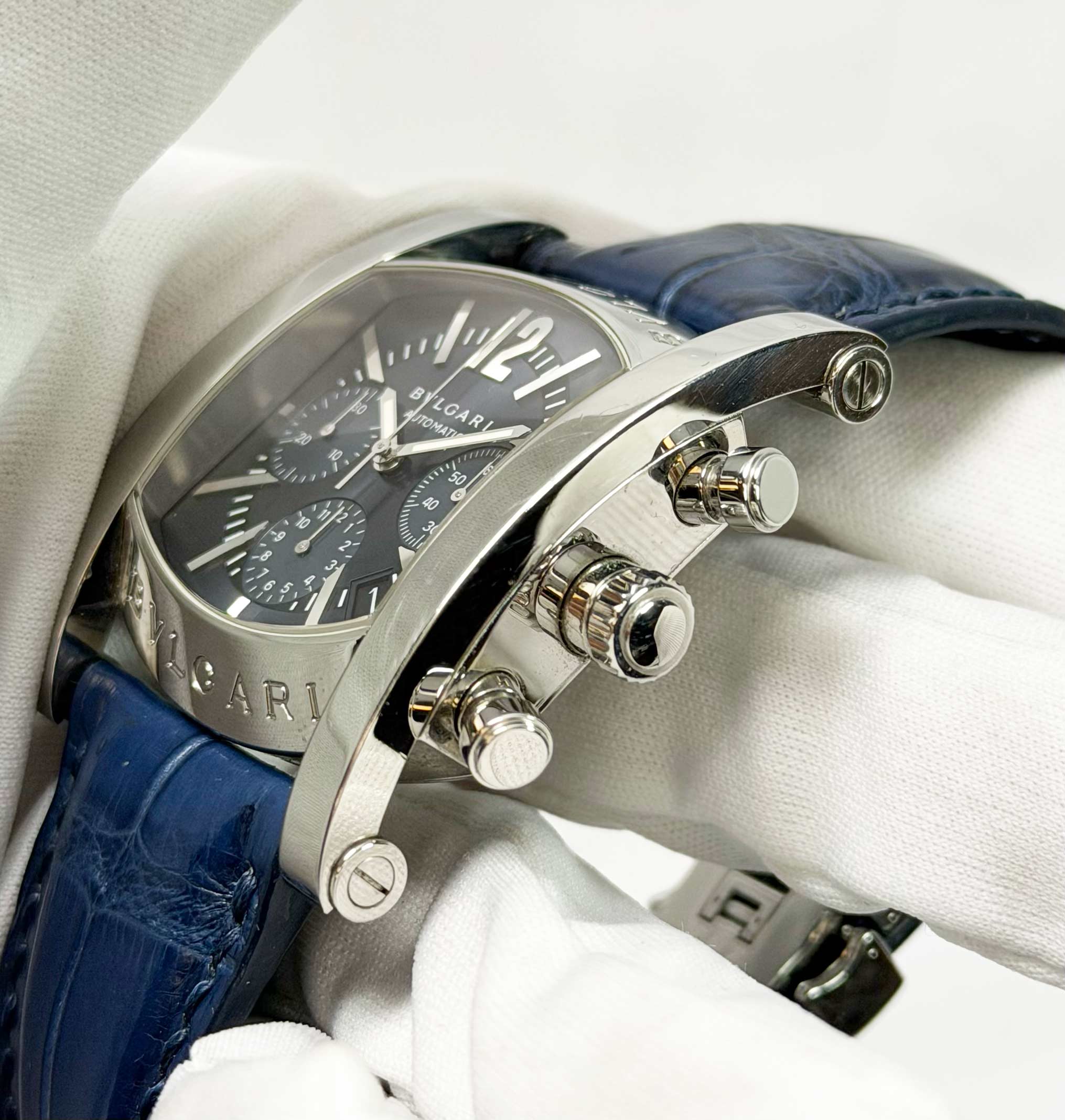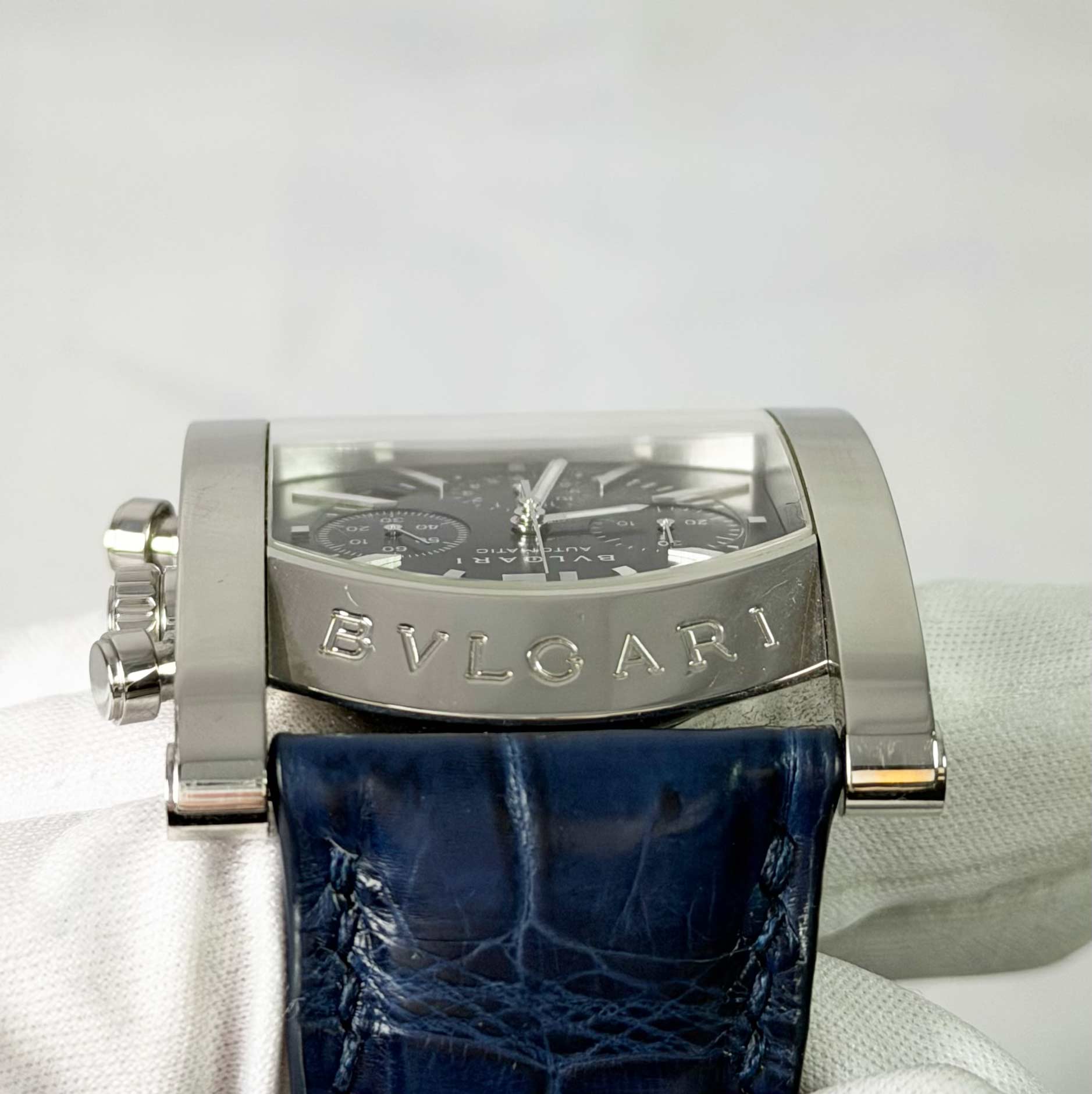This Bulgari Assionma is in excellent condition showing light signs of surface wear consistent with preowned watches. This watch comes with its box, booklets, and one additional blue leather strap as shown in the pictures attached. This watch is in stock an...