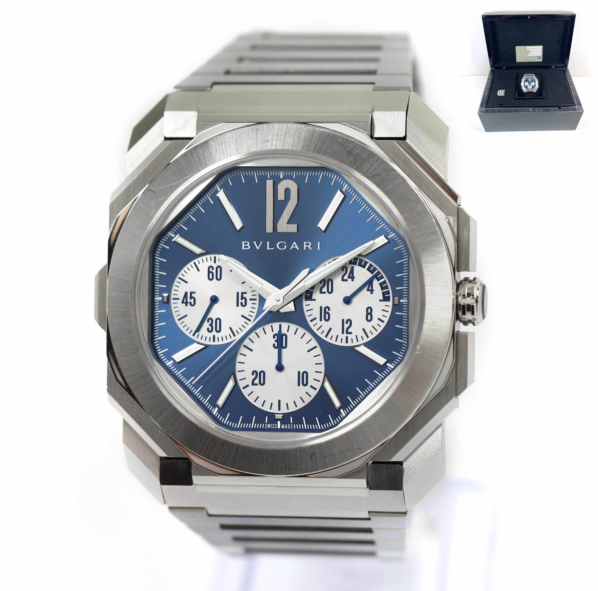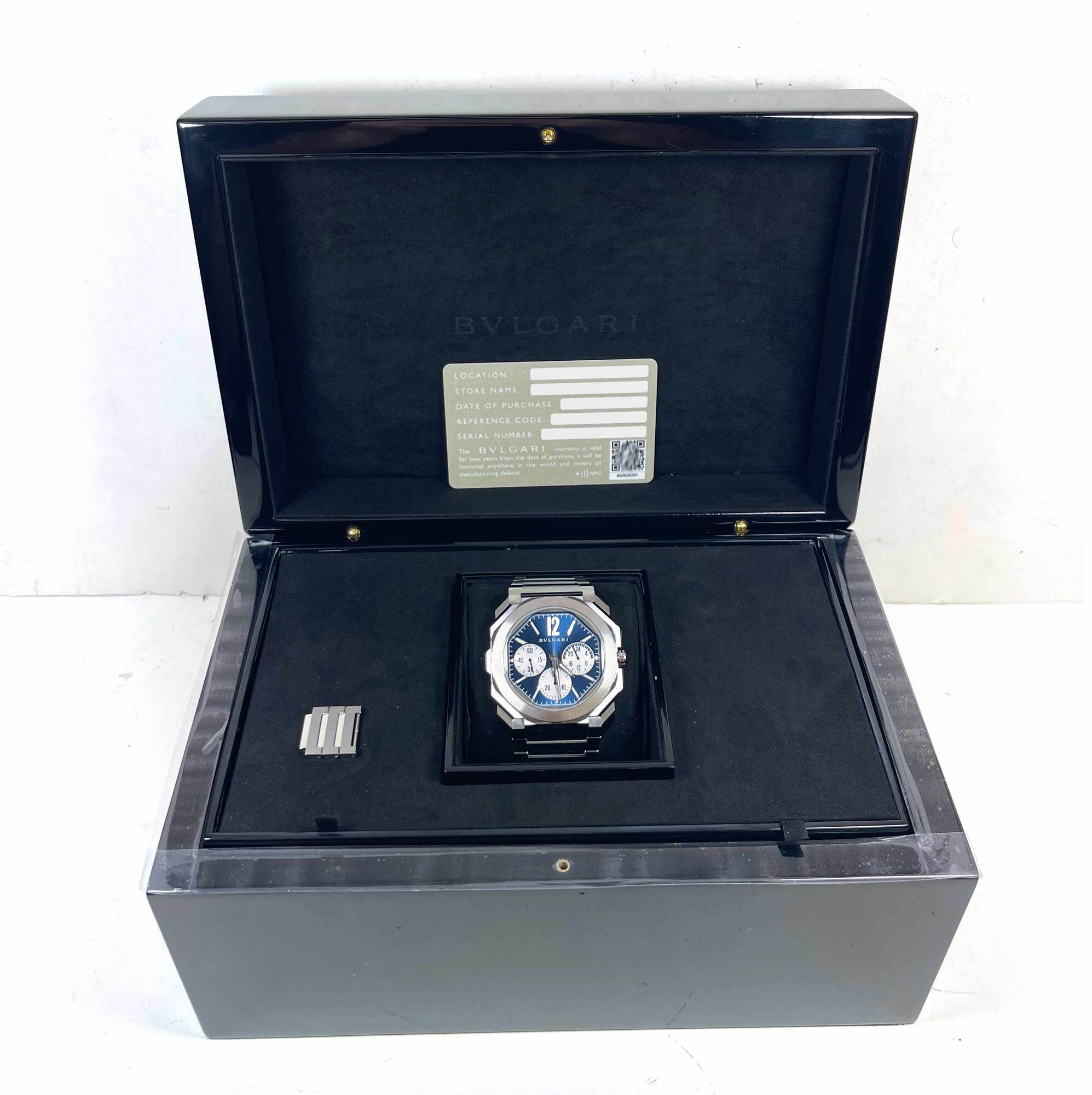 Bulgari Octo Finissimo Chronograph 103467 43MM Blue Dial Steel Box Papers