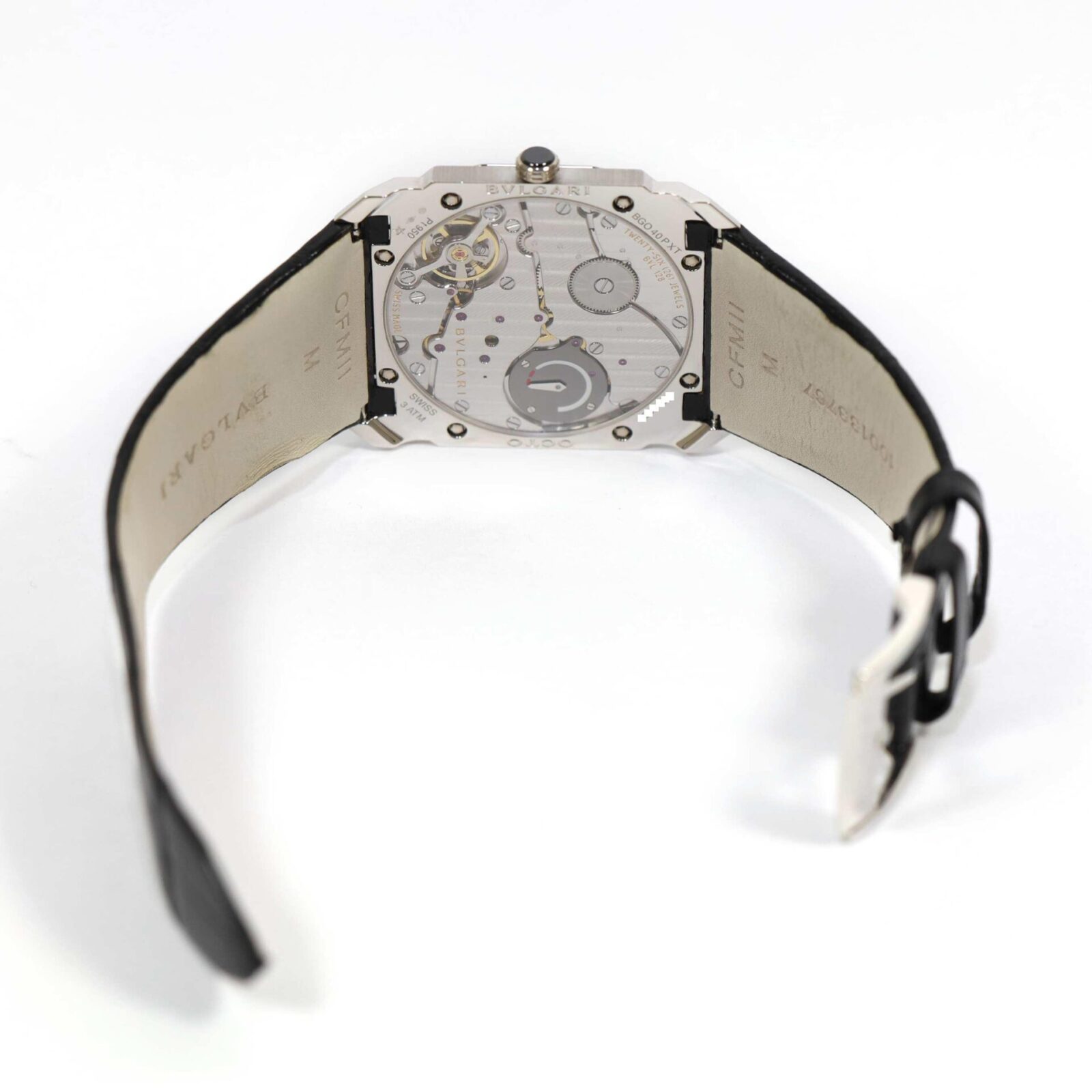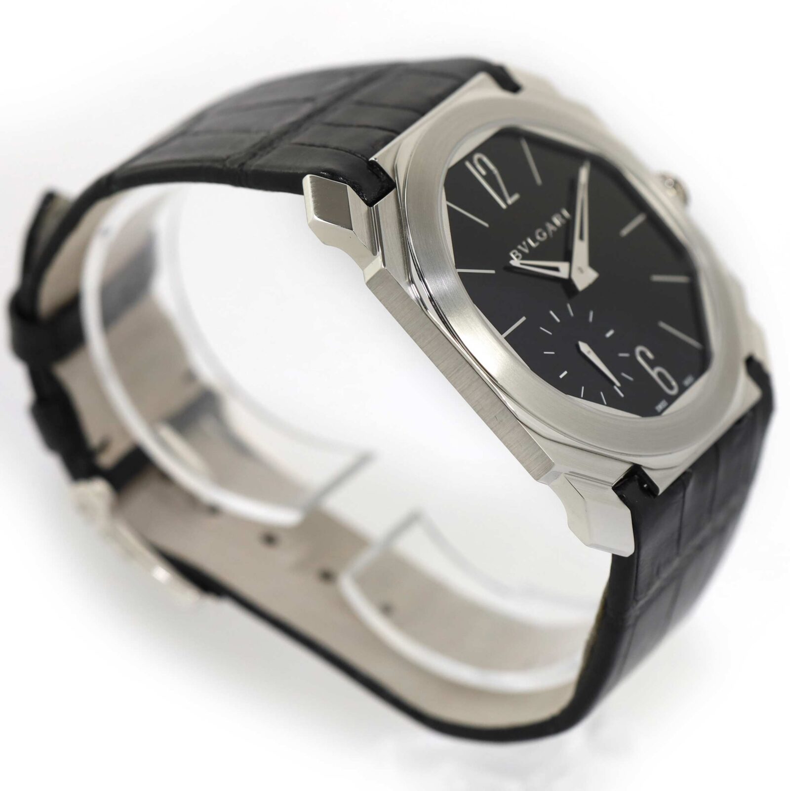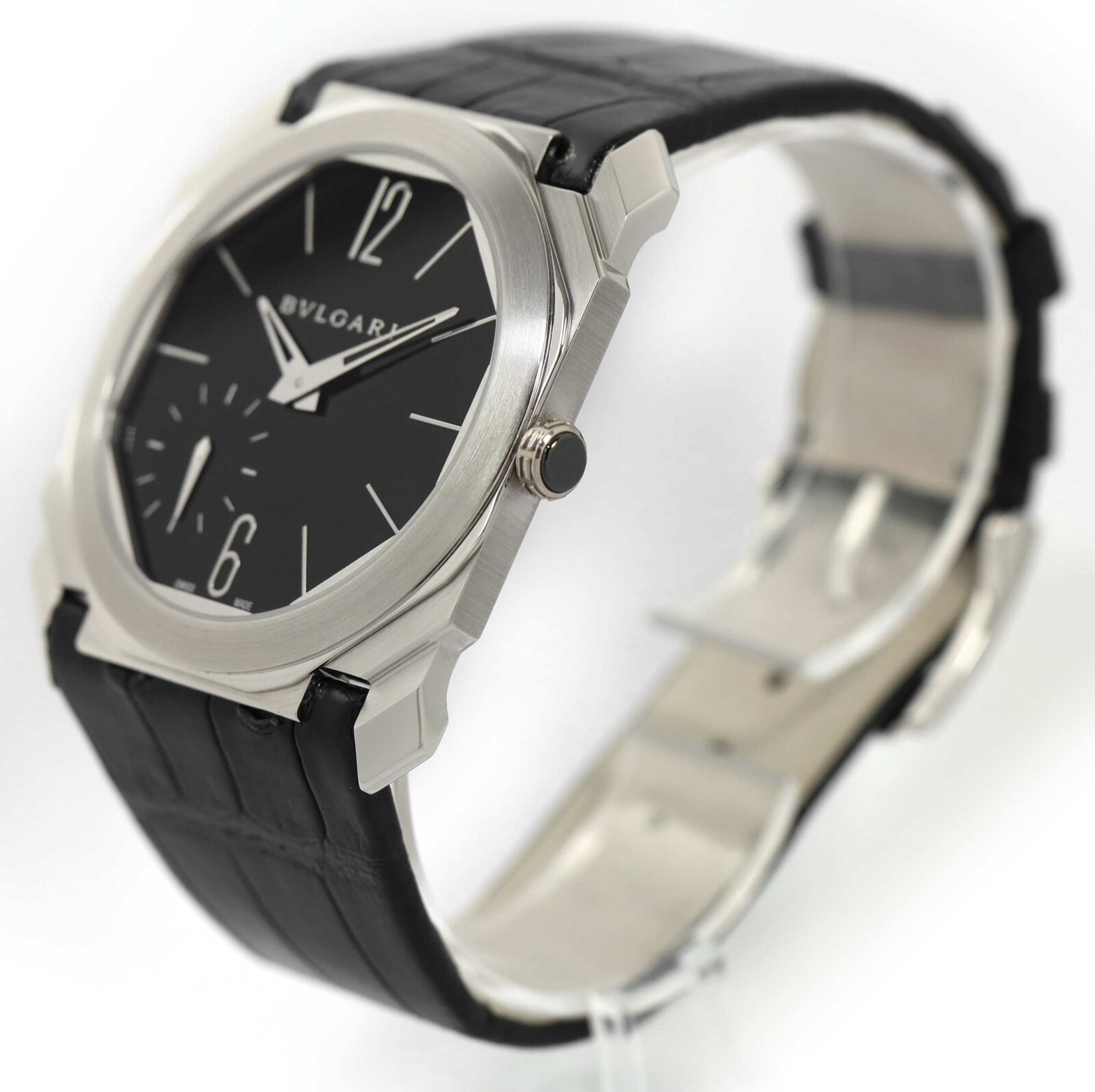 Read Morethis bulgari is in excellent condition and comes with it box and warranty card as shown in the pictures attached. This watch features a 40mm platinum case that surrounds a black dial on a black leather bracelet. This watch is in stock and available to ship immediately!