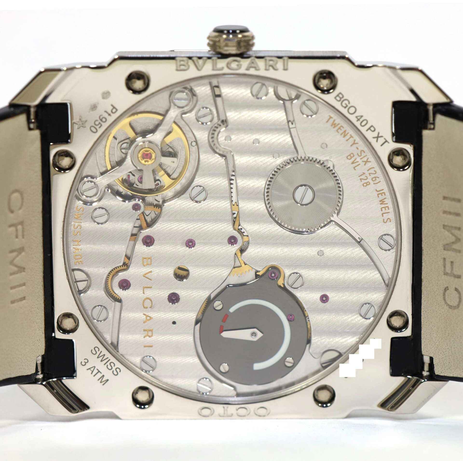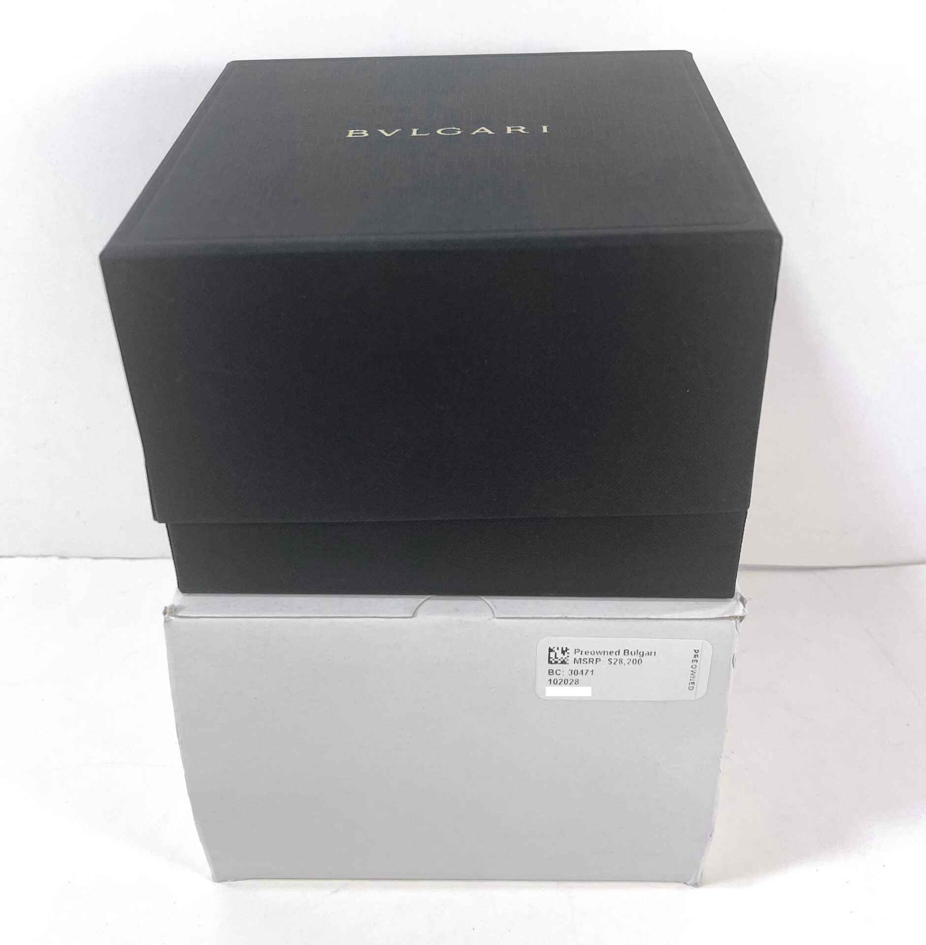 This Bulgari is in excellent condition and comes with it box and warranty card as shown in the pictures attached. This watch features a 40mm platinum case that surrounds a black dial on a black leather bracelet. This watc...