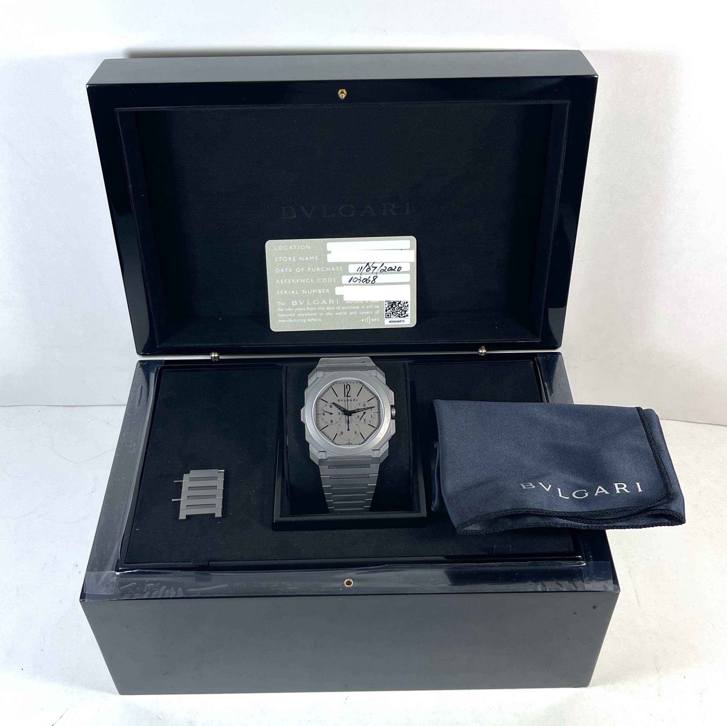 Read Morethis bulgari is in excellent condition and comes with its box, spare link, microfiber cloth, and warranty card dated november 7th, 2020. This watch features a 42mm titanium case surrounding a titanium dial and comes on a sandblasted bracelet as shown in the photos attached. This watch is in stock and available to ship immediately!