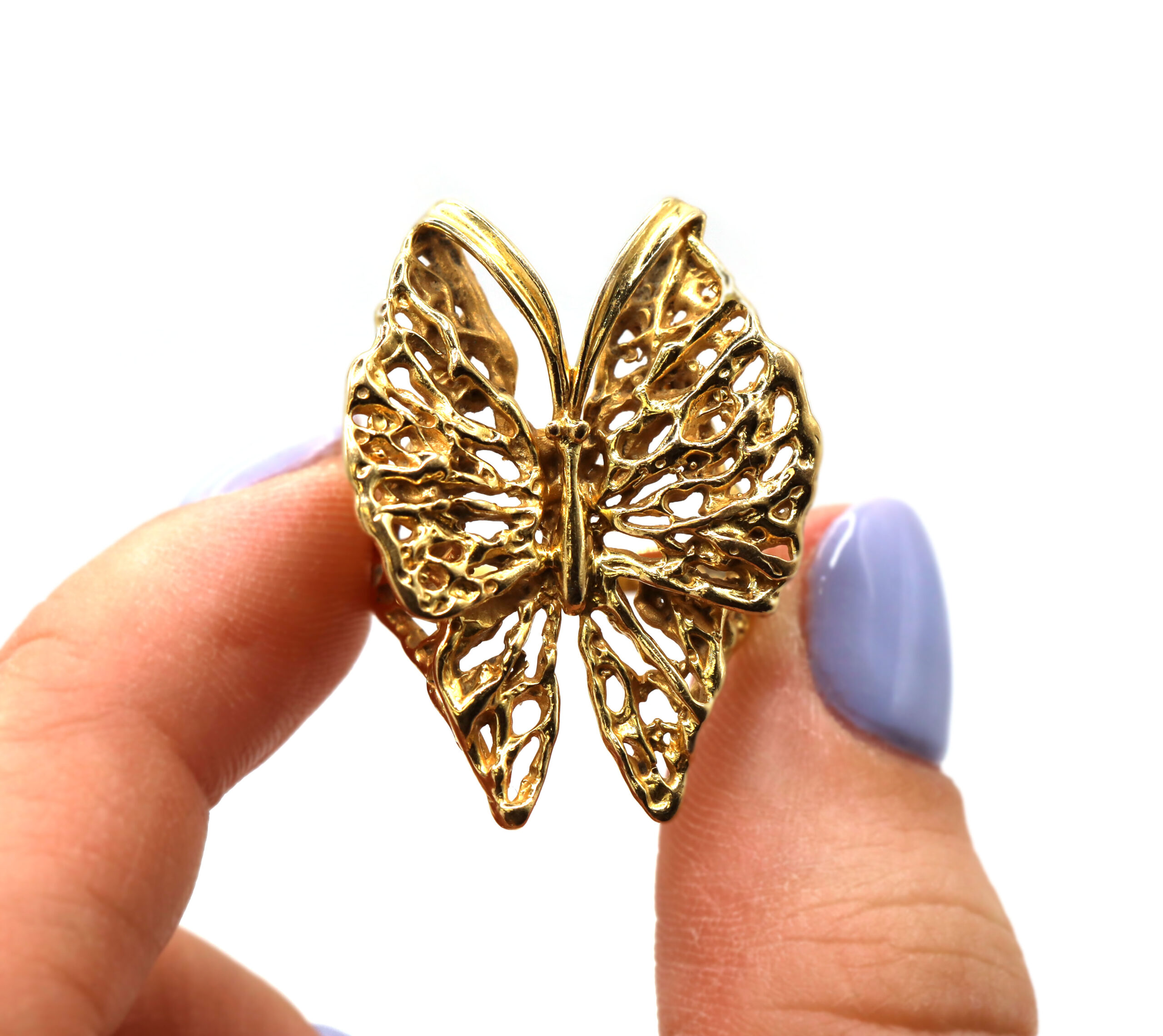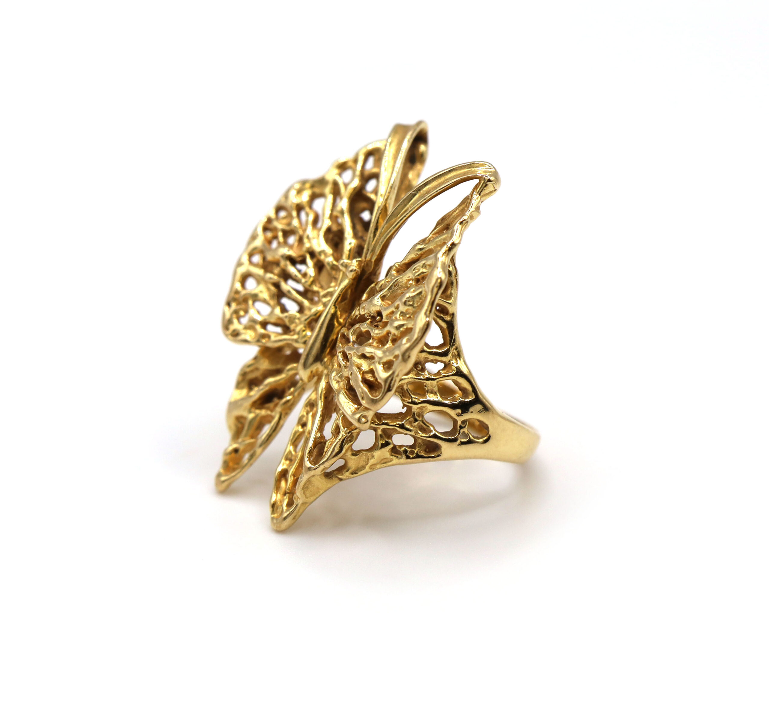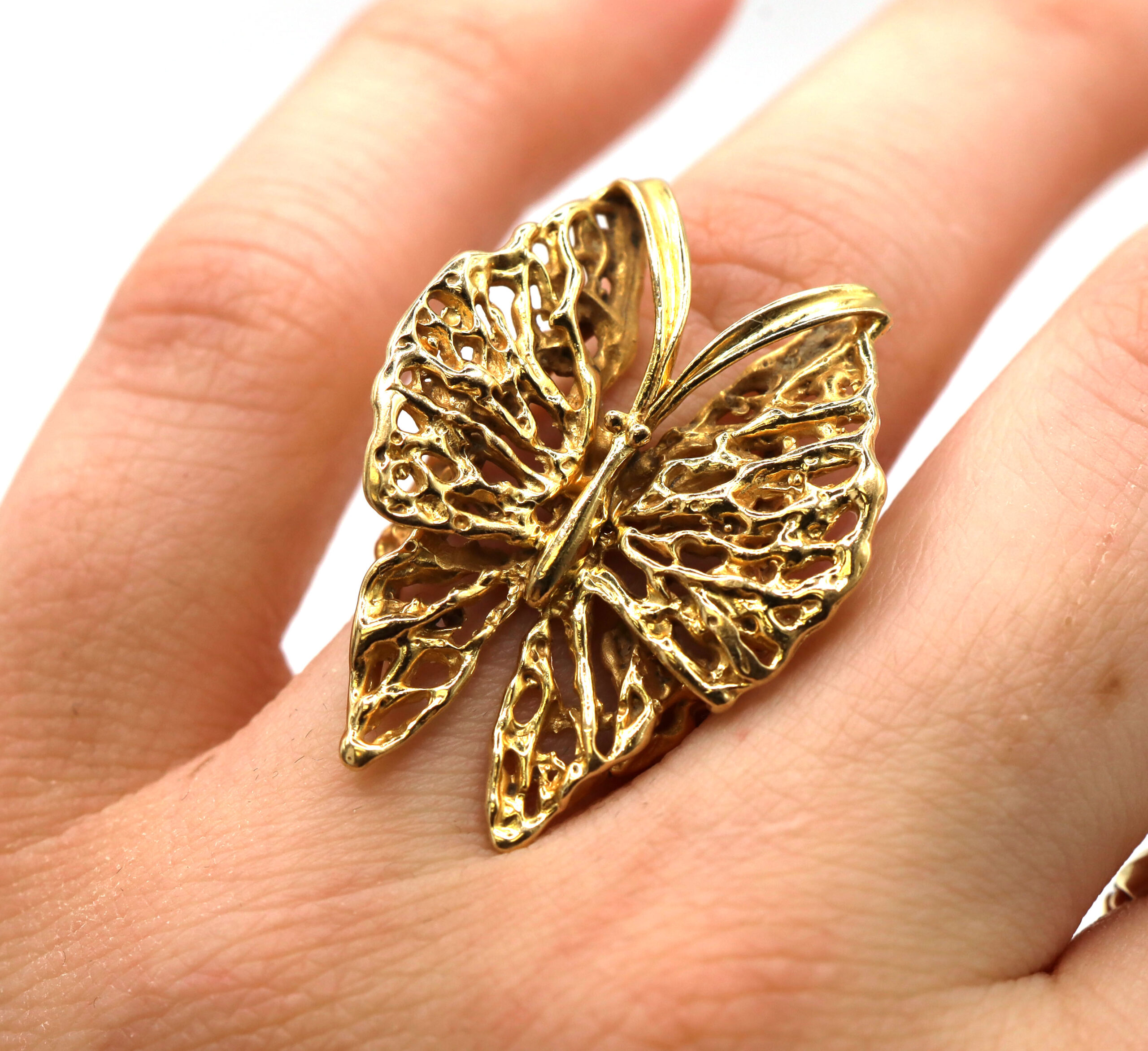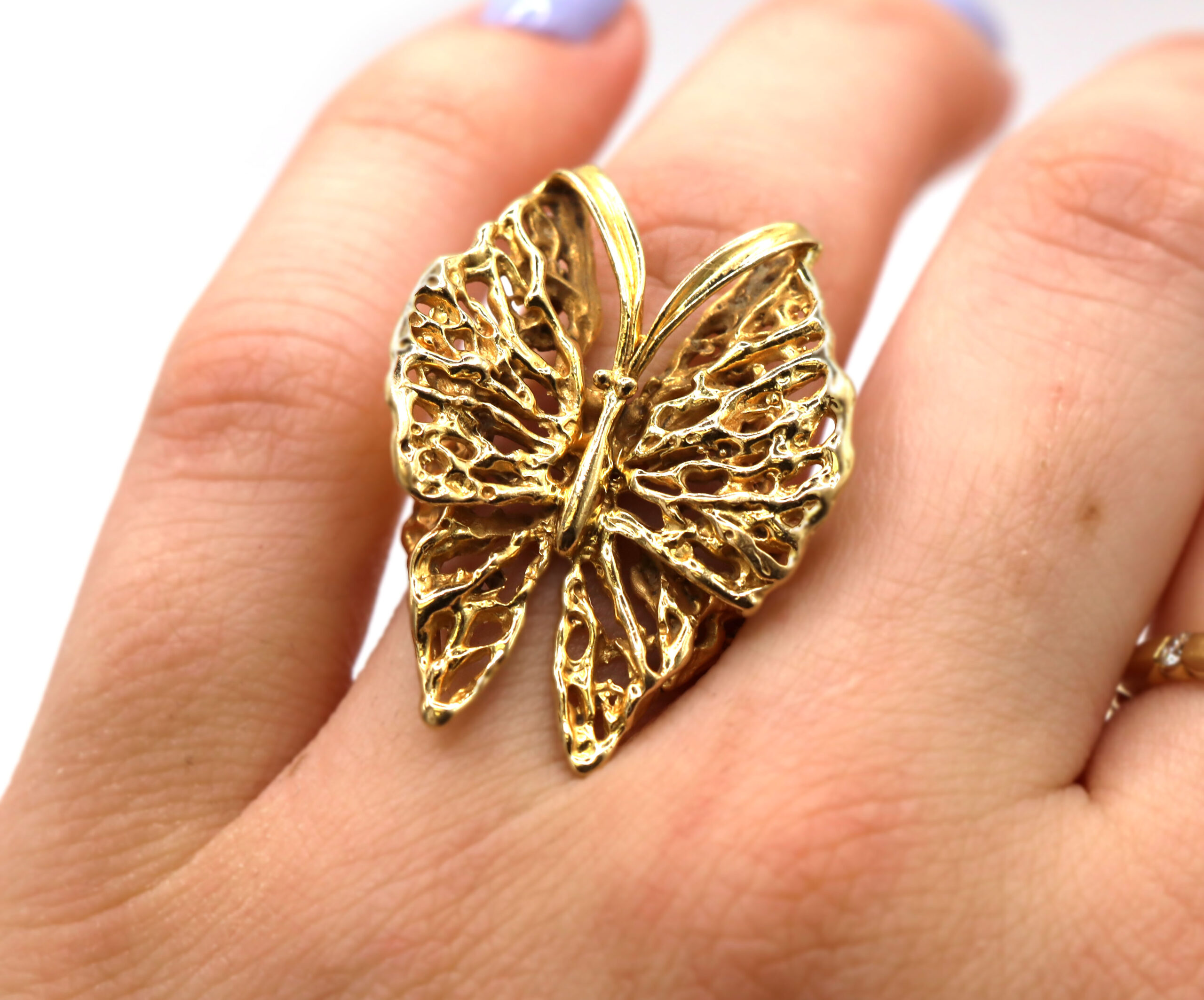 Butterfly Detailed Chunky Solid 18K Yellow Gold Statement Ring