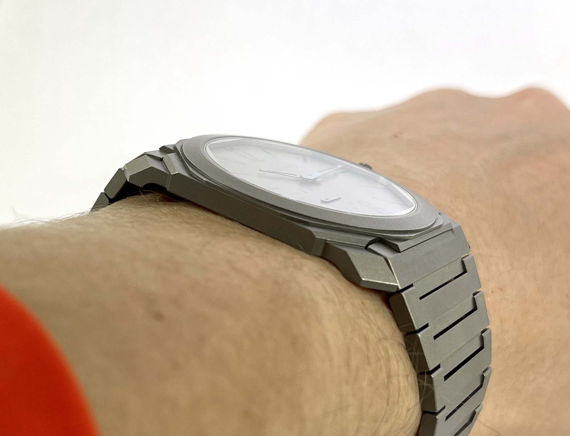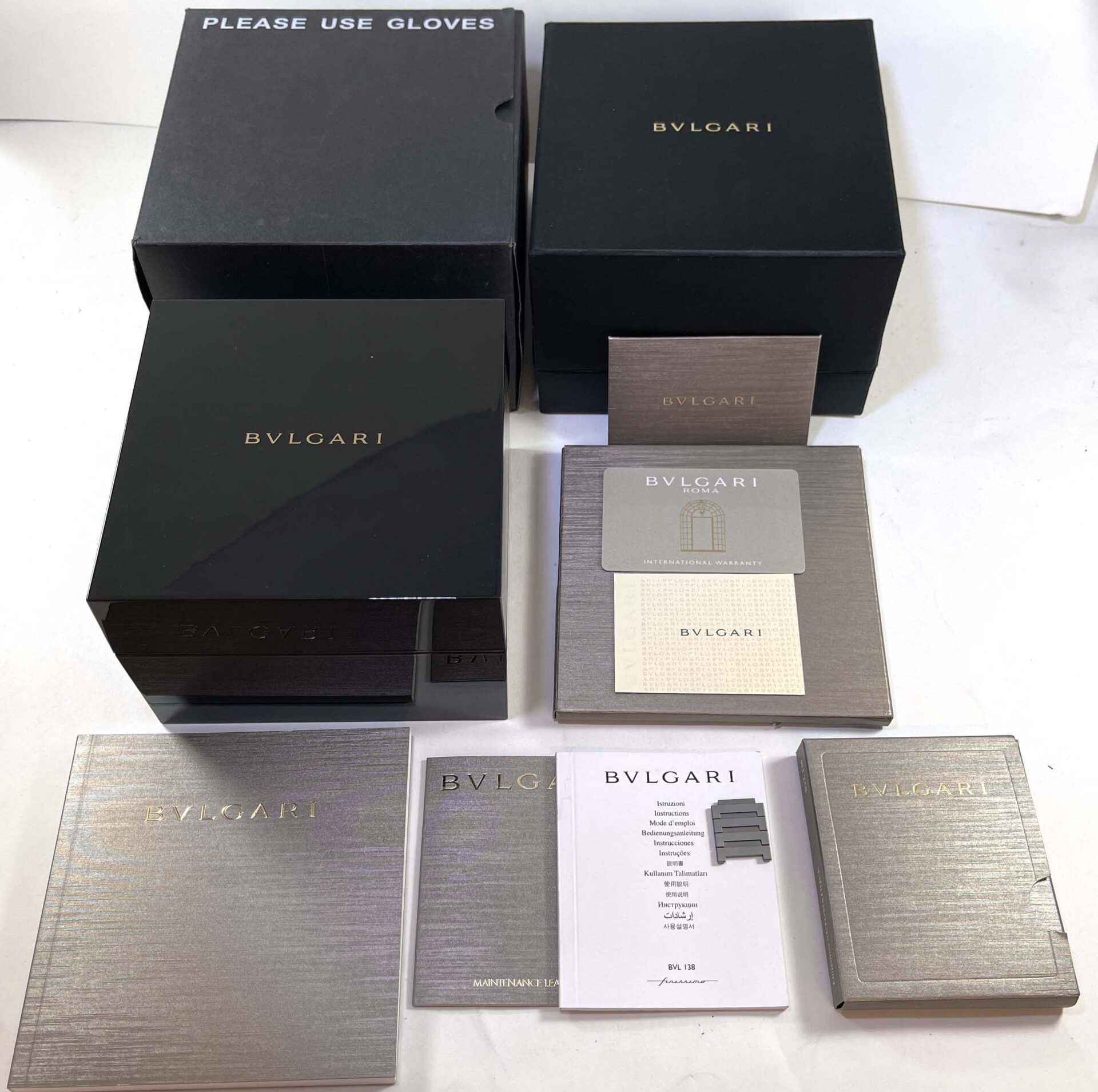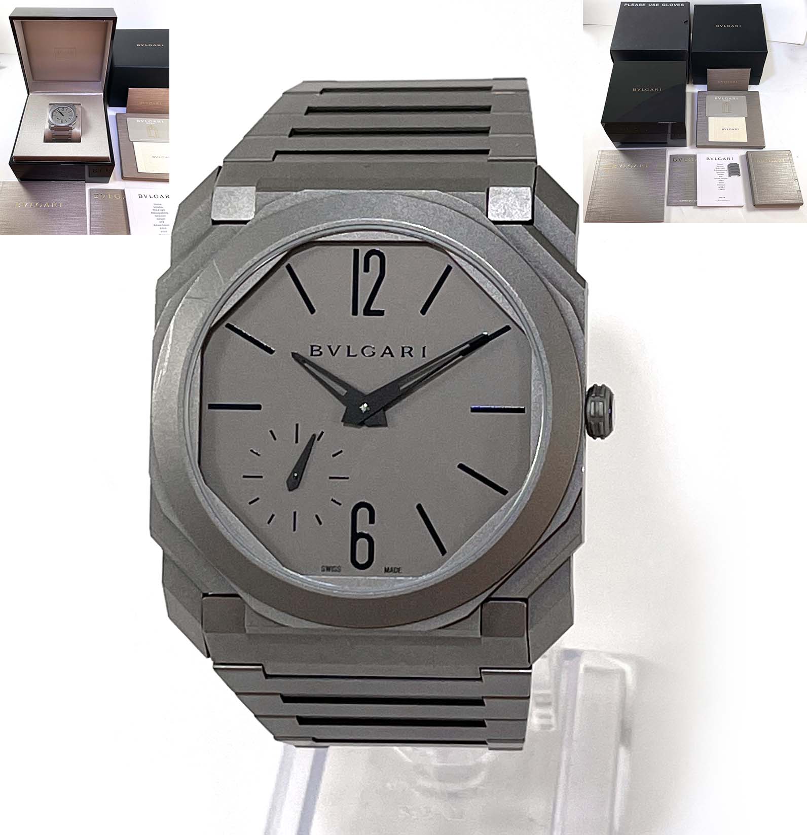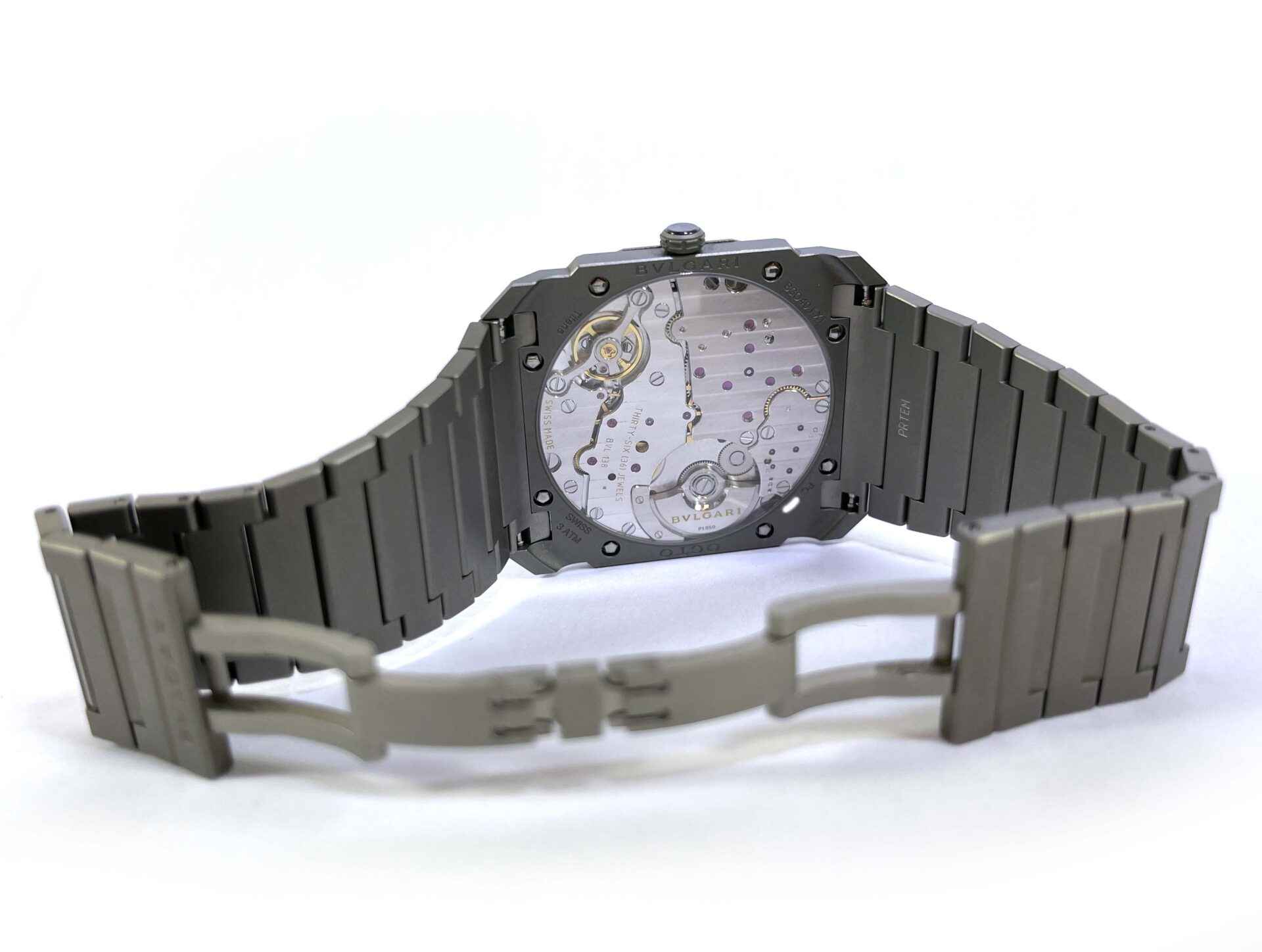 Read Morethis bvlgari watch is in excellent condition comes with its original box and papers. This watch is truly stunning in person, it is amazingly thin and light, it does not feel as if its on your wrist at all. It features a beautiful display back automatic movement, with a solid platinum micro rotor. There is some visible wear on the bezel shown in the photos, around 10pm, but it is not noticeable unless specifically looking for it, the photos appear as it will look in person.