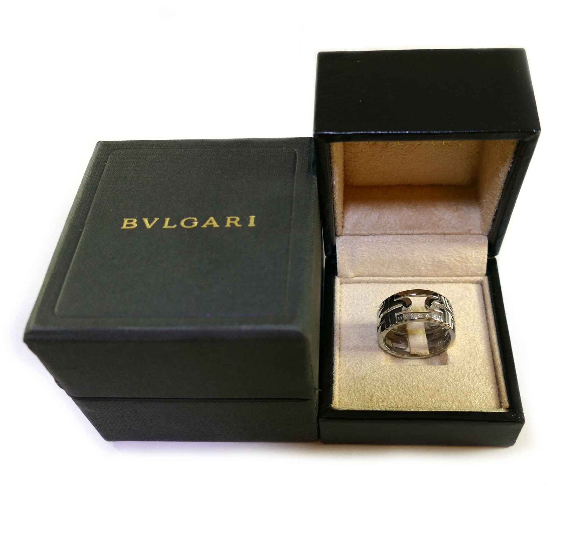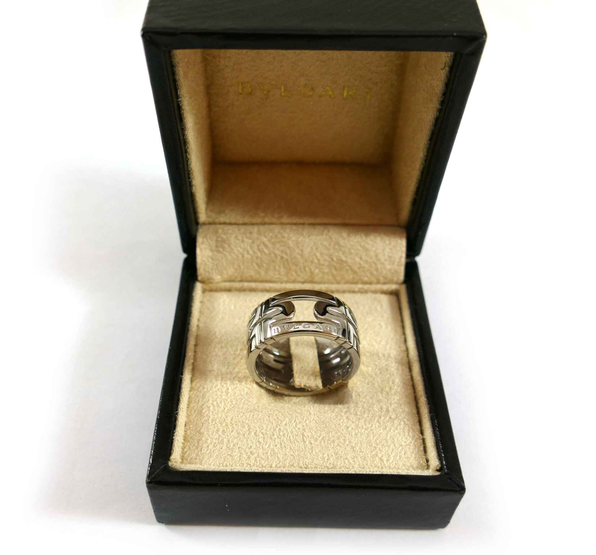 this men’s bvlgari ring is a classy 18k white gold ring, in their unique and original design.